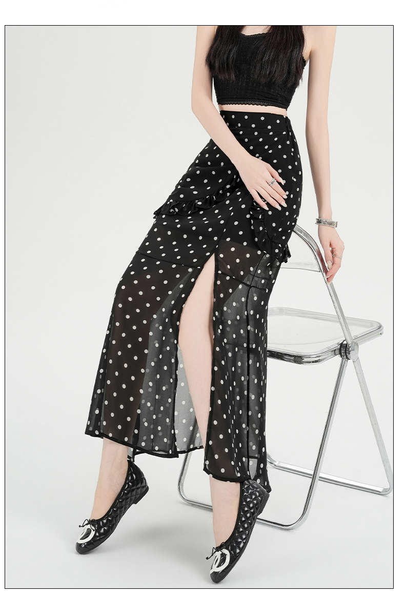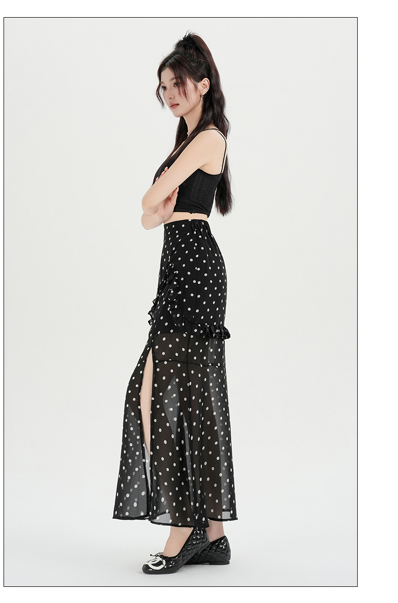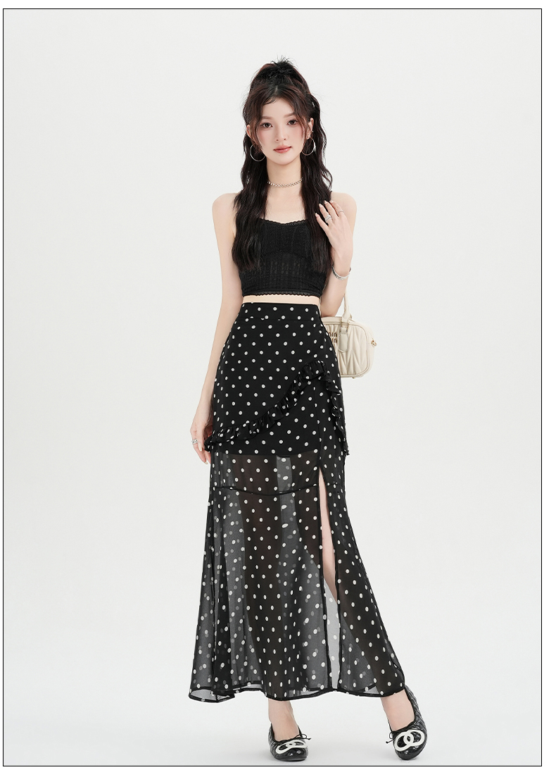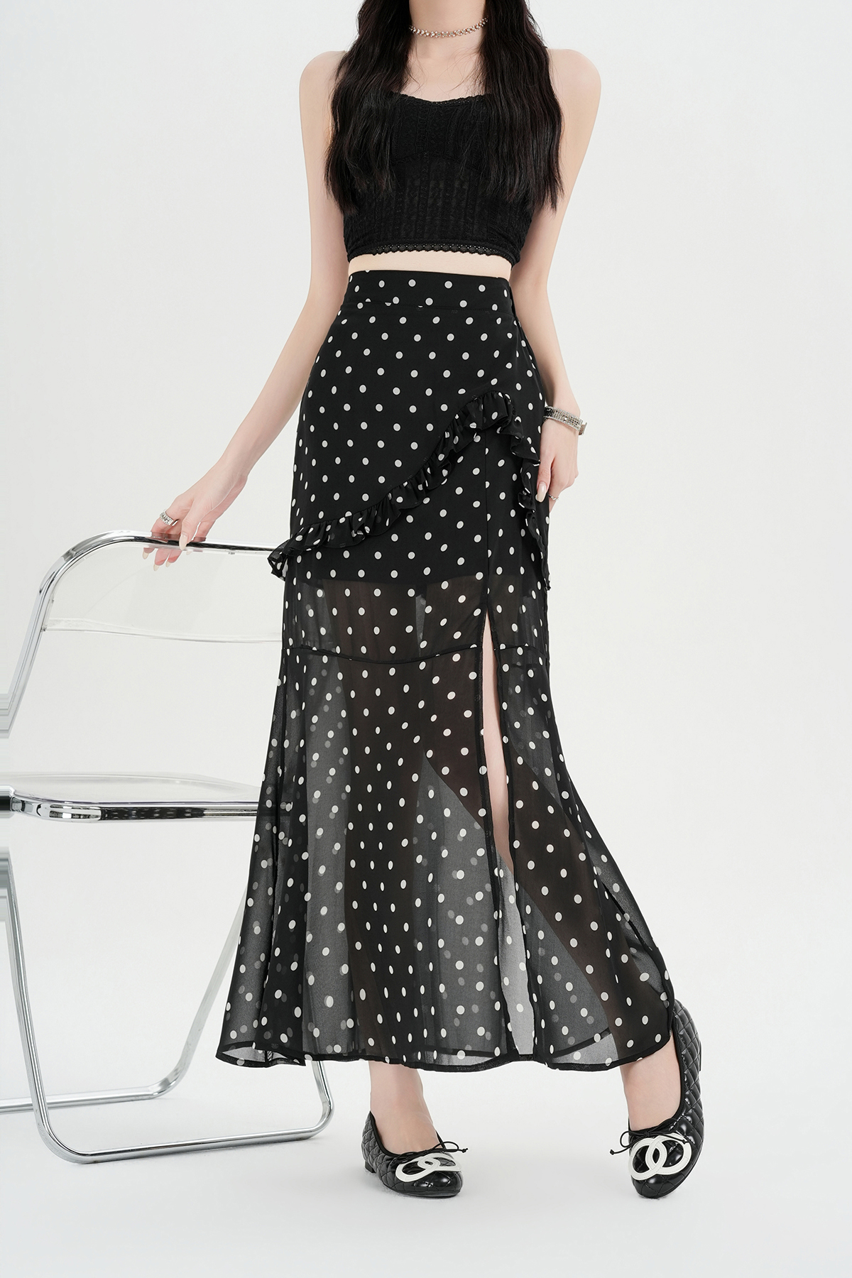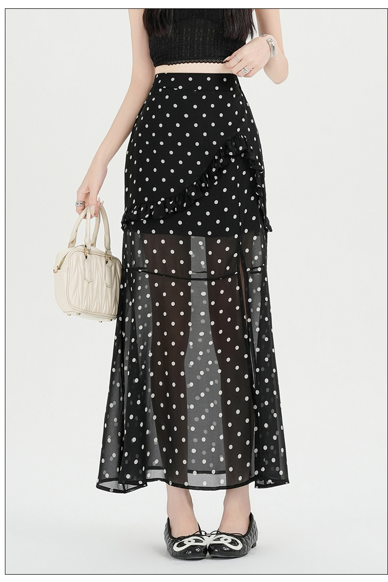 RY3264# 实拍 不规则波点半身裙女2026新款气质高腰显瘦长裙