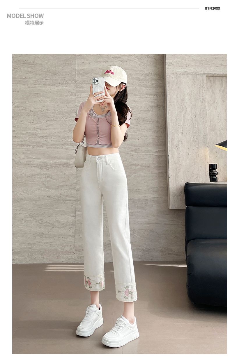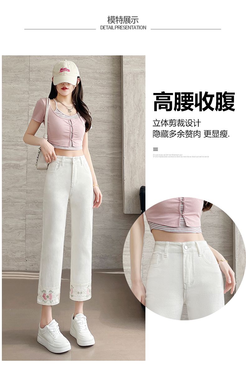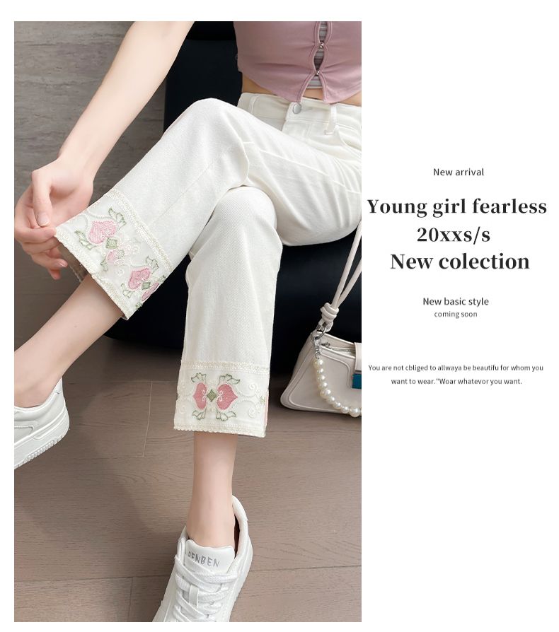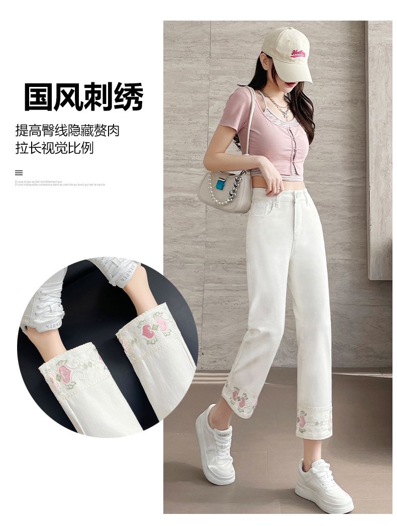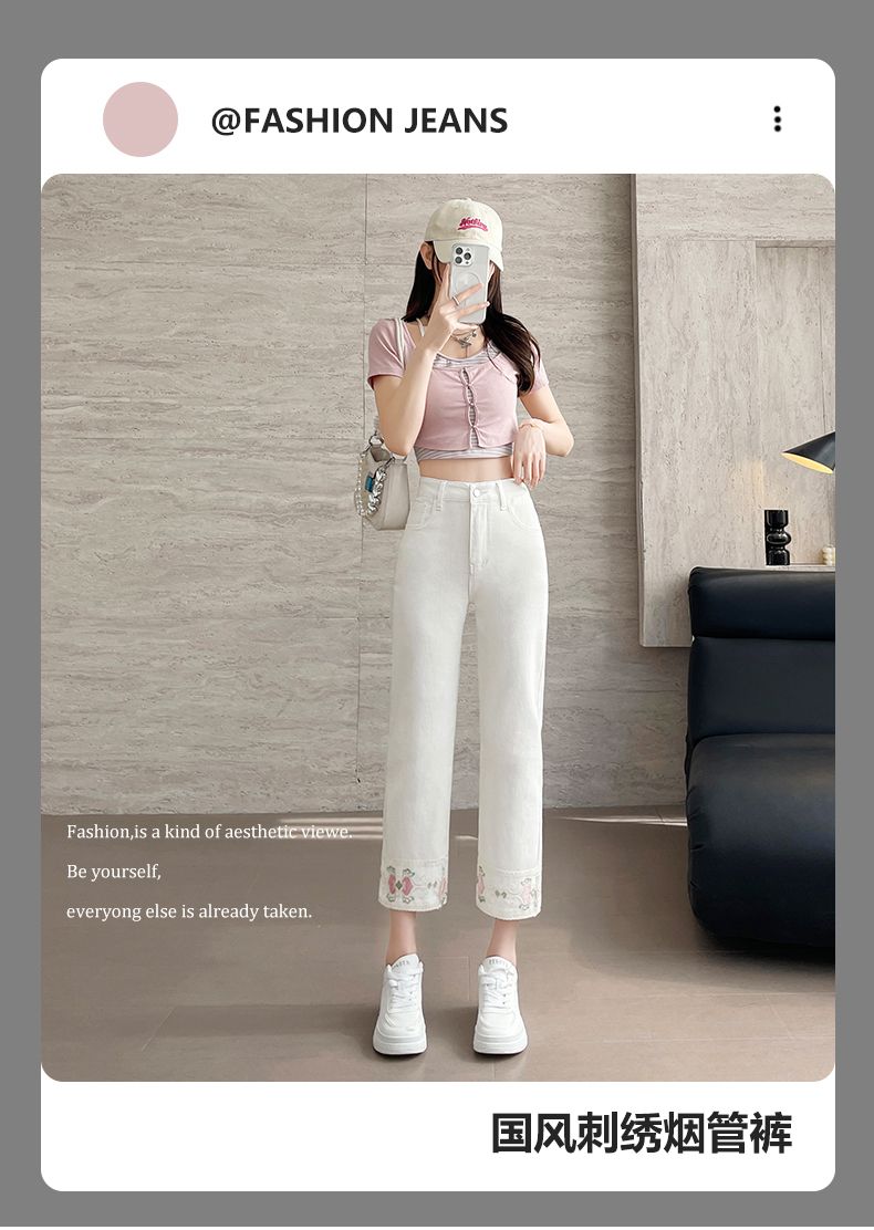 RY3276# 2026实拍夏季薄款高腰刺绣个性直筒裤女宽松百搭休闲八九分烟管裤