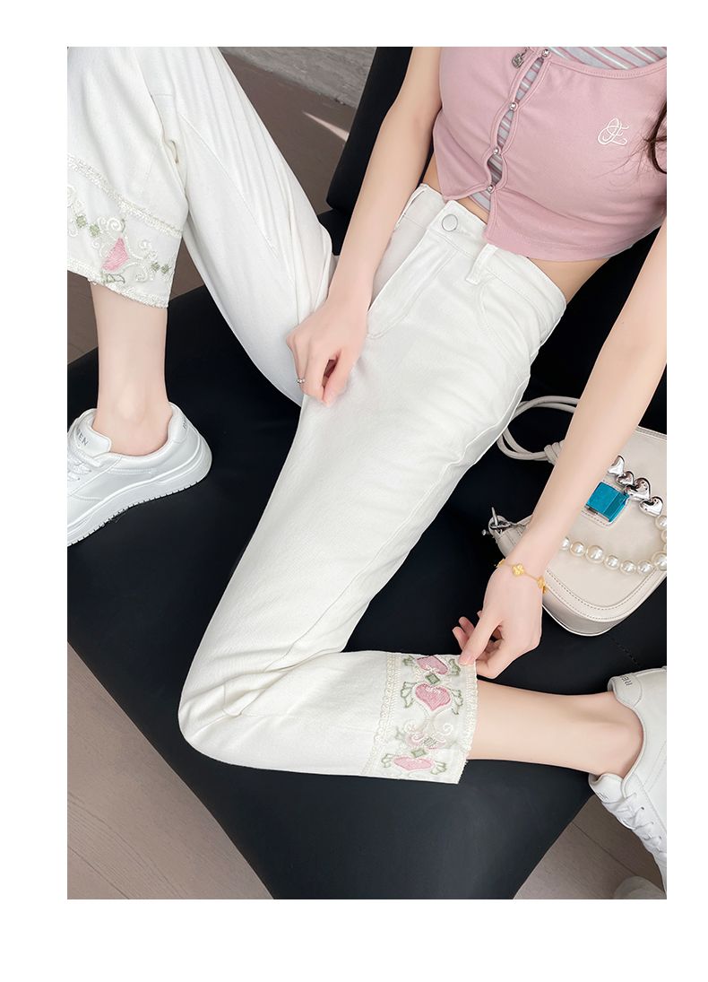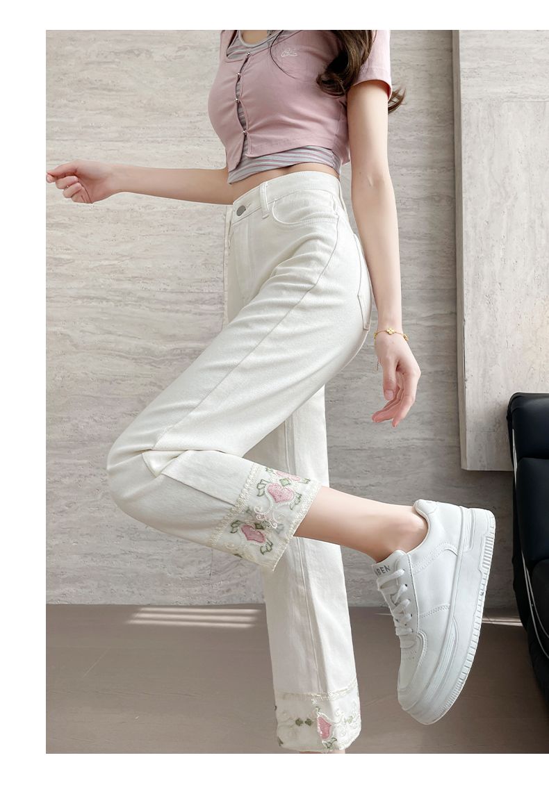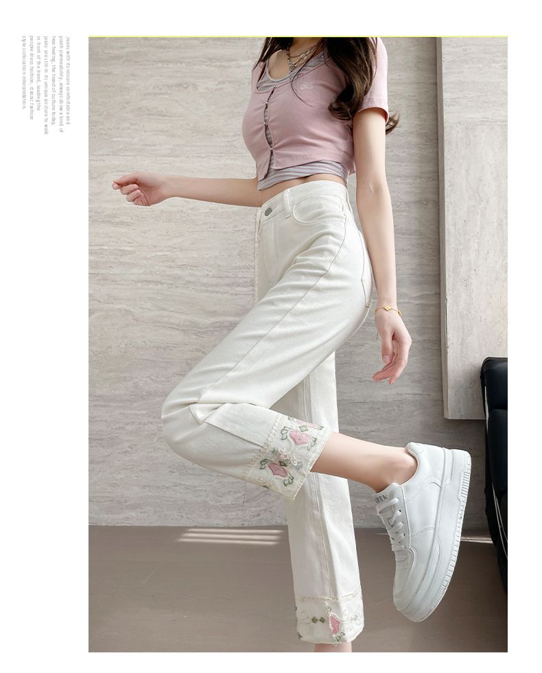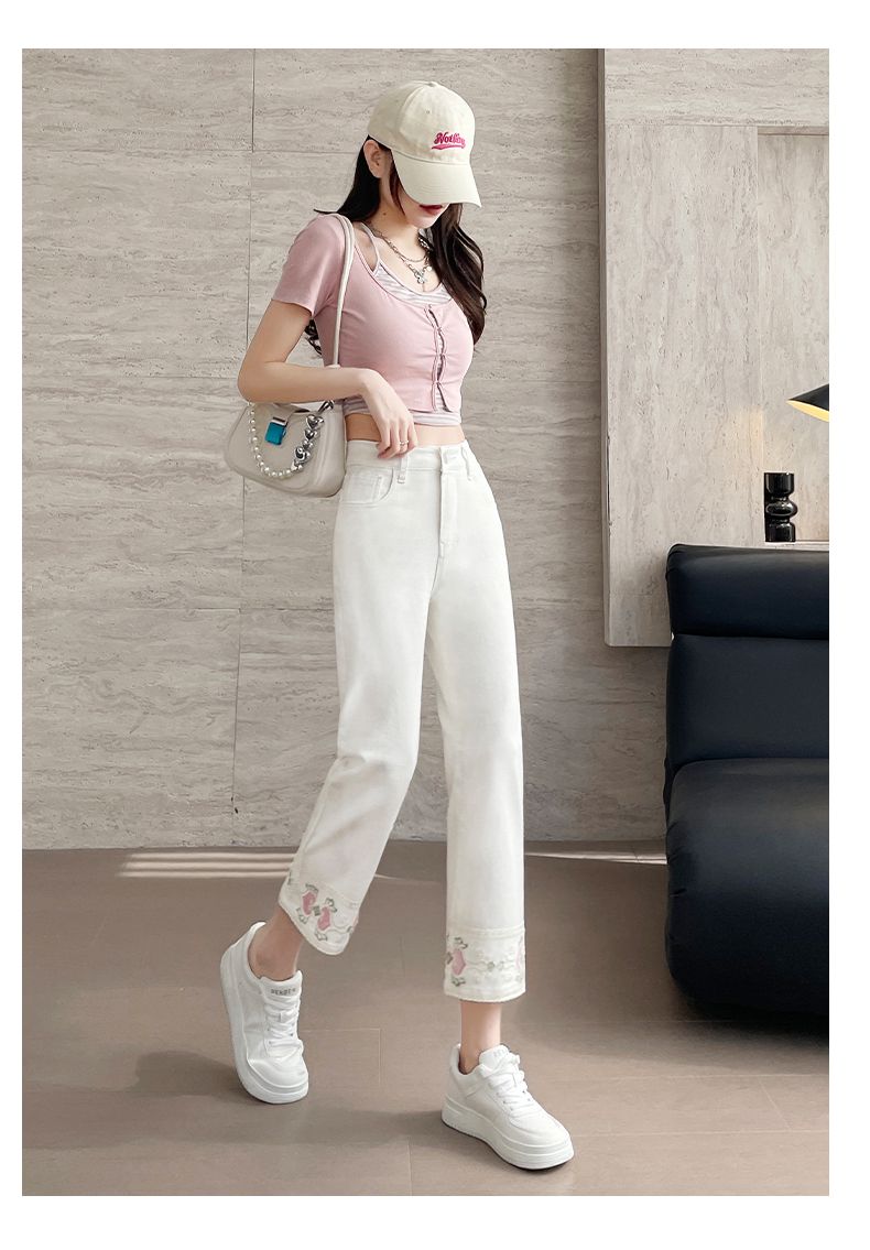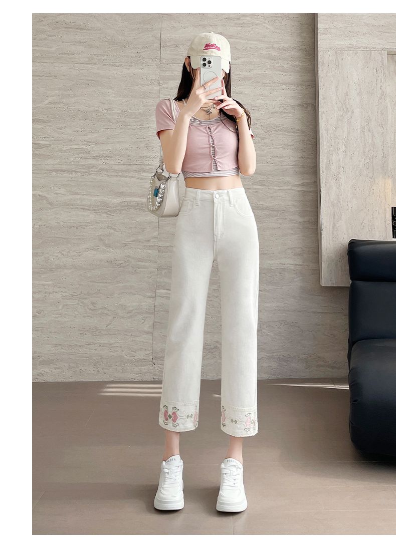 RY3276# 2026实拍夏季薄款高腰刺绣个性直筒裤女宽松百搭休闲八九分烟管裤