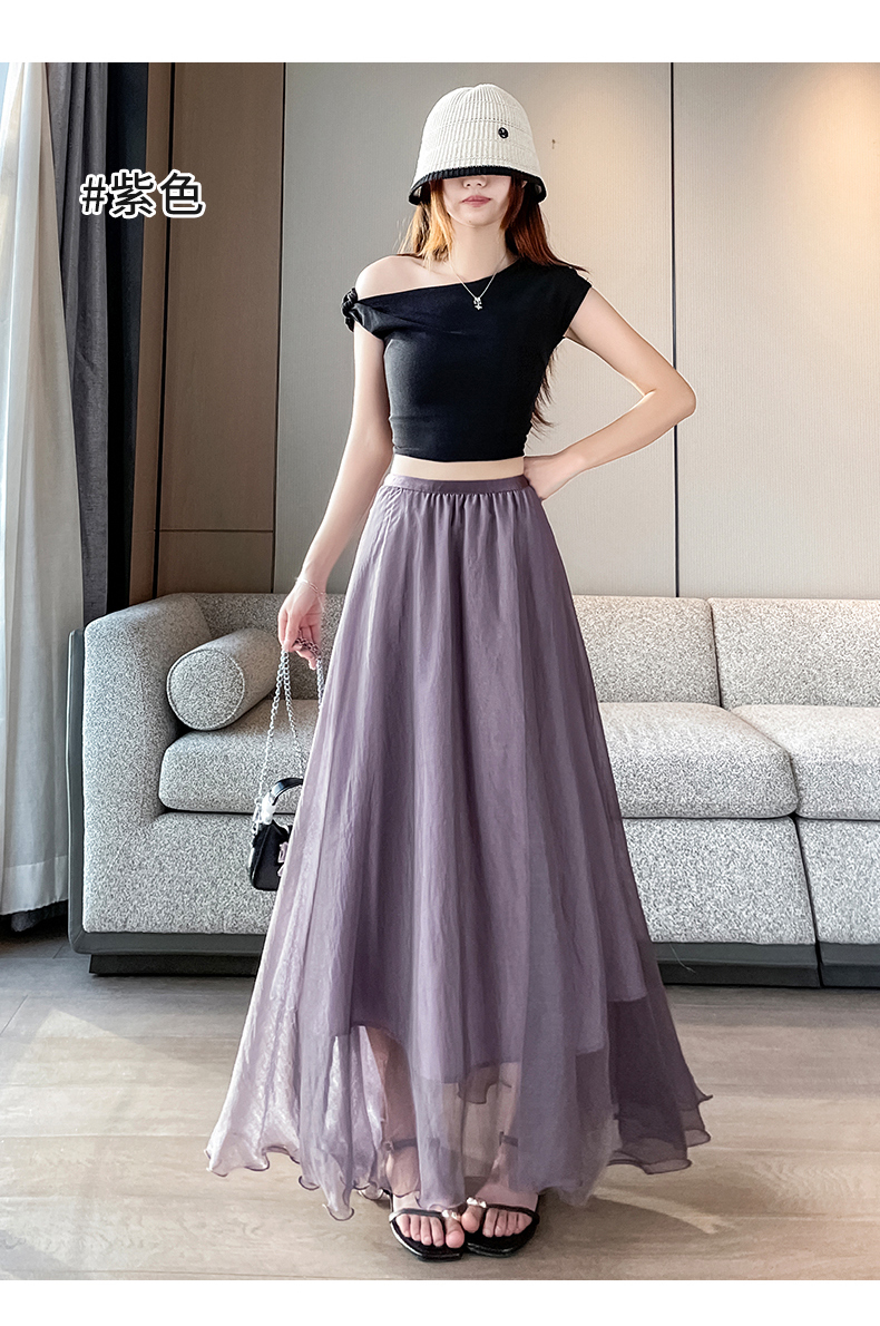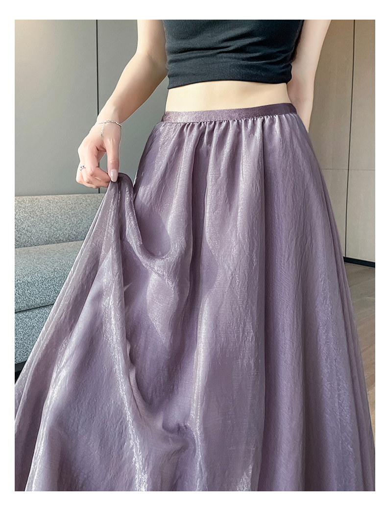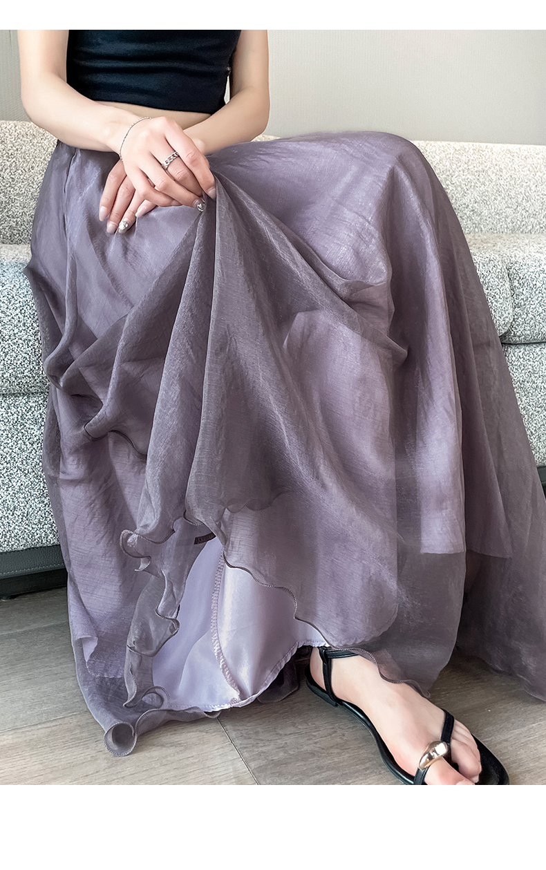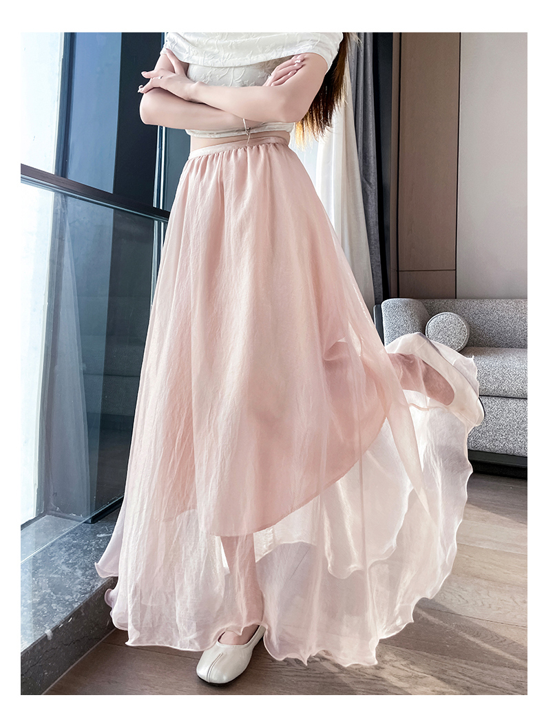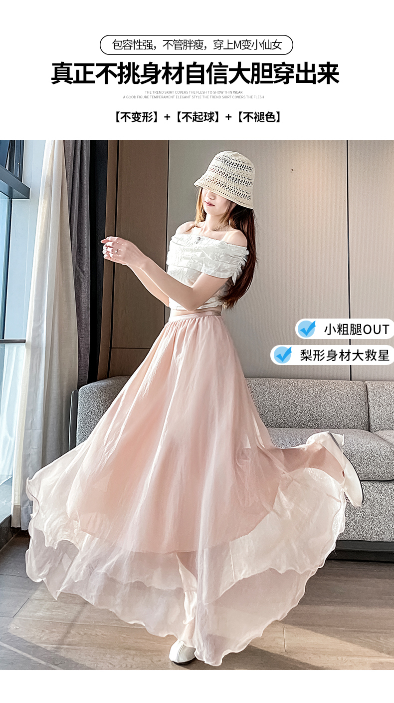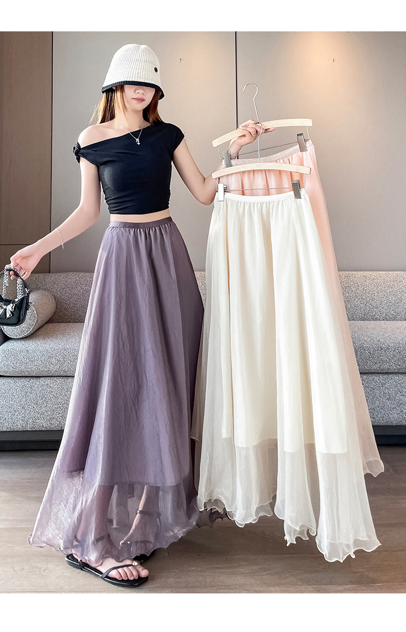 RY3398# 法式晕染流光纱长裙女夏季新款宽松显瘦半身裙垂坠感百褶a字