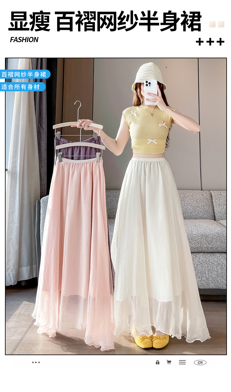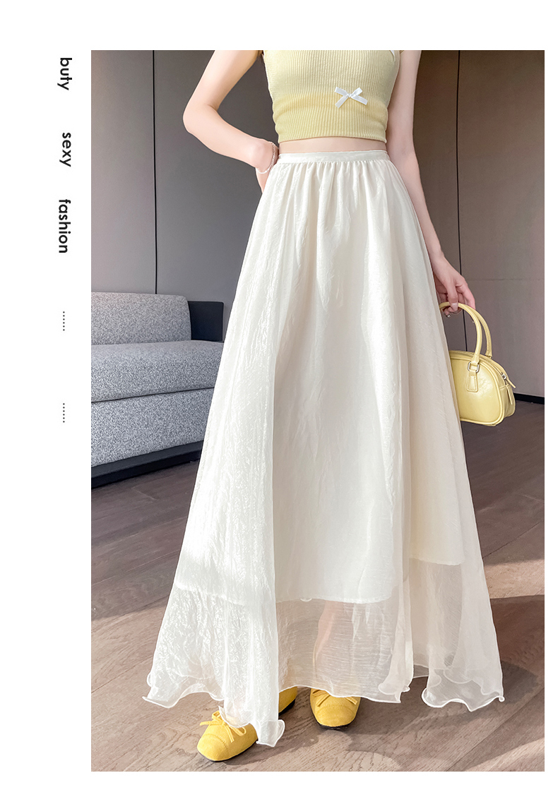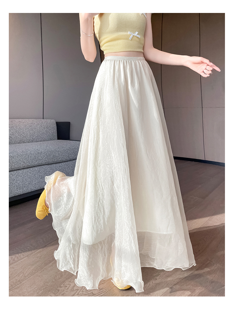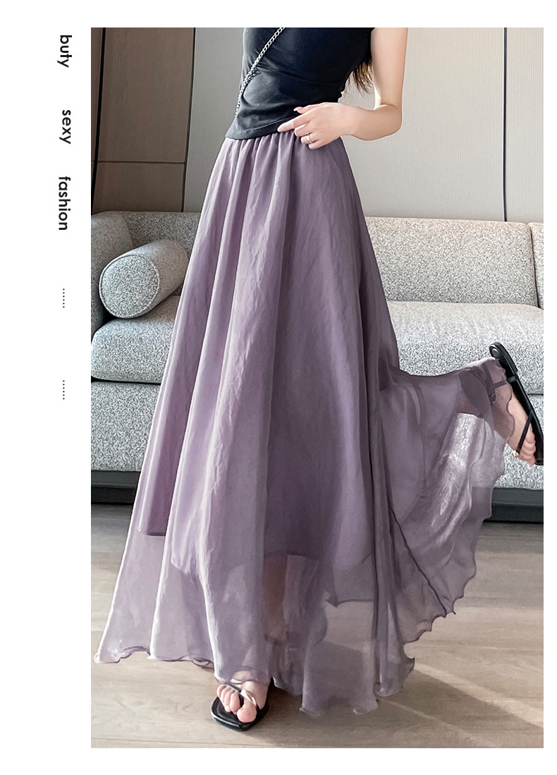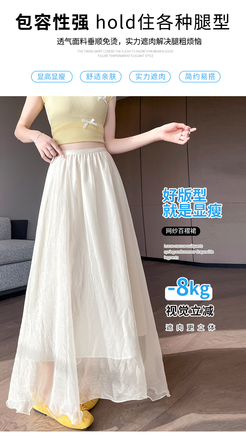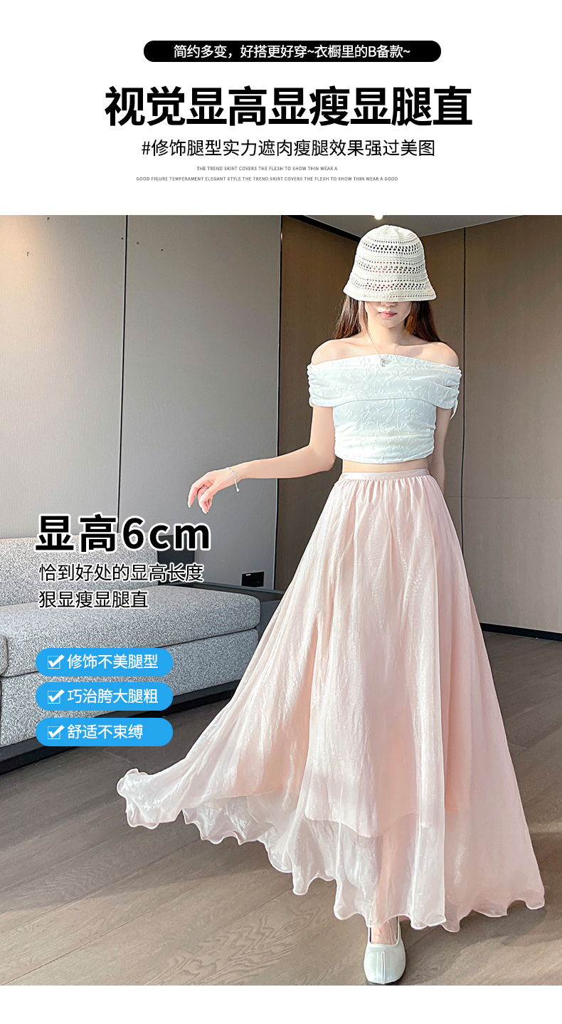 RY3398# 法式晕染流光纱长裙女夏季新款宽松显瘦半身裙垂坠感百褶a字