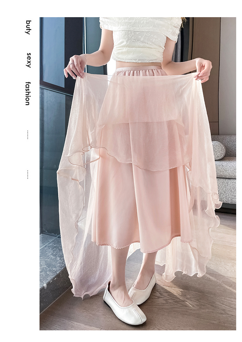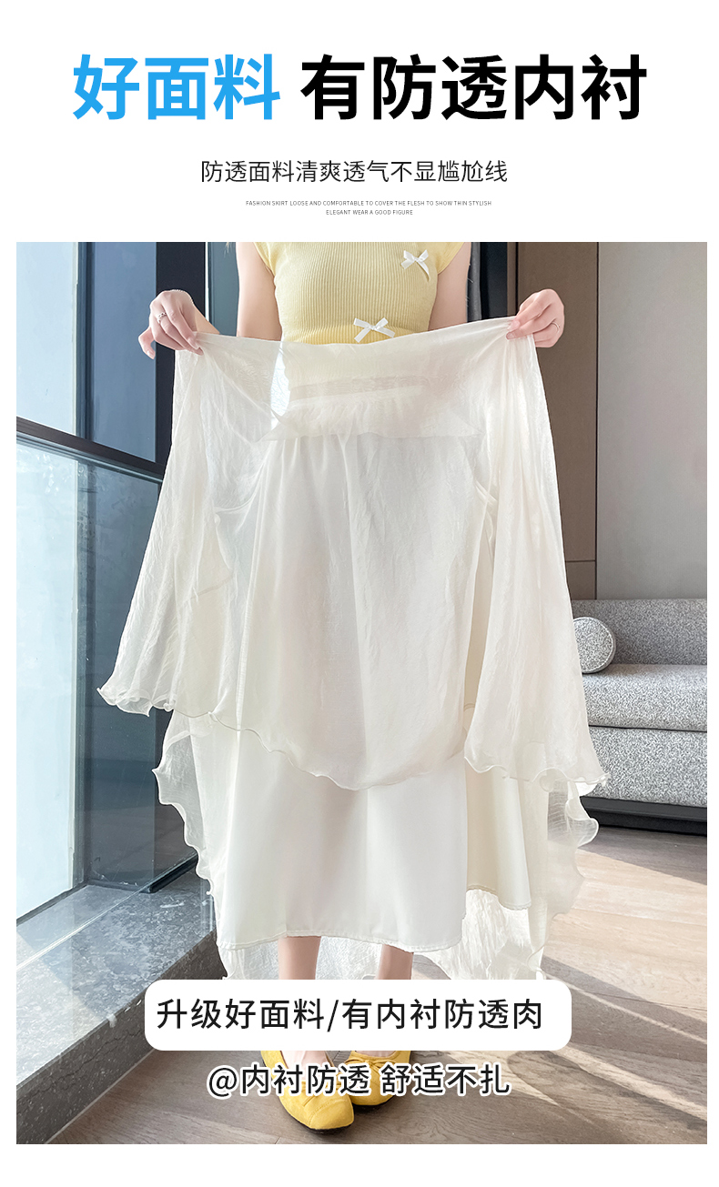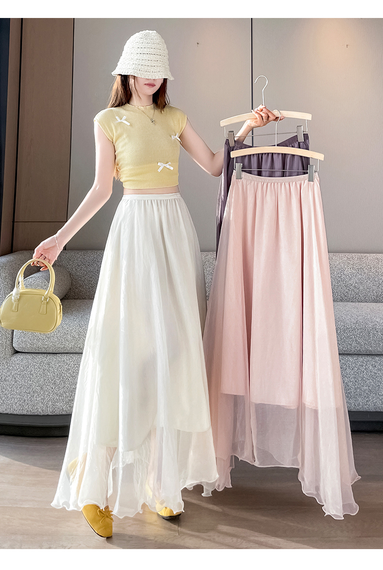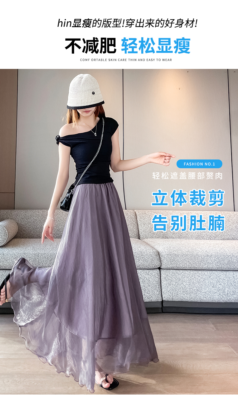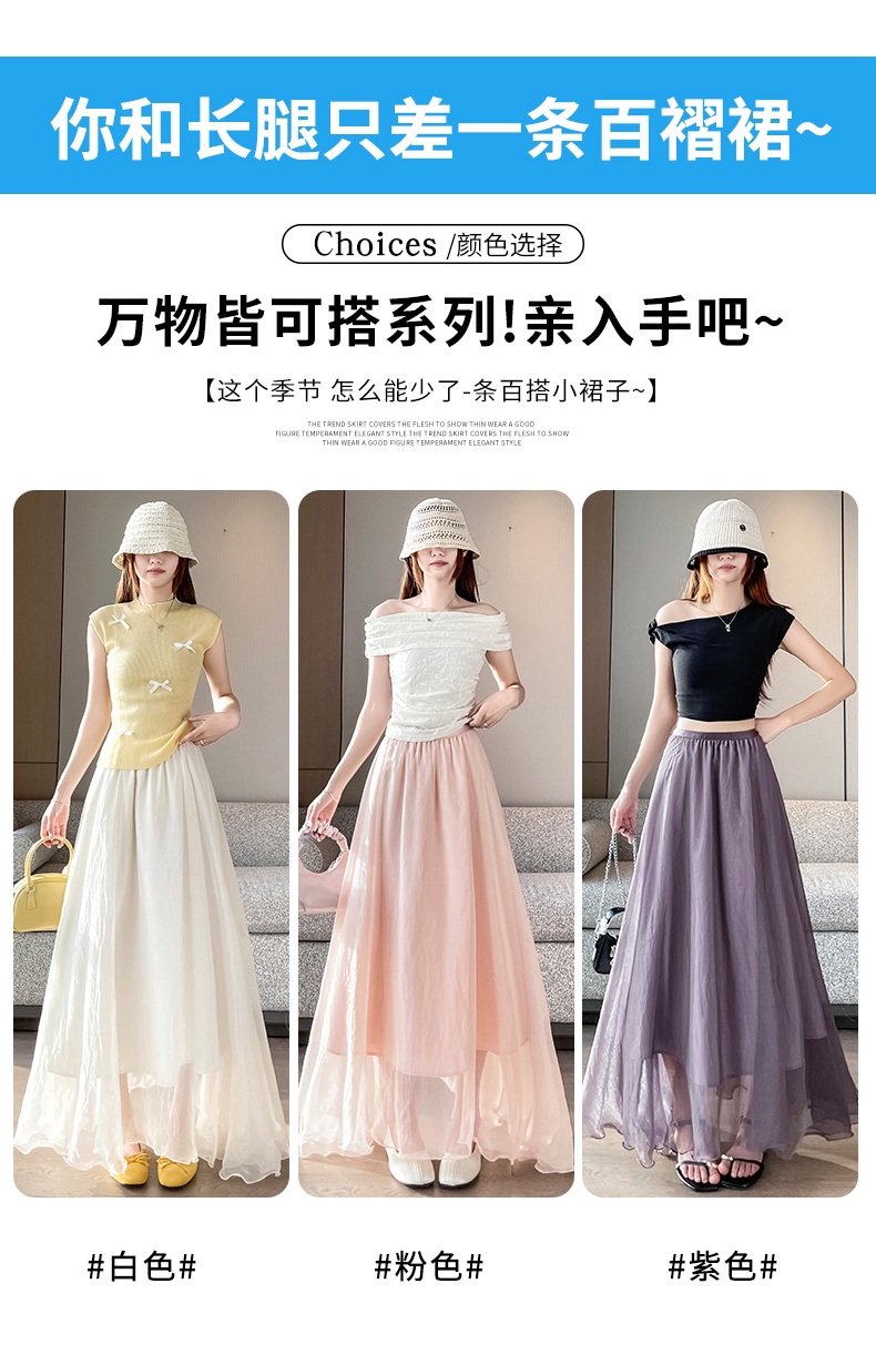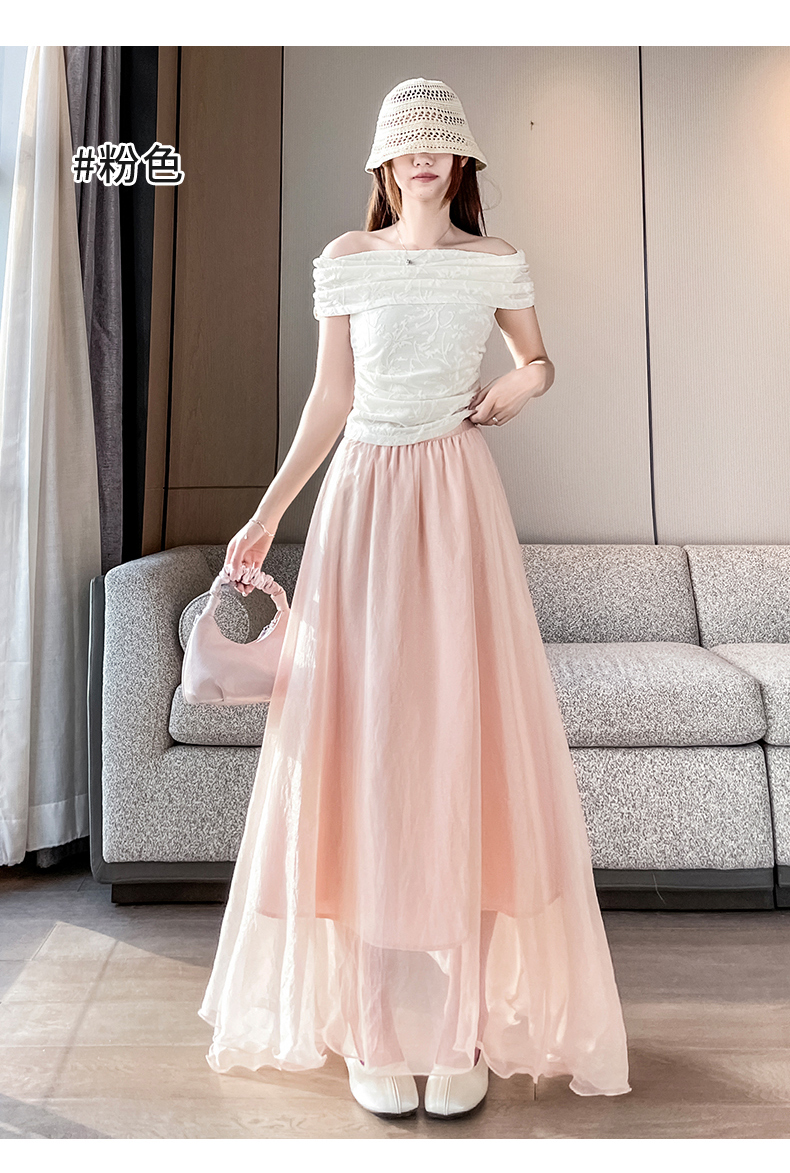 RY3398# 法式晕染流光纱长裙女夏季新款宽松显瘦半身裙垂坠感百褶a字