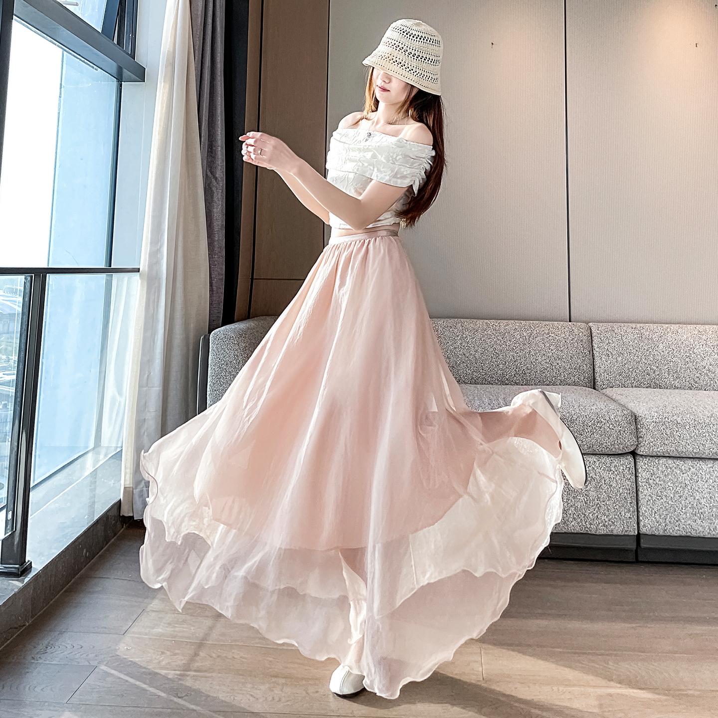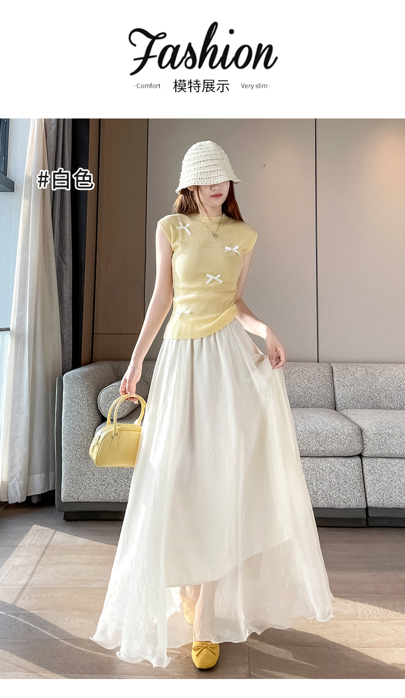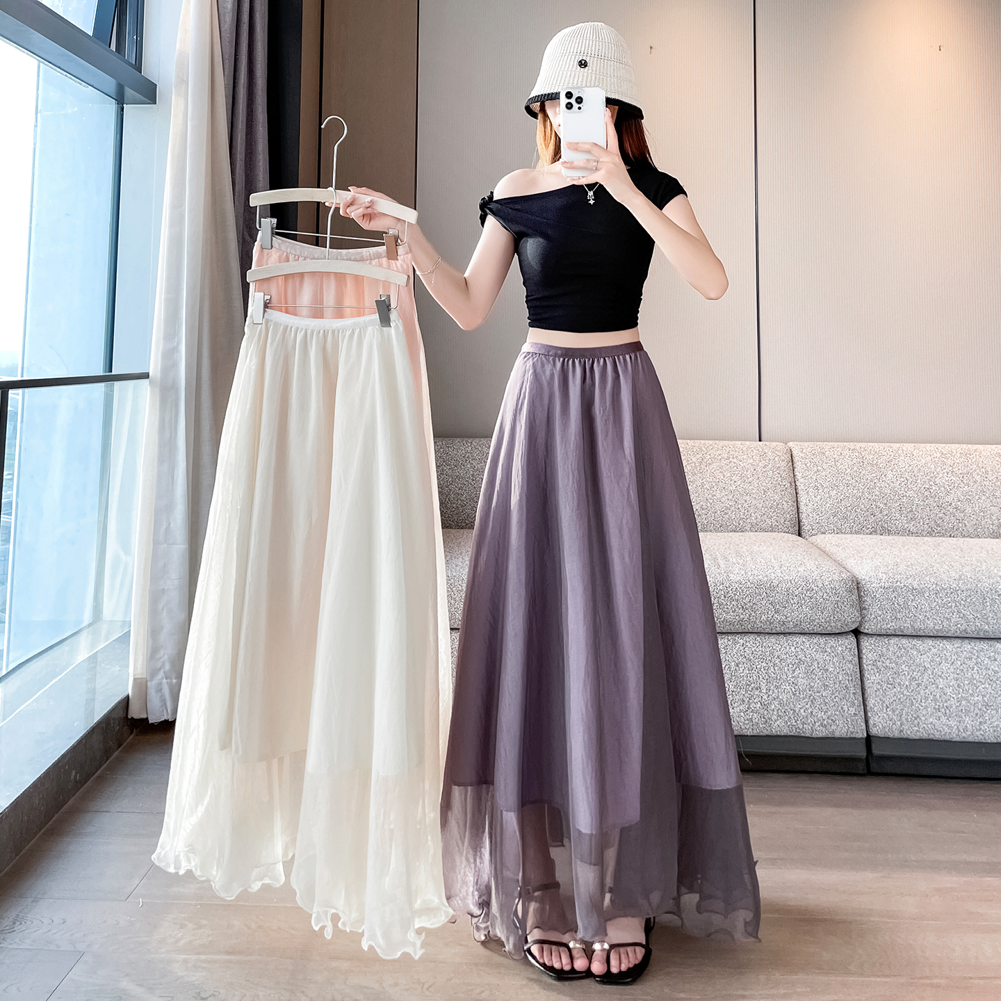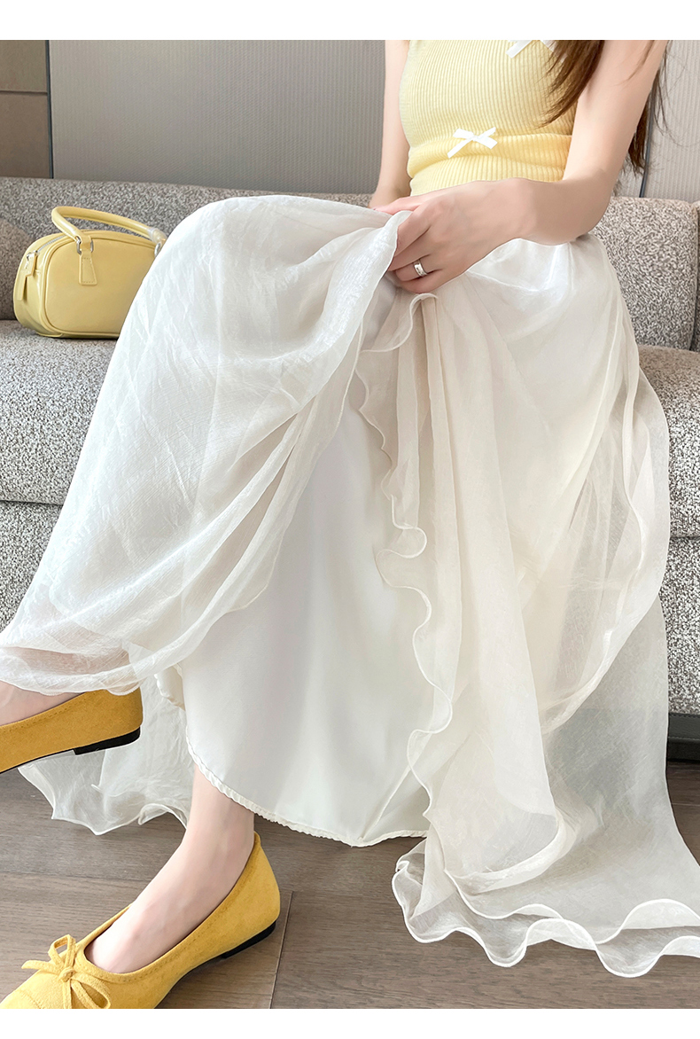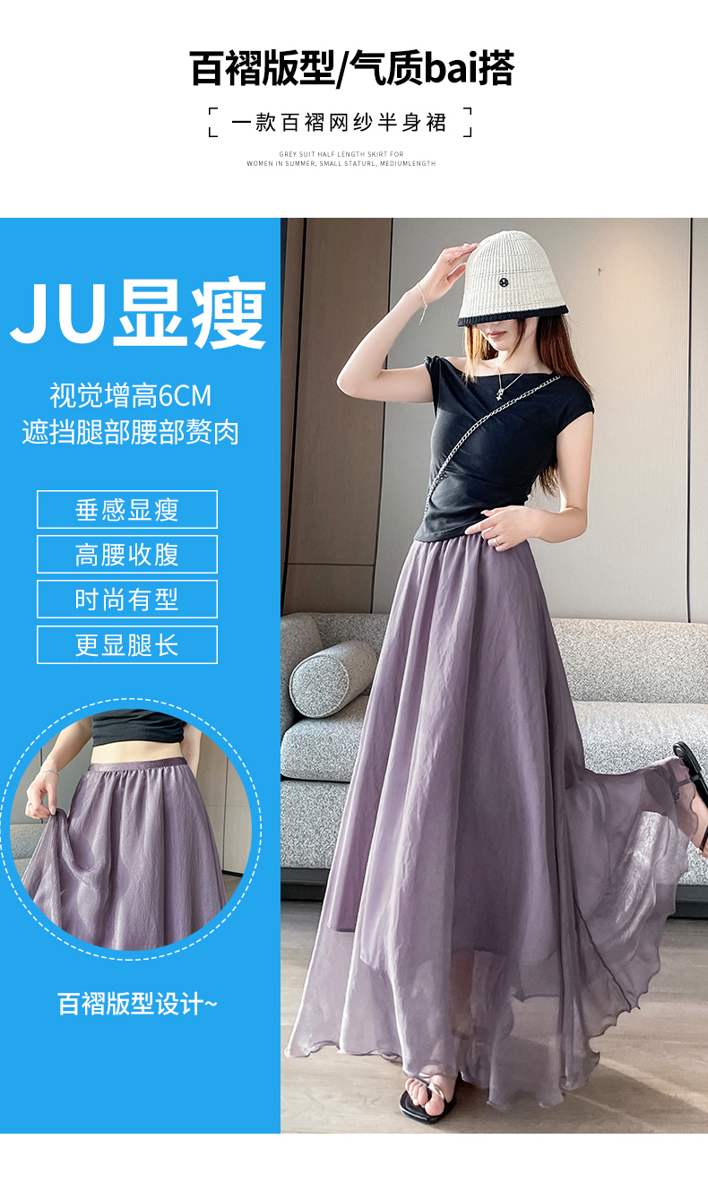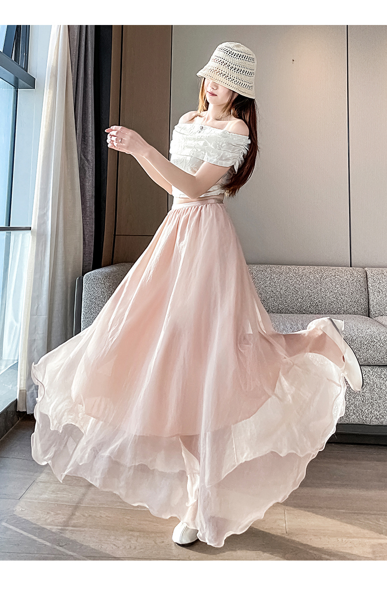 RY3398# 法式晕染流光纱长裙女夏季新款宽松显瘦半身裙垂坠感百褶a字