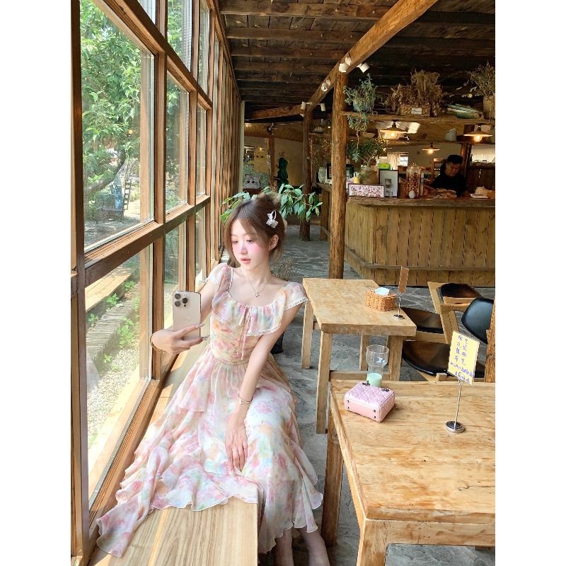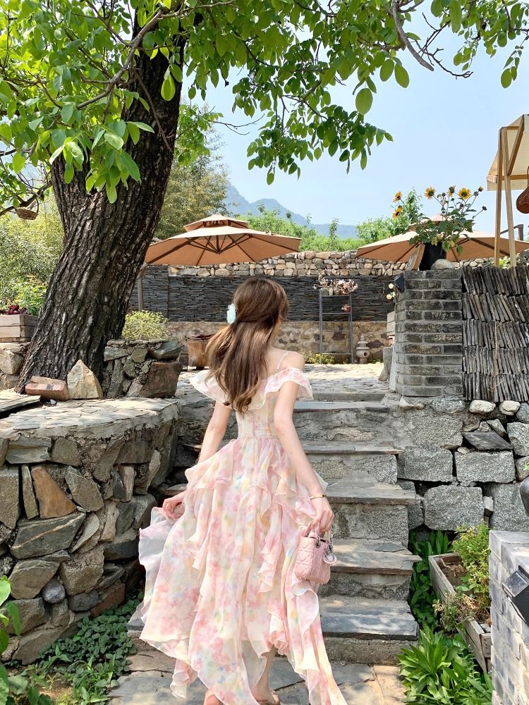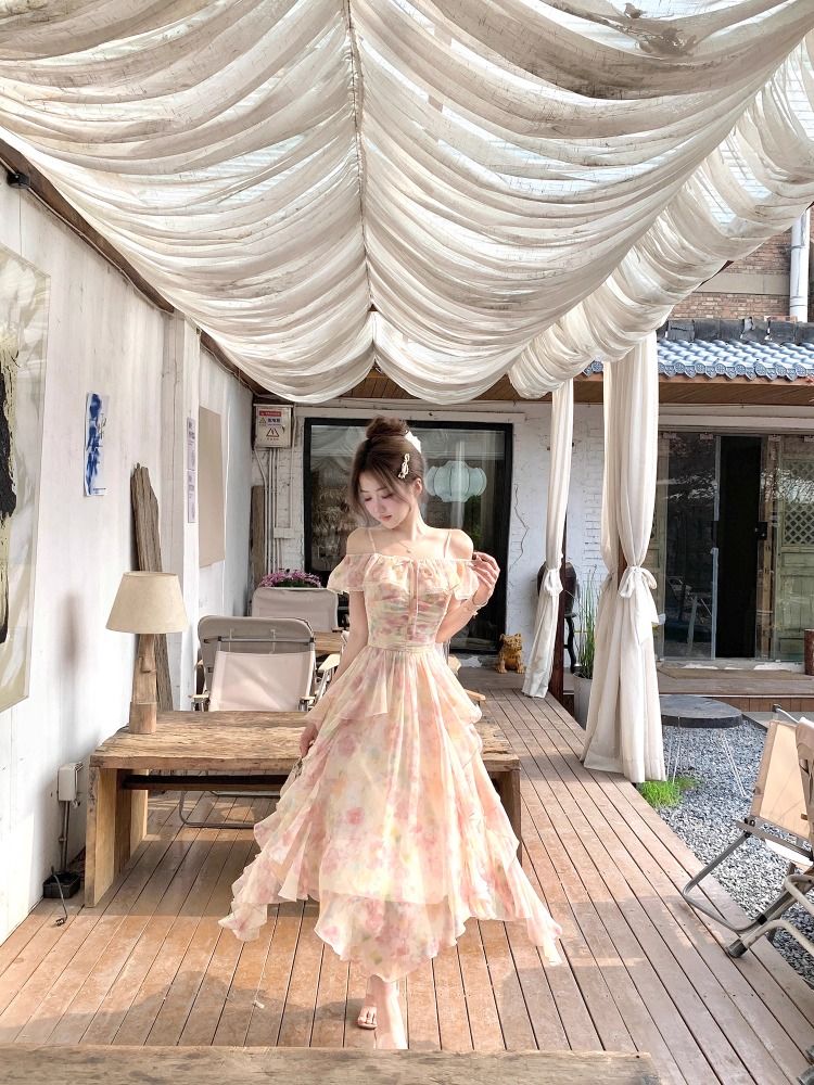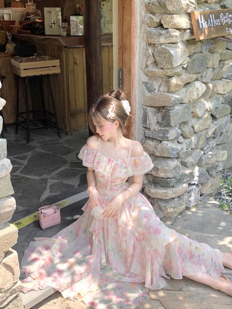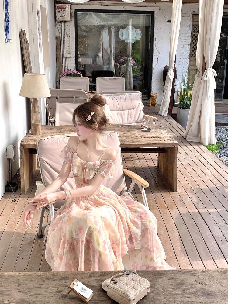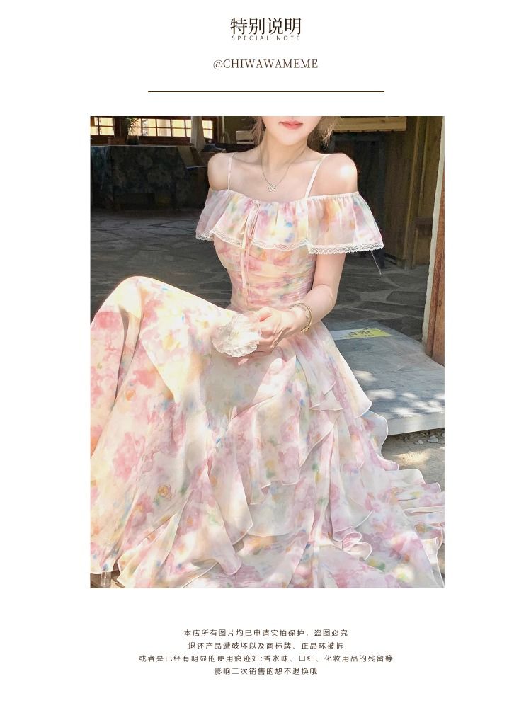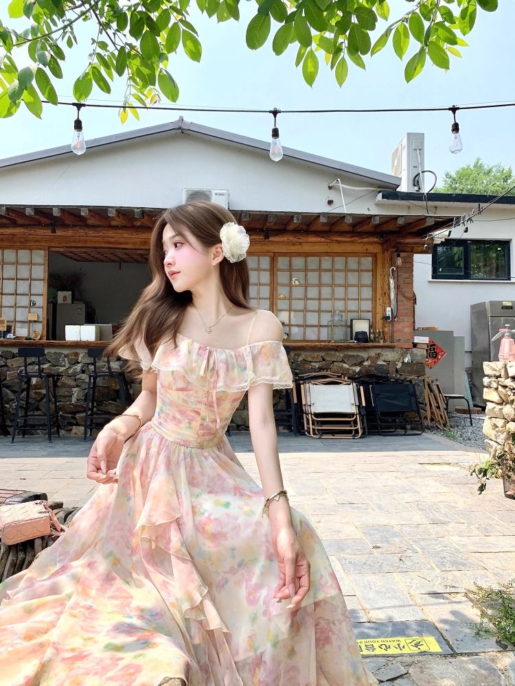 RY3507# Q女家 布拉格之夏/绝美飘逸海边度假碎花大摆连衣裙夏一字肩长裙