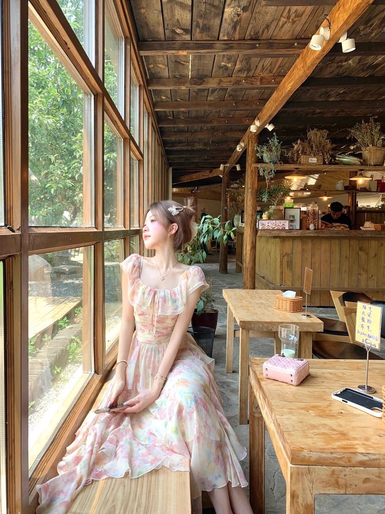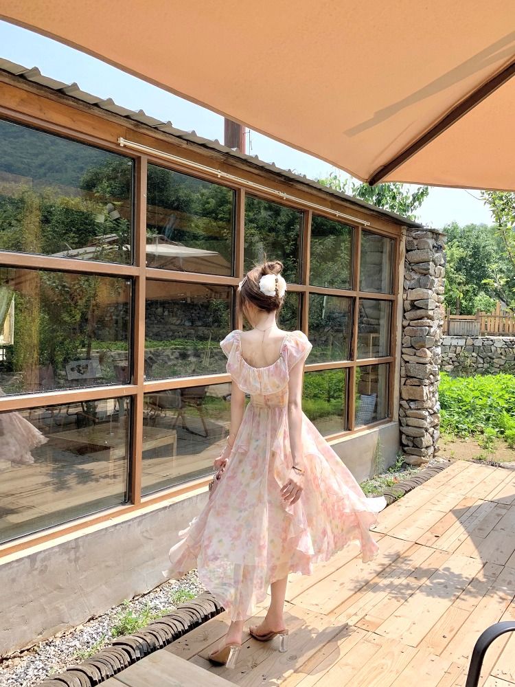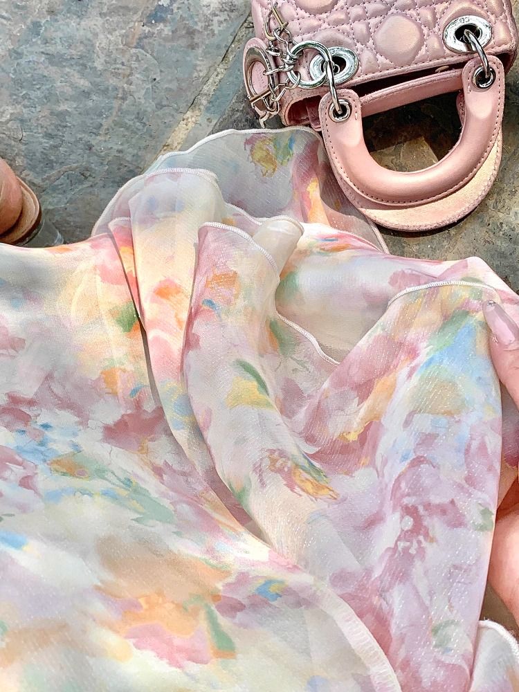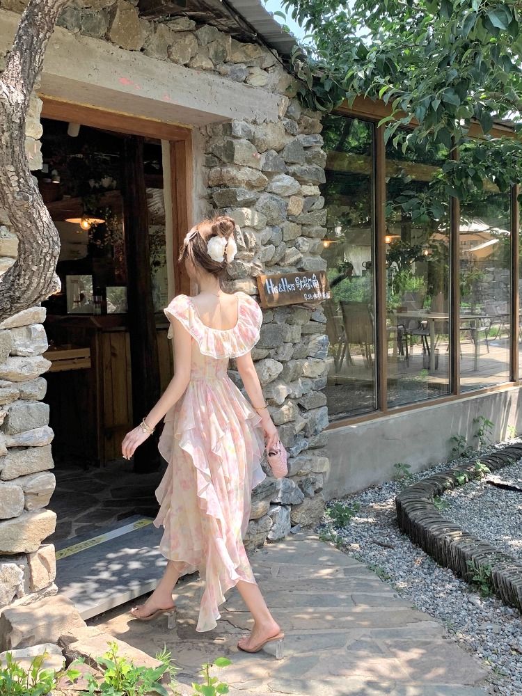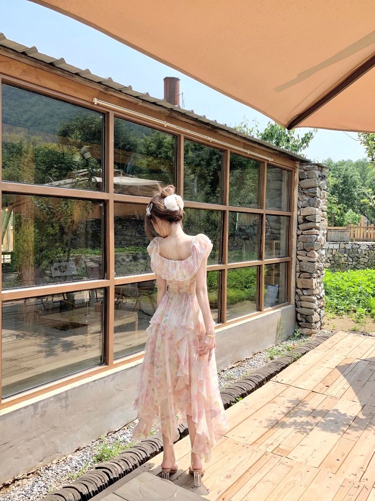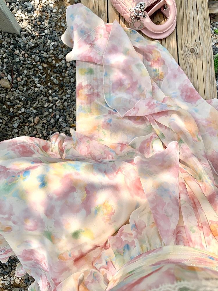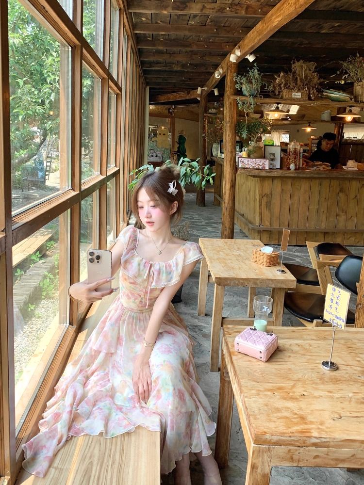 RY3507# Q女家 布拉格之夏/绝美飘逸海边度假碎花大摆连衣裙夏一字肩长裙