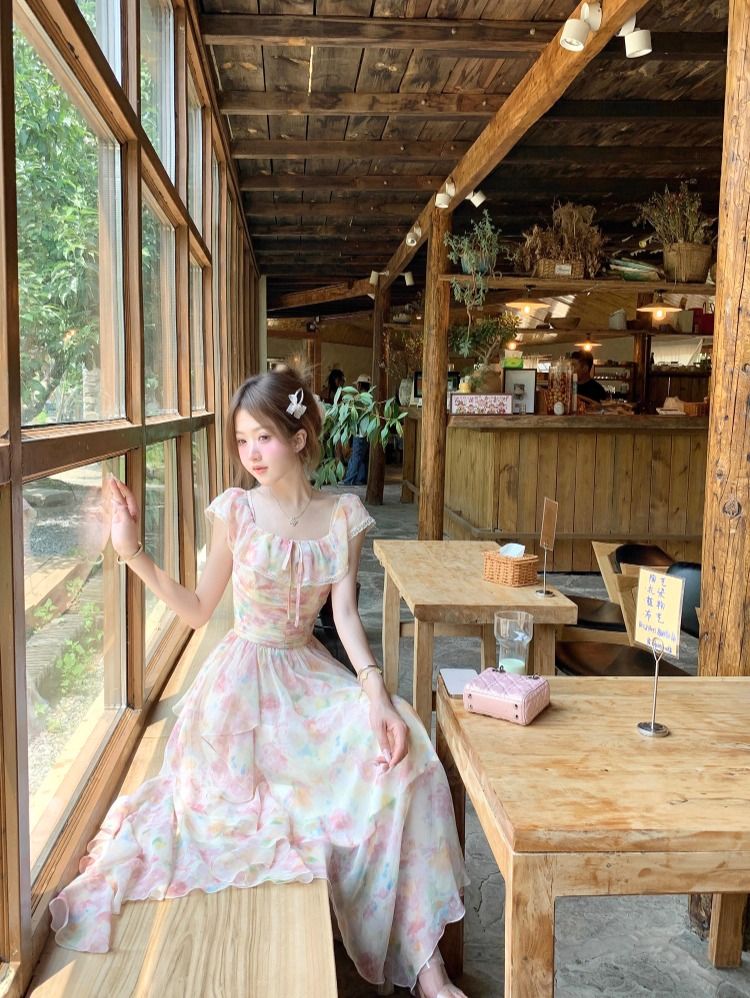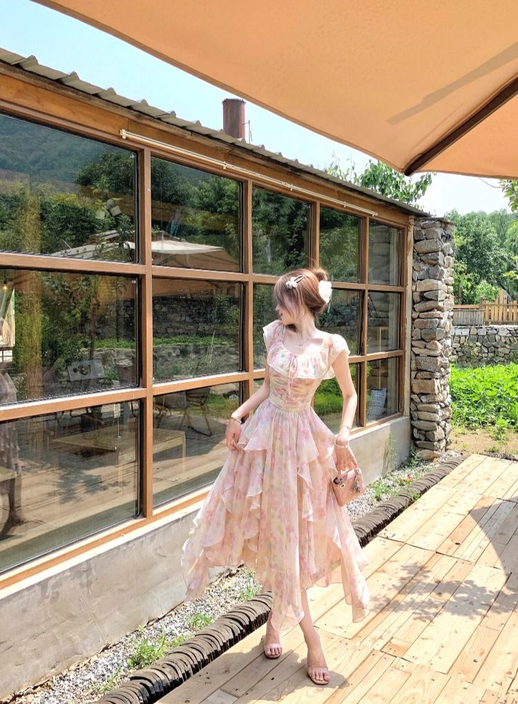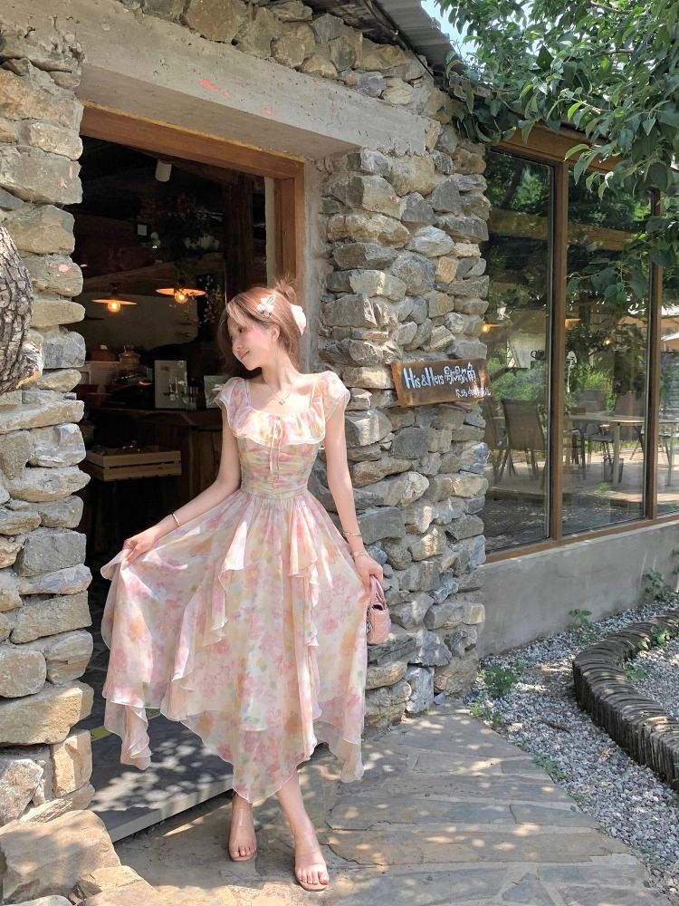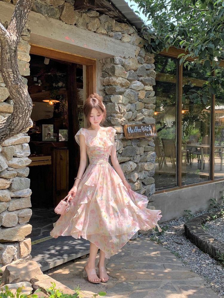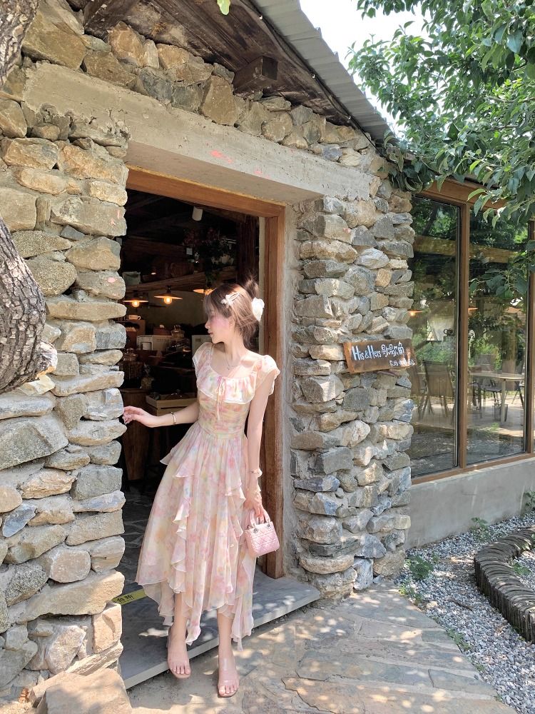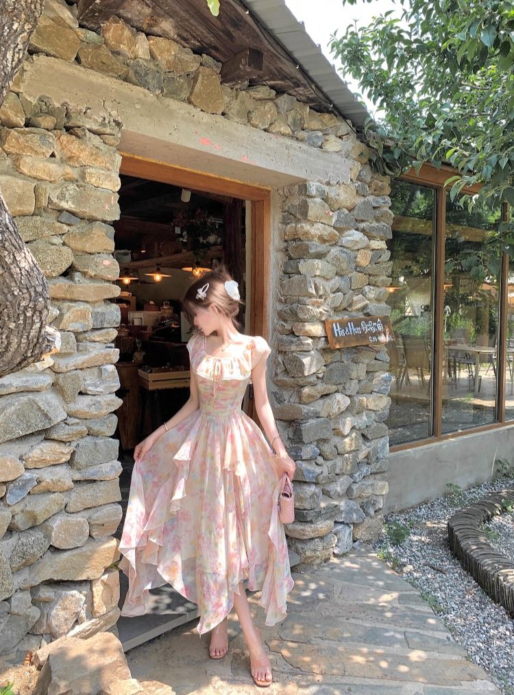 RY3507# Q女家 布拉格之夏/绝美飘逸海边度假碎花大摆连衣裙夏一字肩长裙