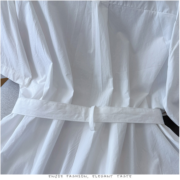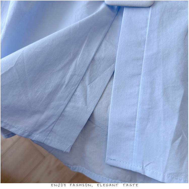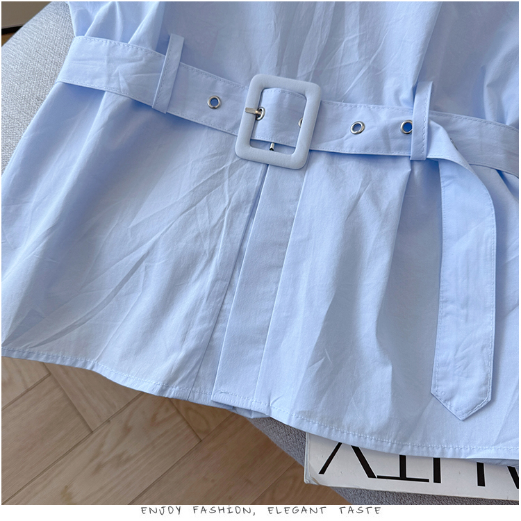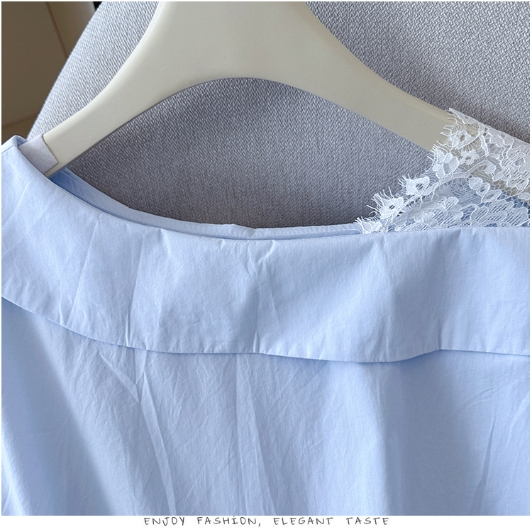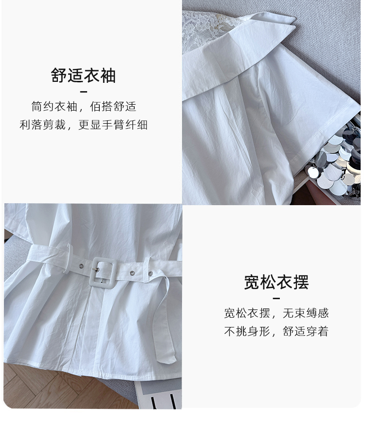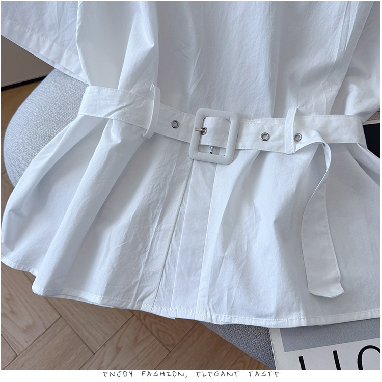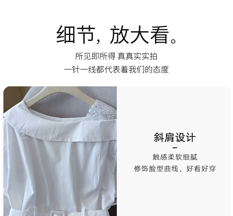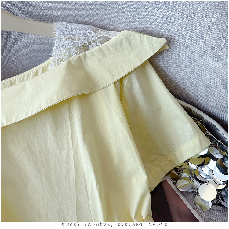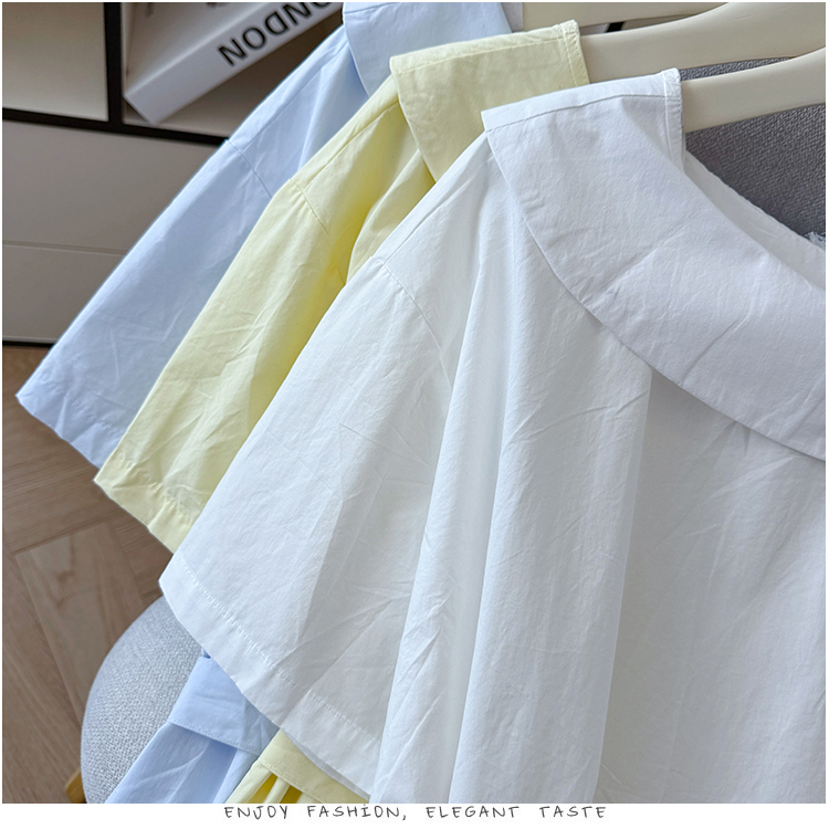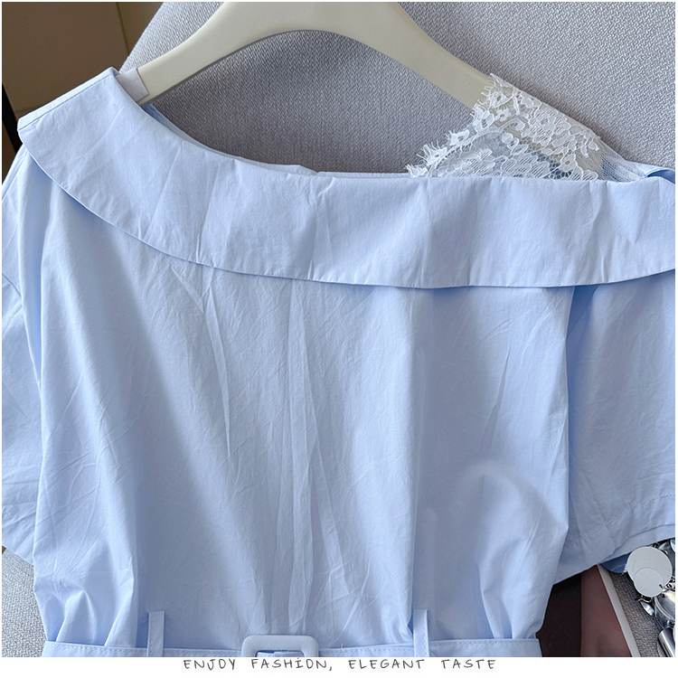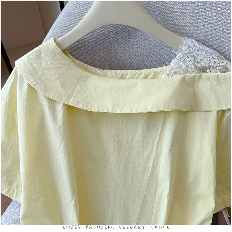 RY3522# 夏季新款设计感白色露肩短袖衬衫女洋气遮肉宽松斜肩上衣收腰显瘦