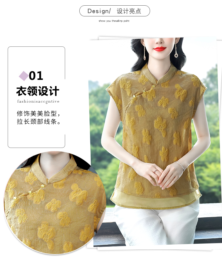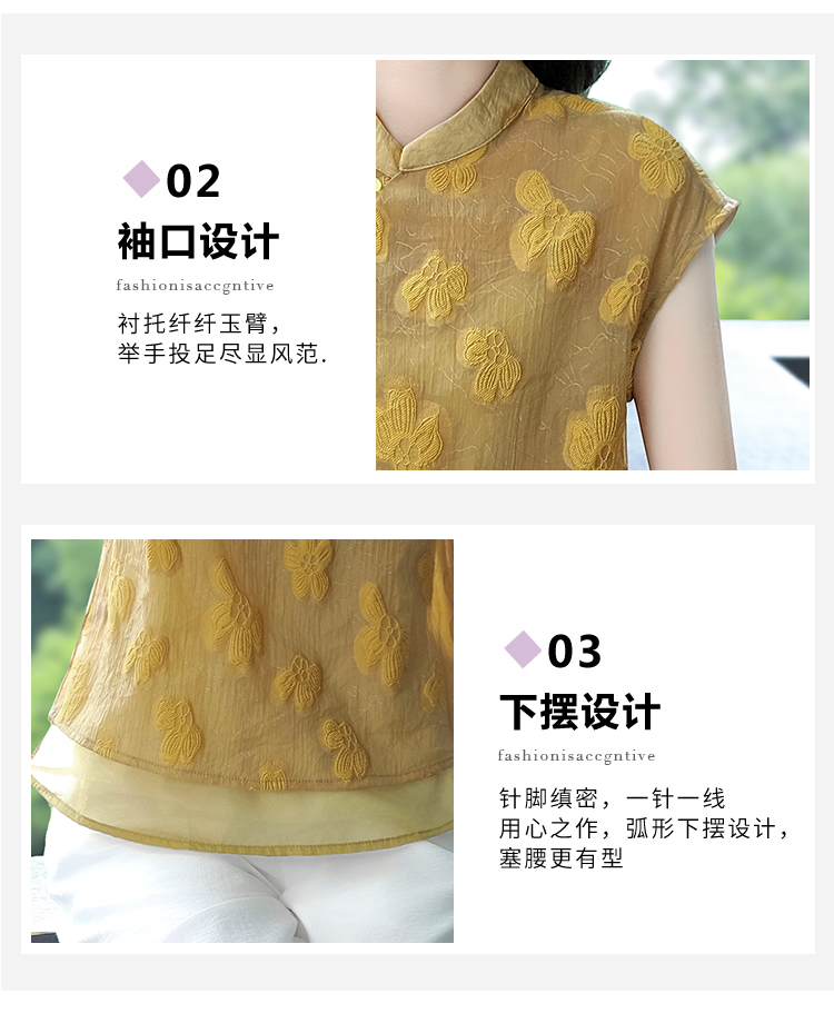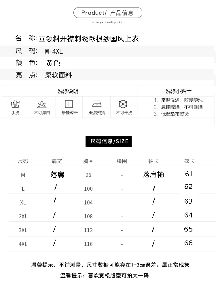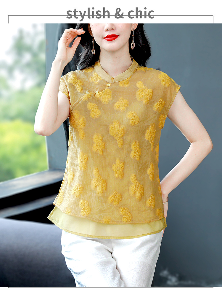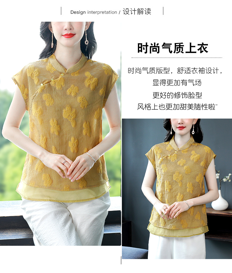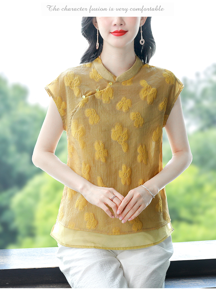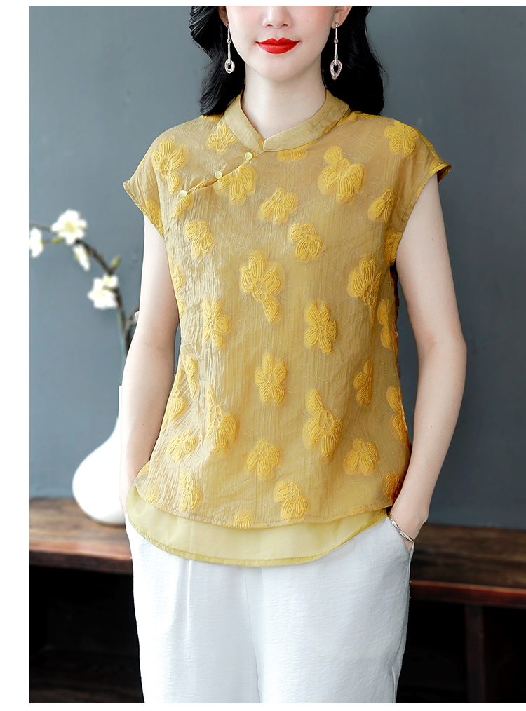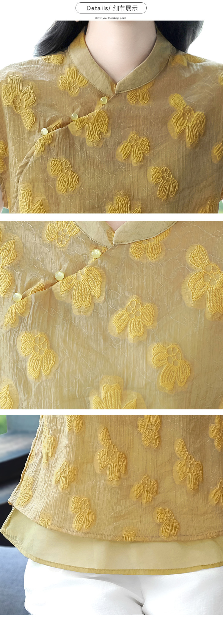 RY3528# 春夏新款国风立领盘扣刺绣落肩上衣百搭宽松气质显瘦小衫大码女
