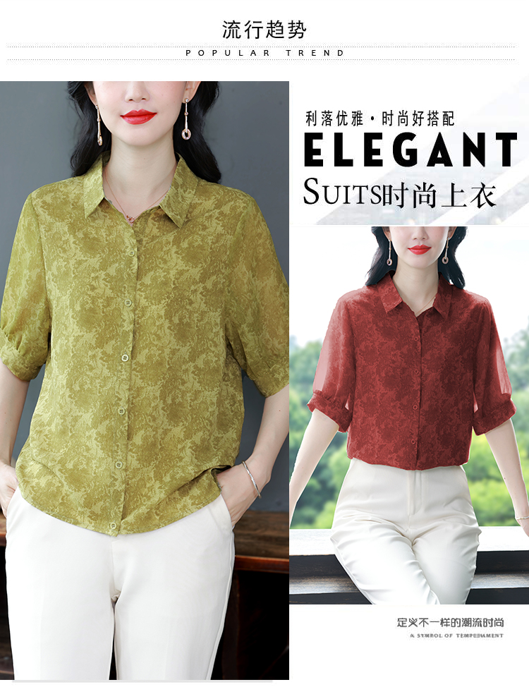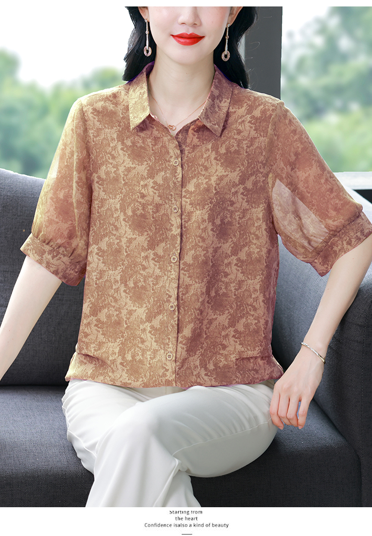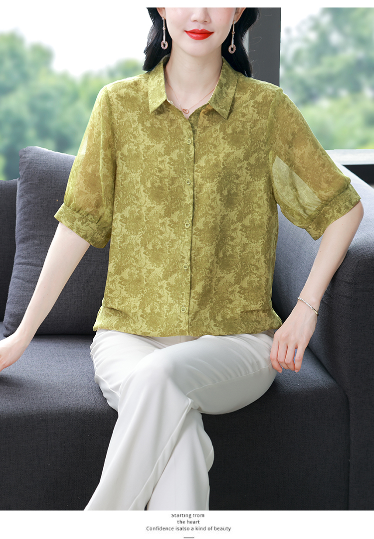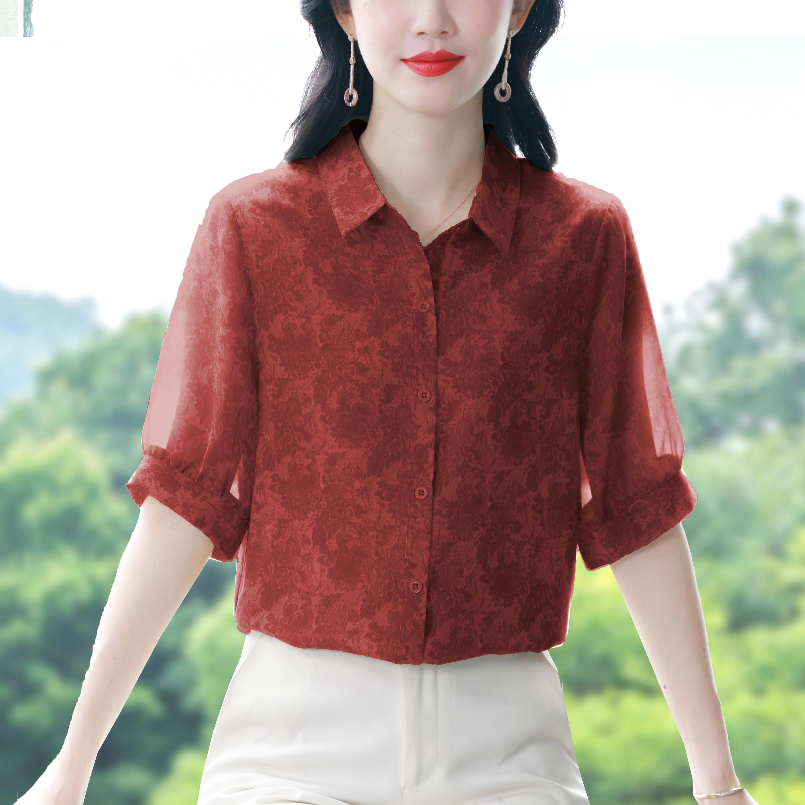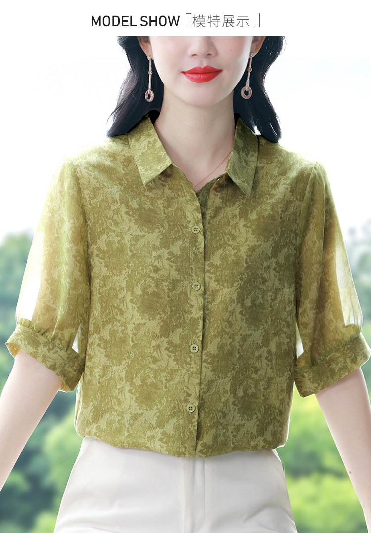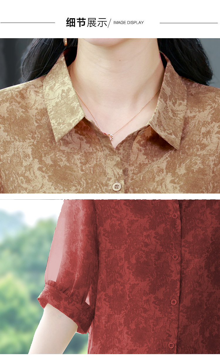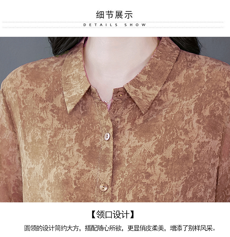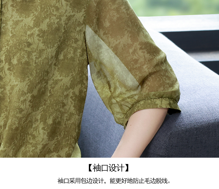 RY3530# 春夏新款七分袖真丝桑蚕丝雪纺翻领开襟衬衫防晒气质显瘦遮肚上衣