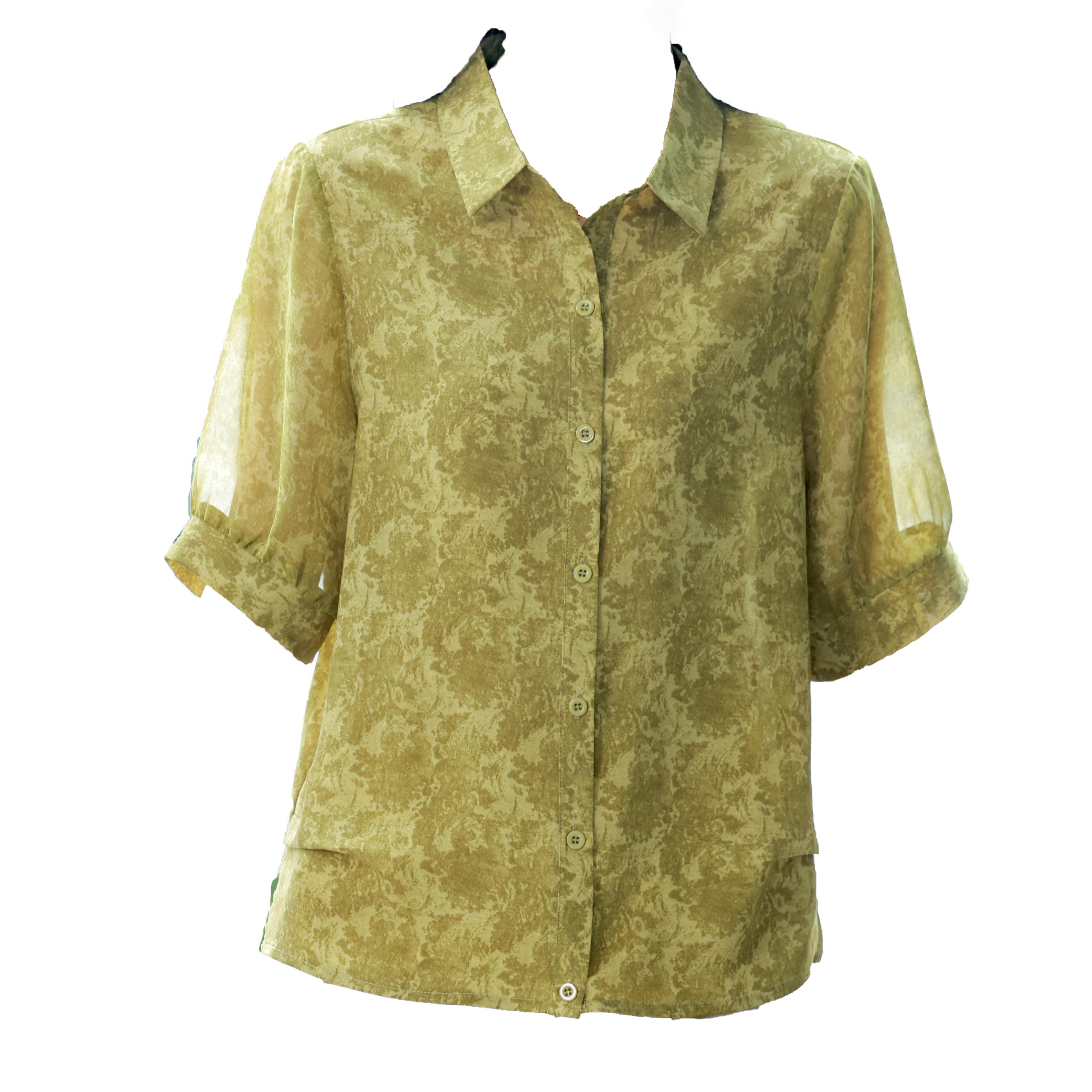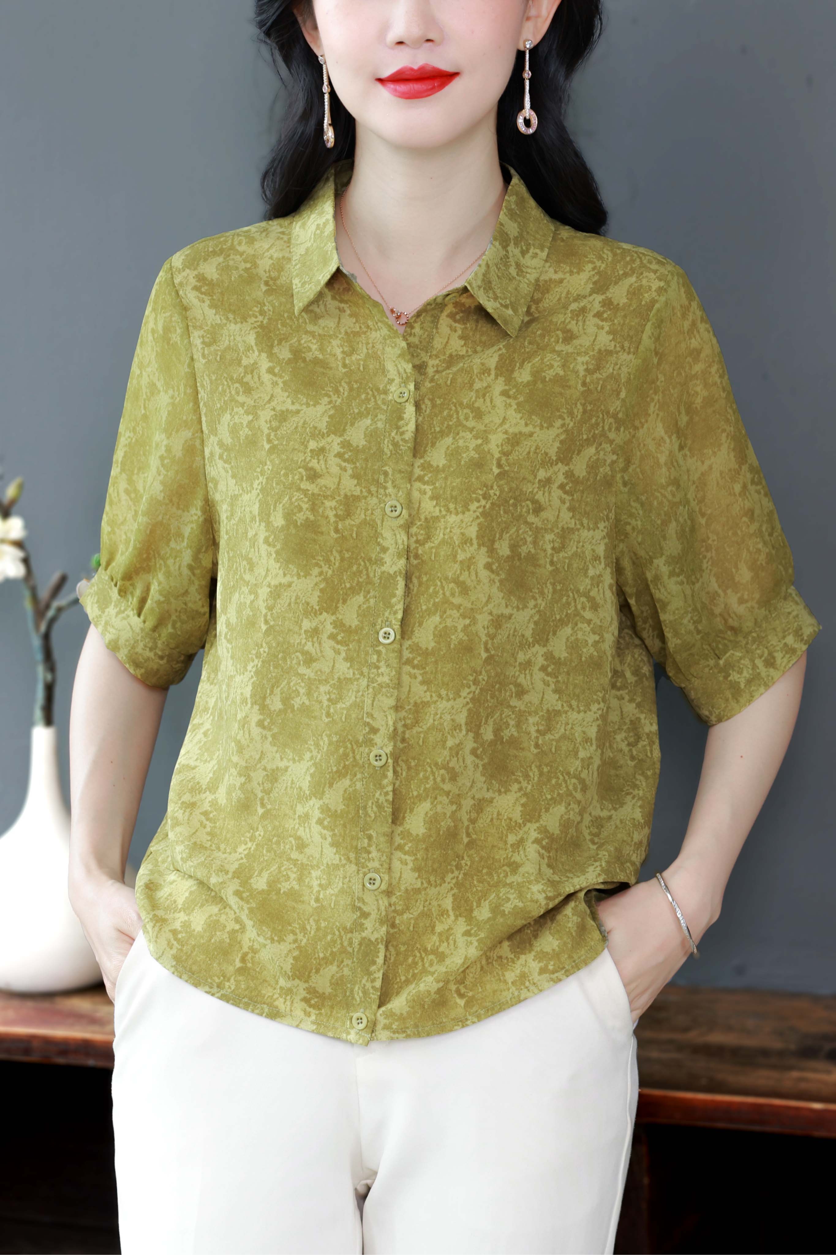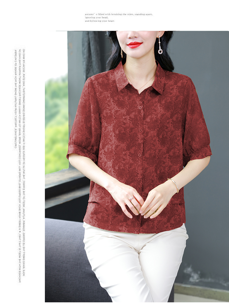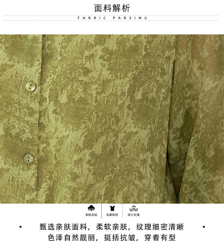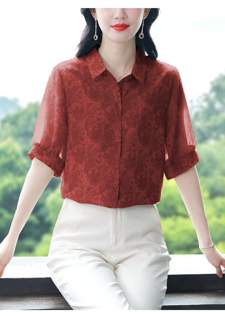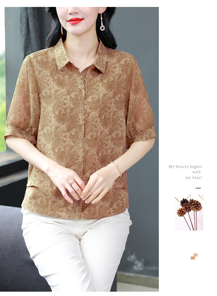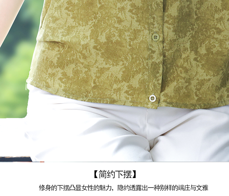 RY3530# 春夏新款七分袖真丝桑蚕丝雪纺翻领开襟衬衫防晒气质显瘦遮肚上衣