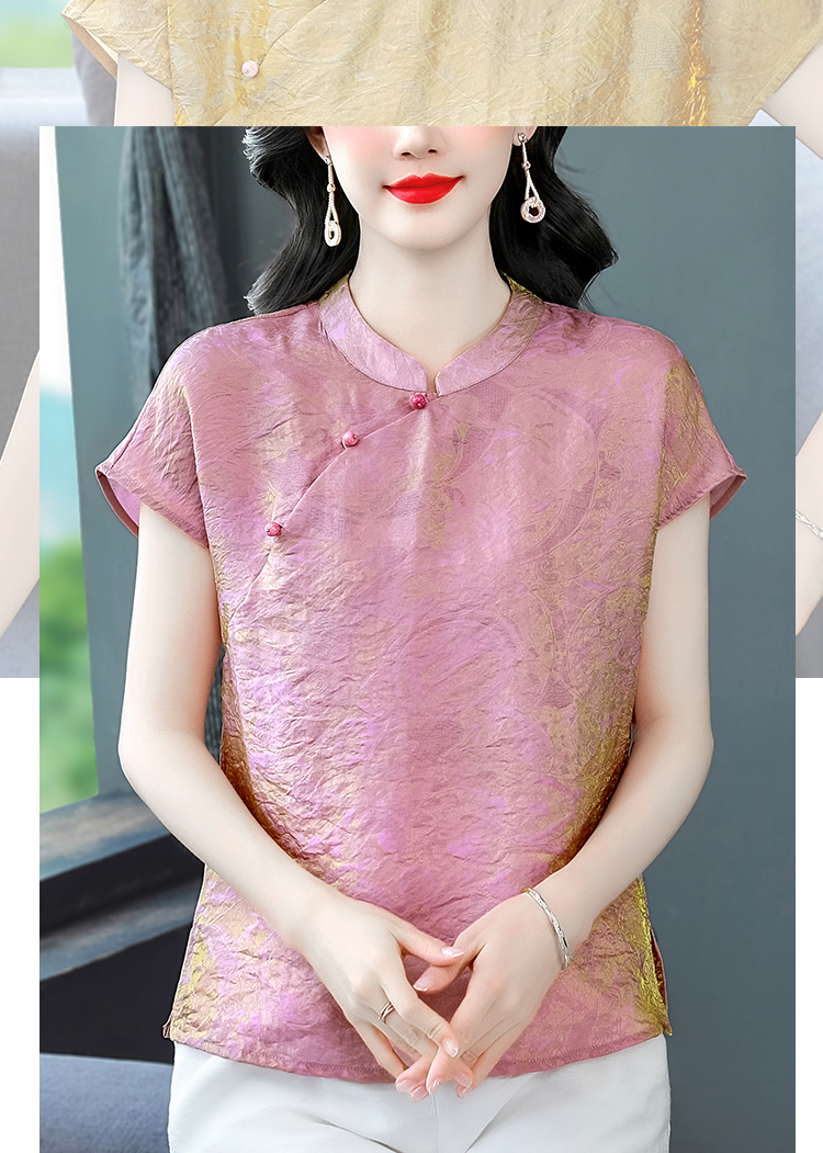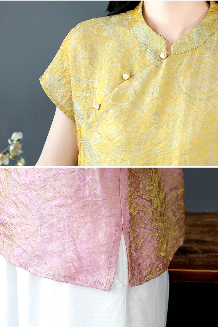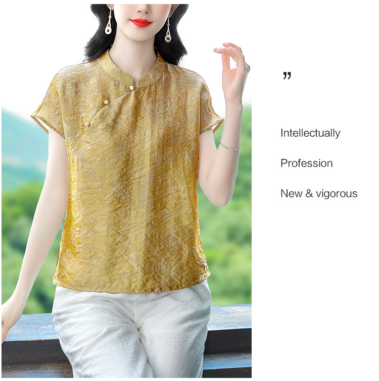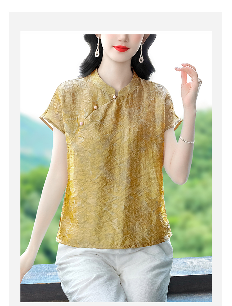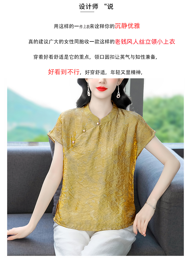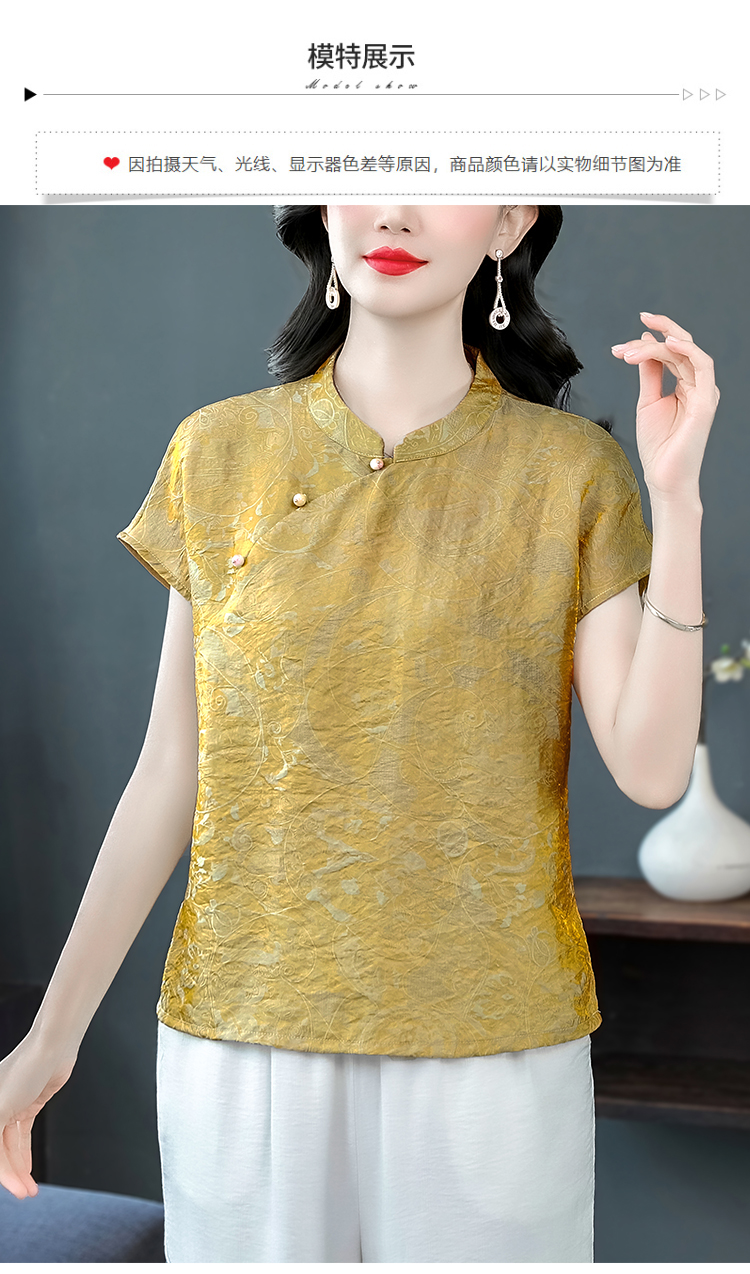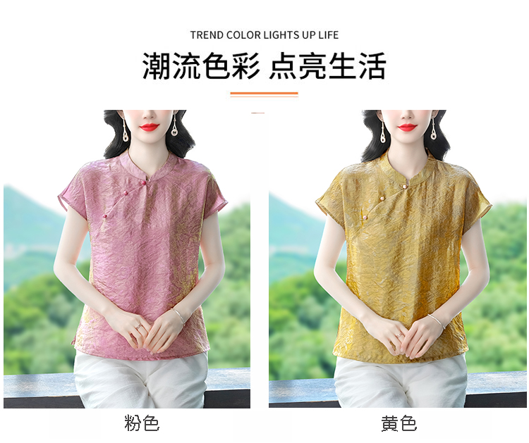 RY3532# 国风盘扣新中式提花香云纱立领盘扣衬衫洋气人丝上衣冰凉宽松舒适