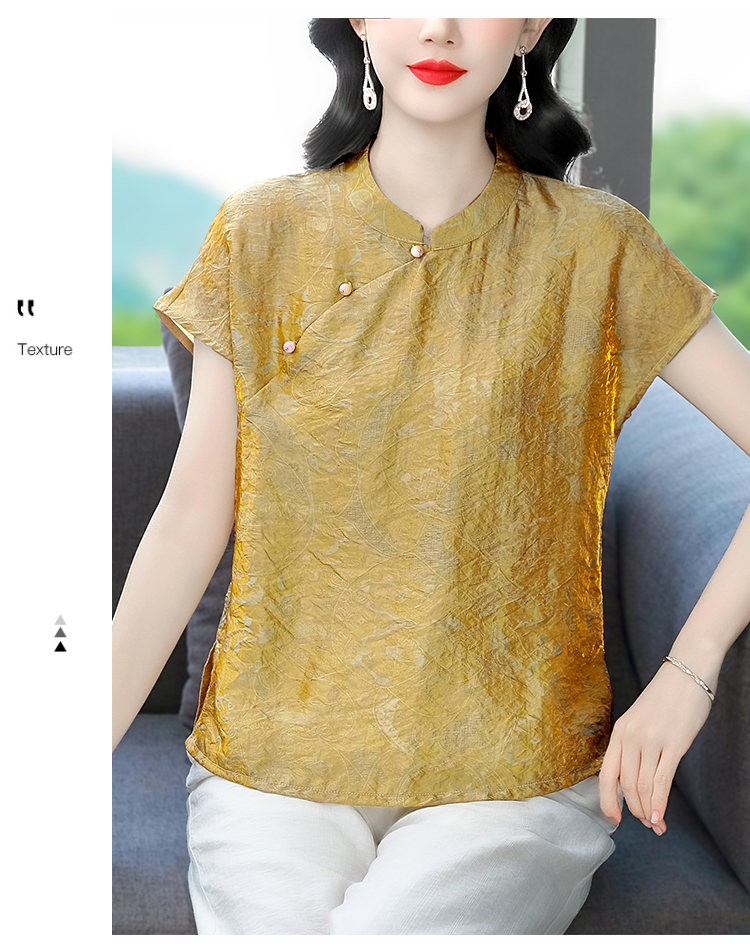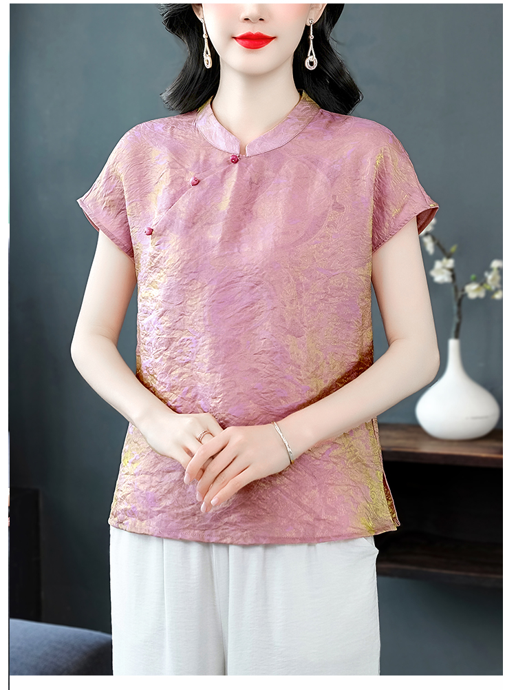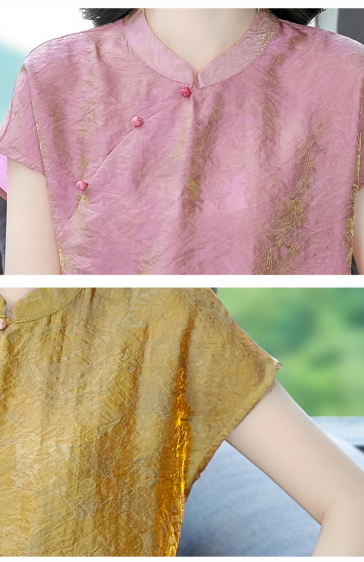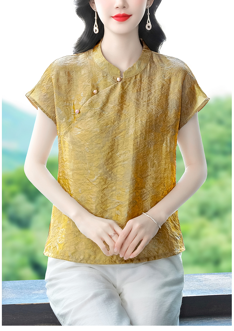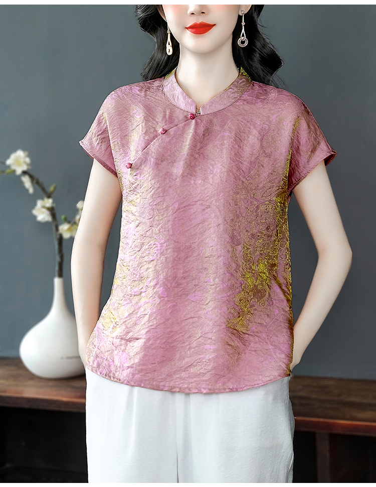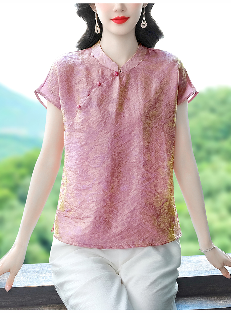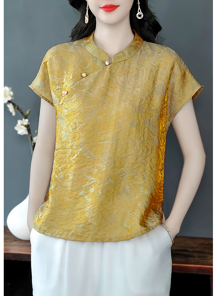 RY3532# 国风盘扣新中式提花香云纱立领盘扣衬衫洋气人丝上衣冰凉宽松舒适