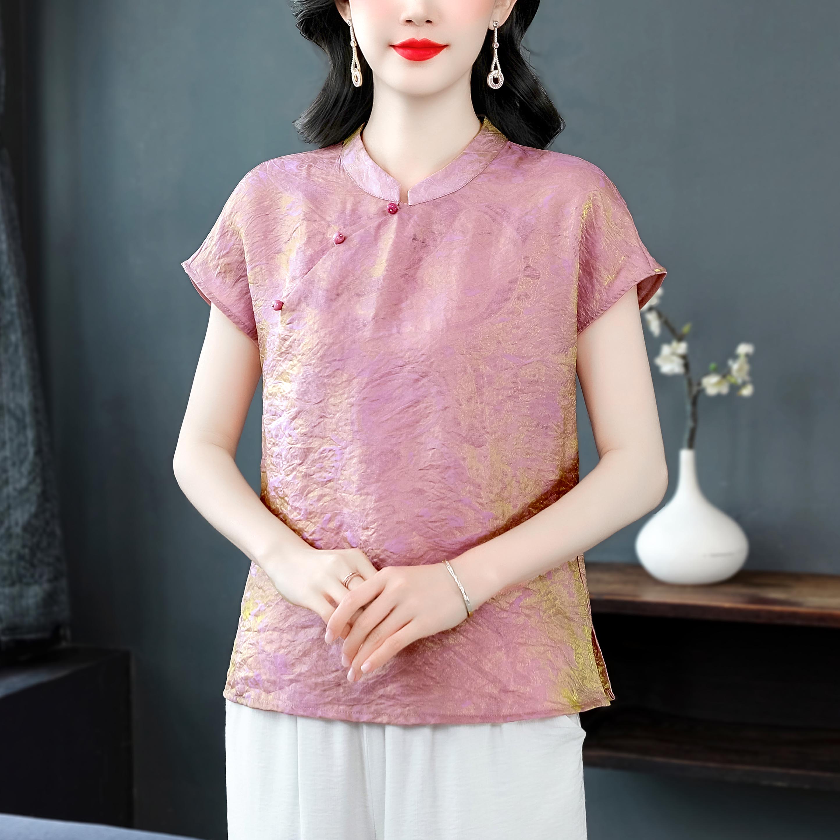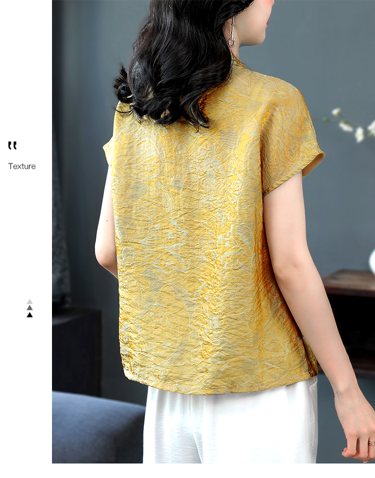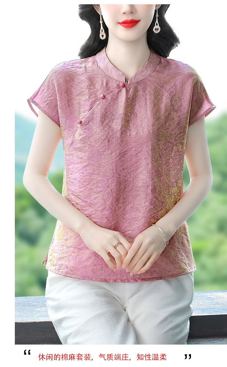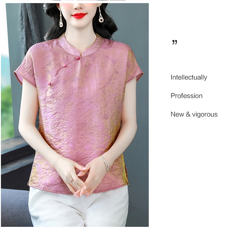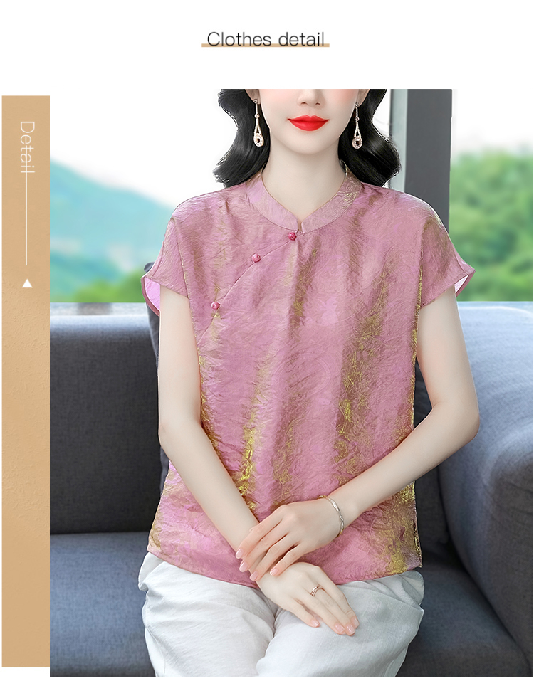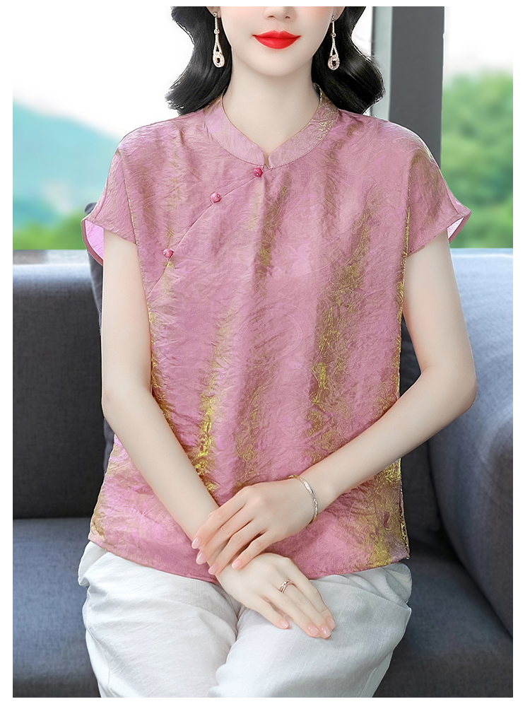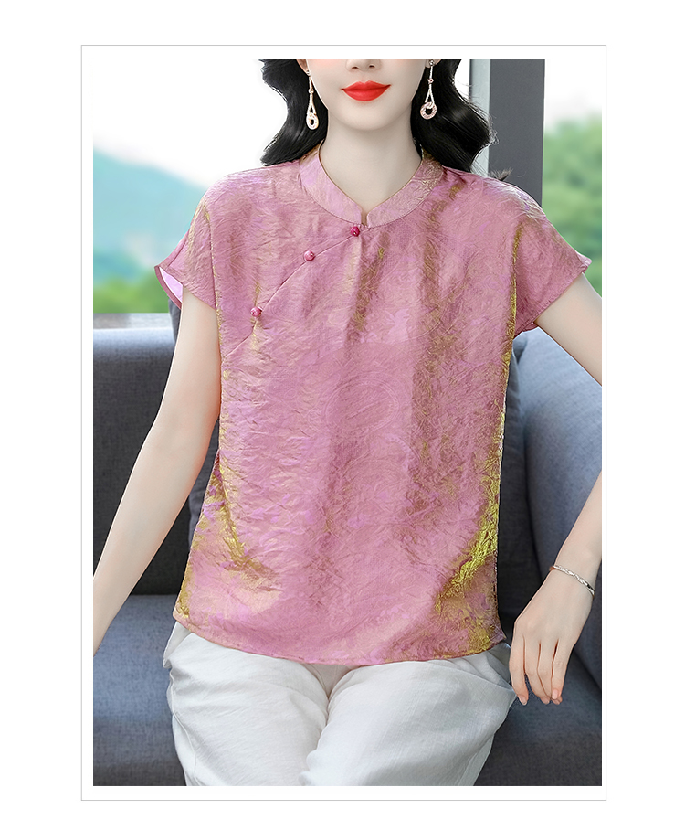 RY3532# 国风盘扣新中式提花香云纱立领盘扣衬衫洋气人丝上衣冰凉宽松舒适