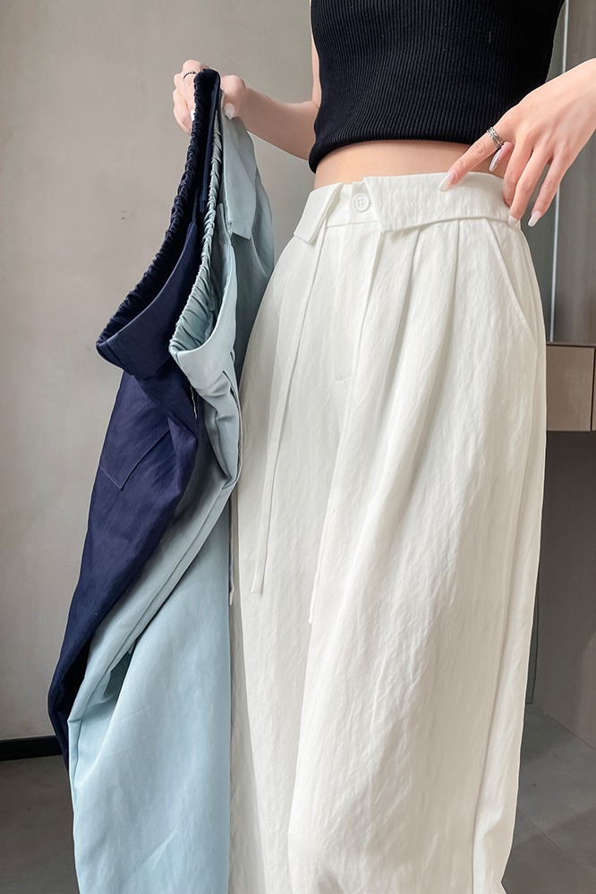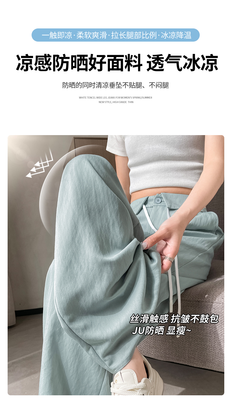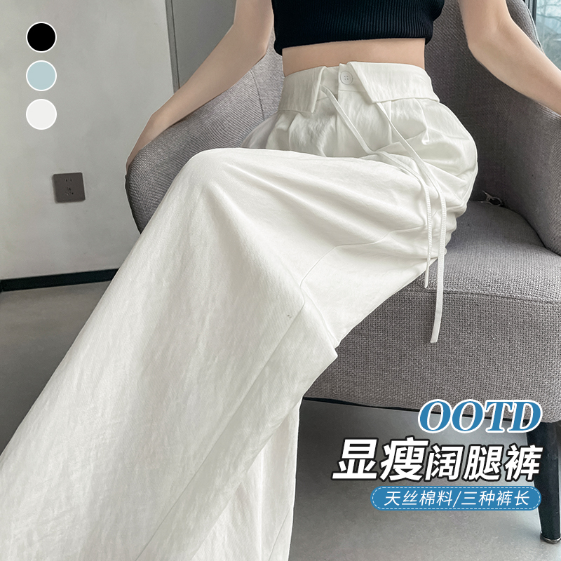 RY3538# 高腰翻边设计感休闲裤女夏季新款冰丝棉麻阔腿裤慵懒宽松垂感长裤