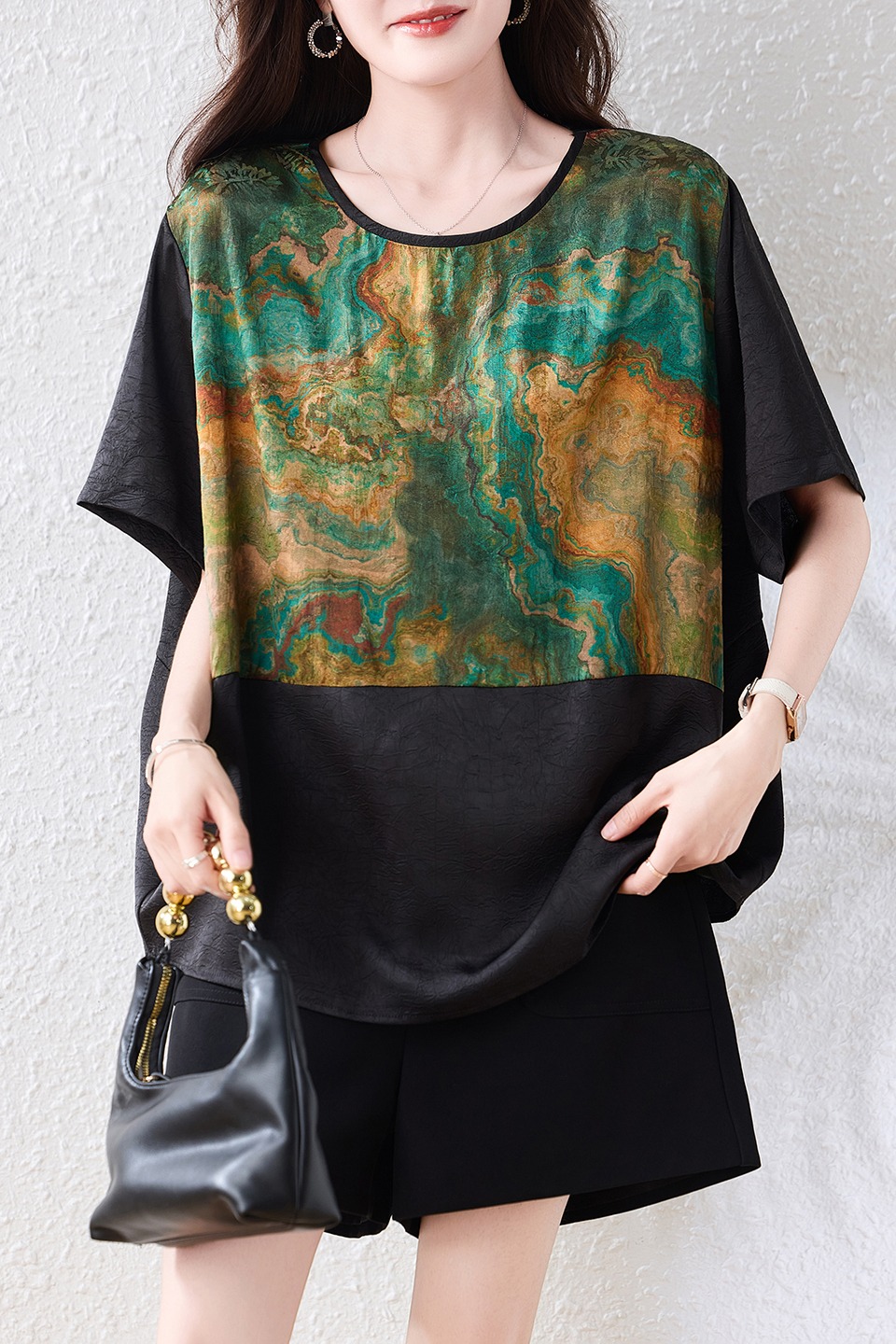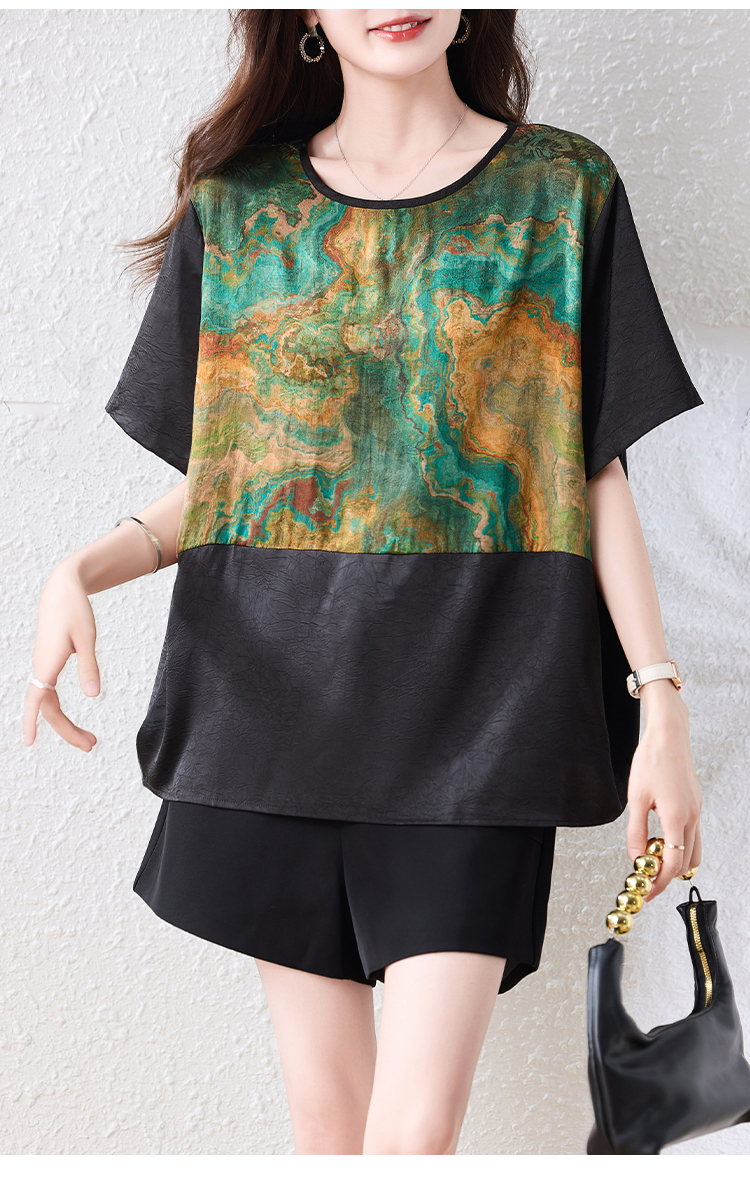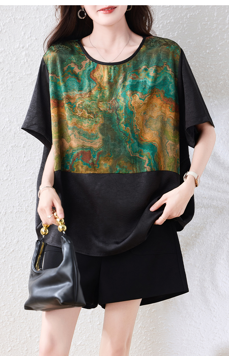 RY3564# 高端大码女装上衣女夏季新款胖MM洋气宽松显瘦时尚百搭T恤小衫