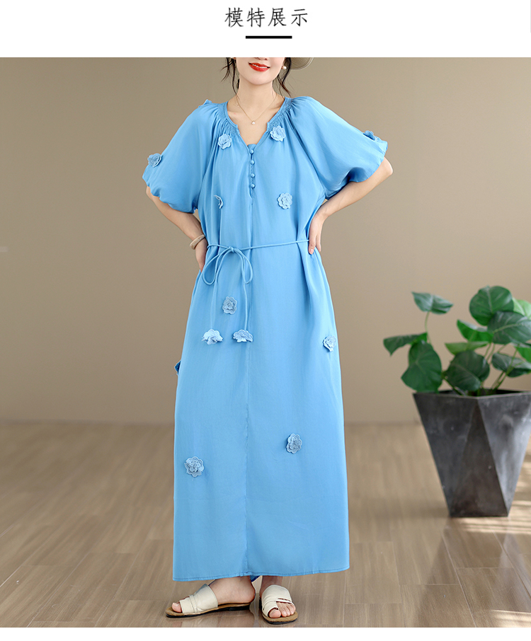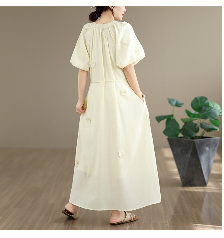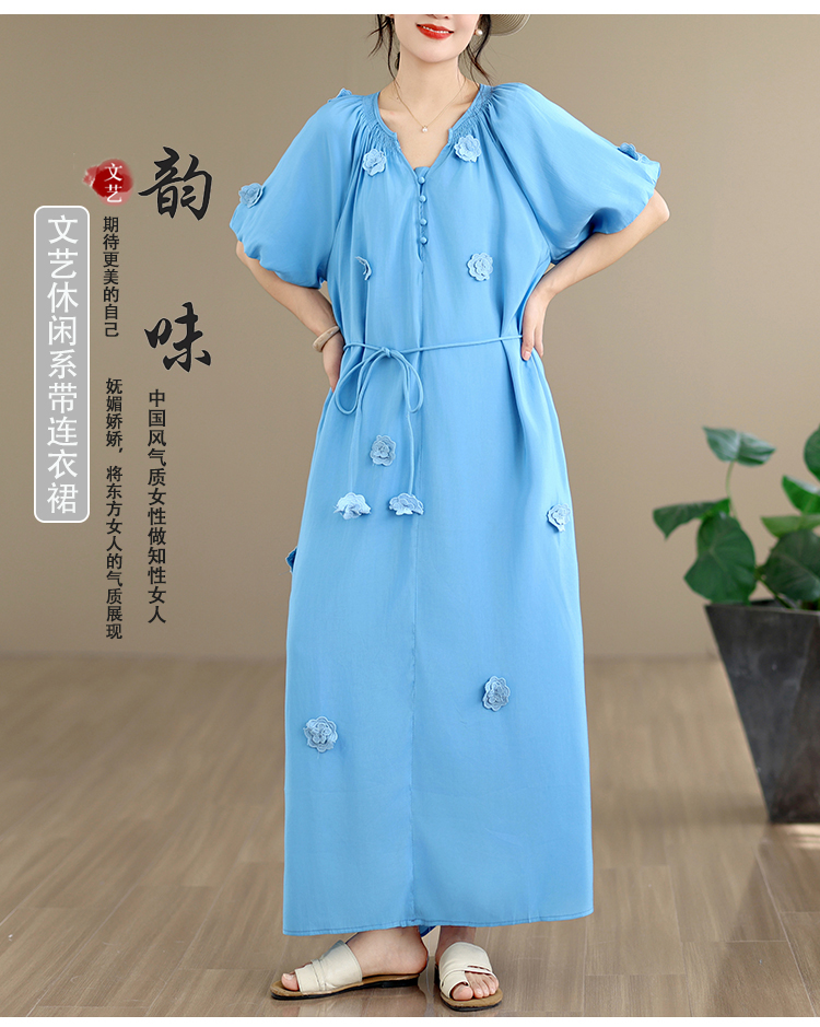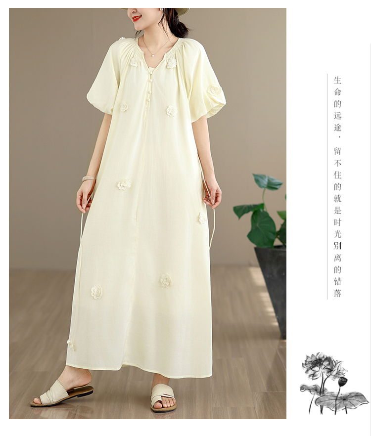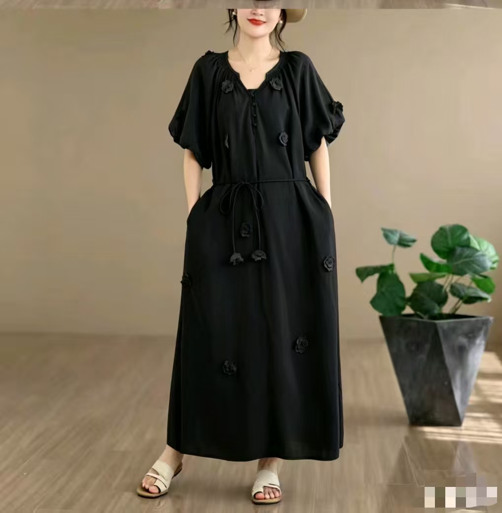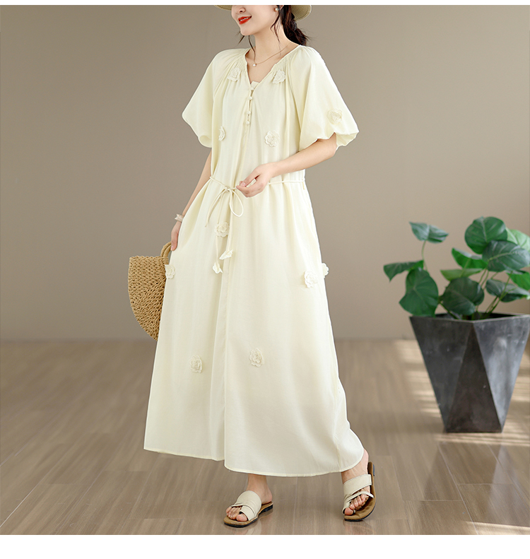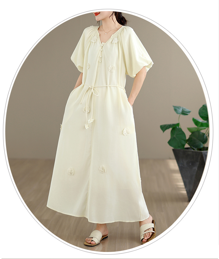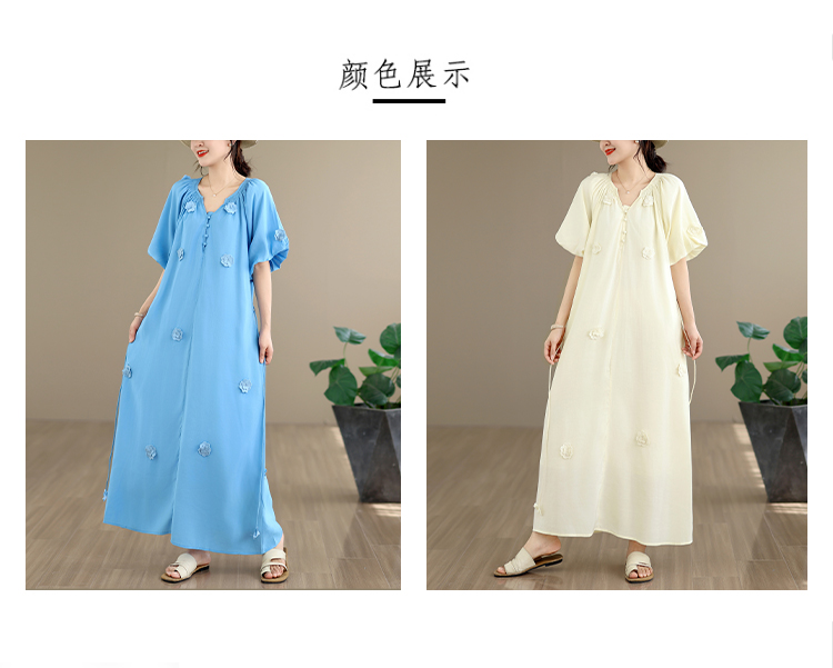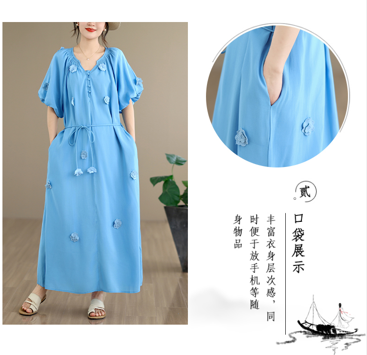 RY3565# 实拍2026新款法式浪漫立体花朵温柔风甜美中长款连衣裙