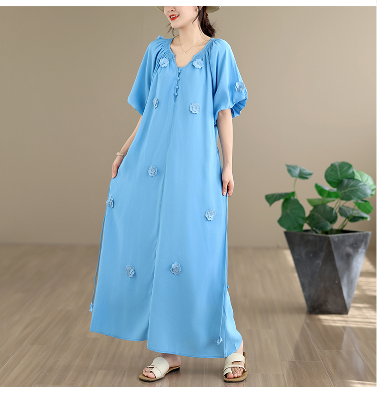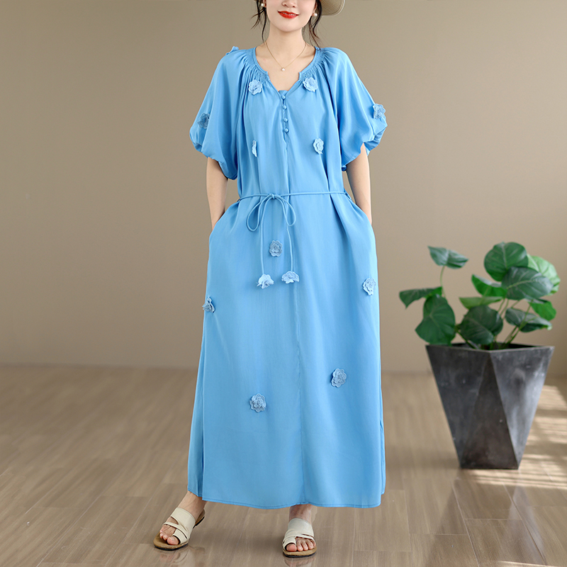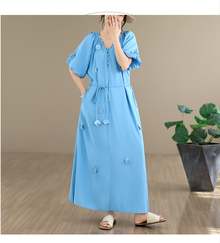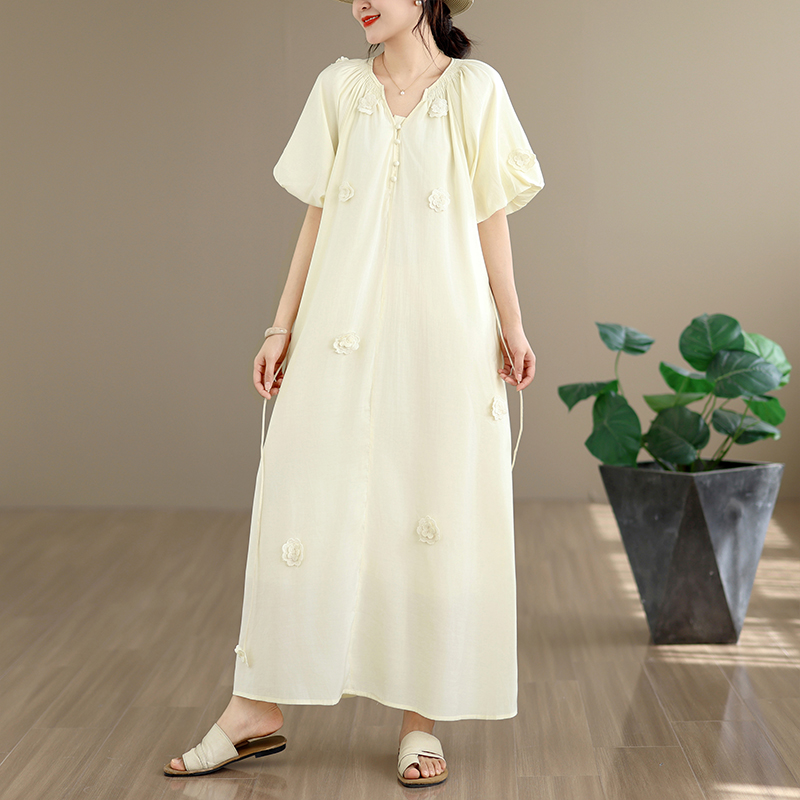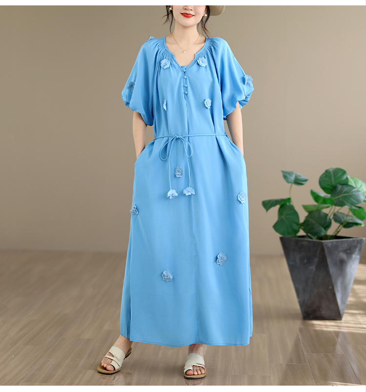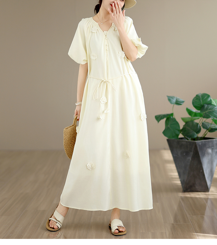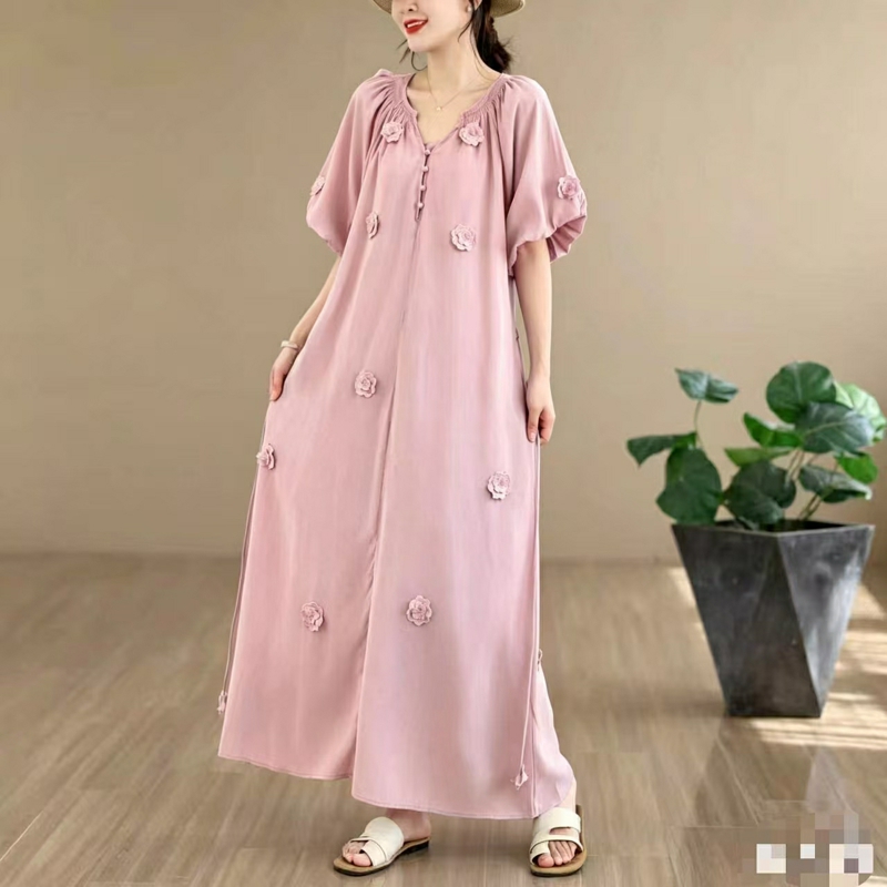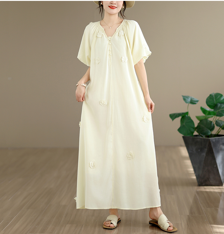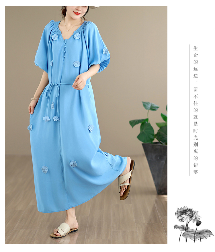 RY3565# 实拍2026新款法式浪漫立体花朵温柔风甜美中长款连衣裙