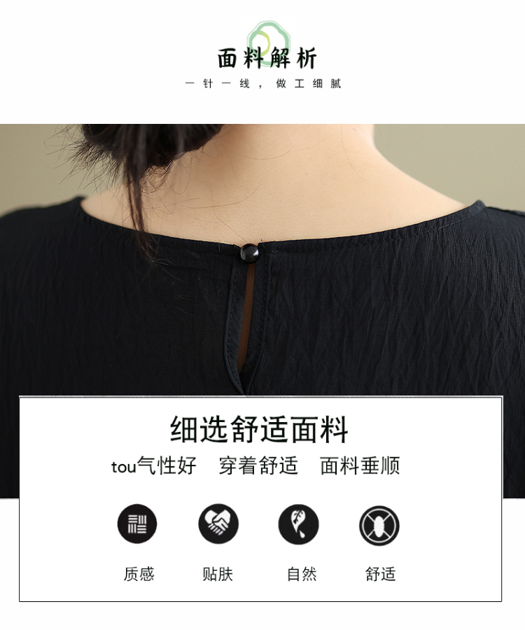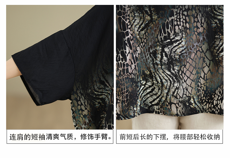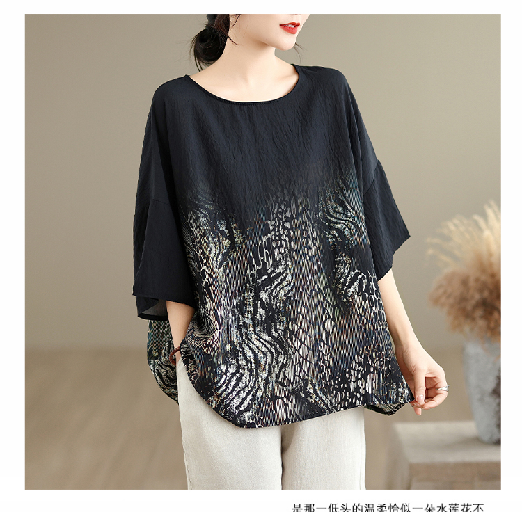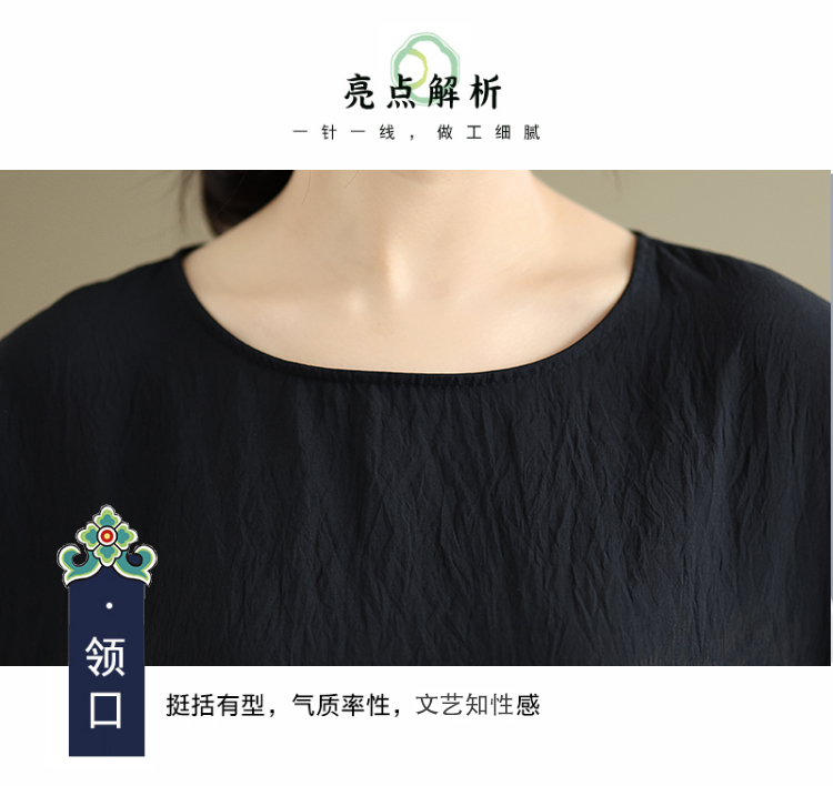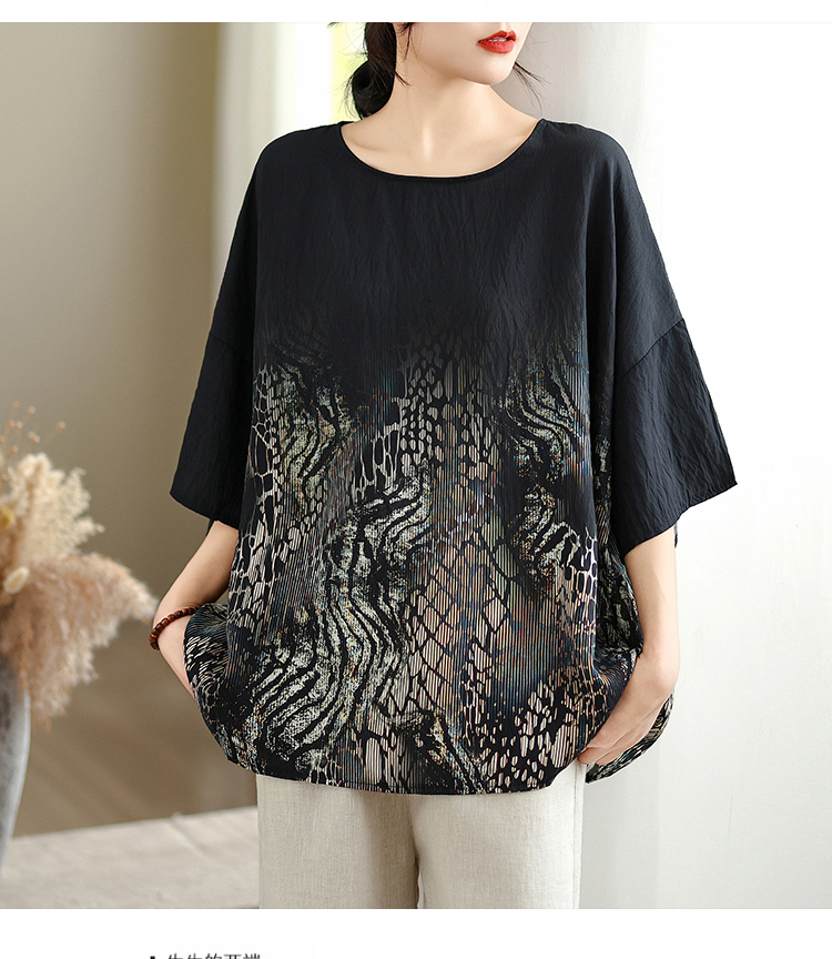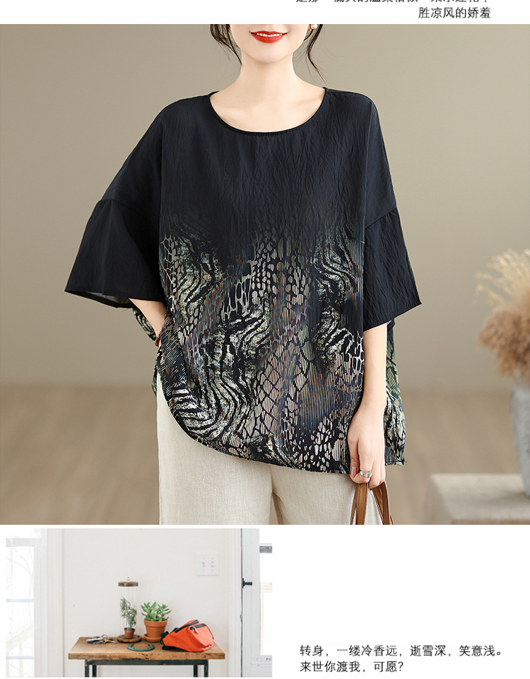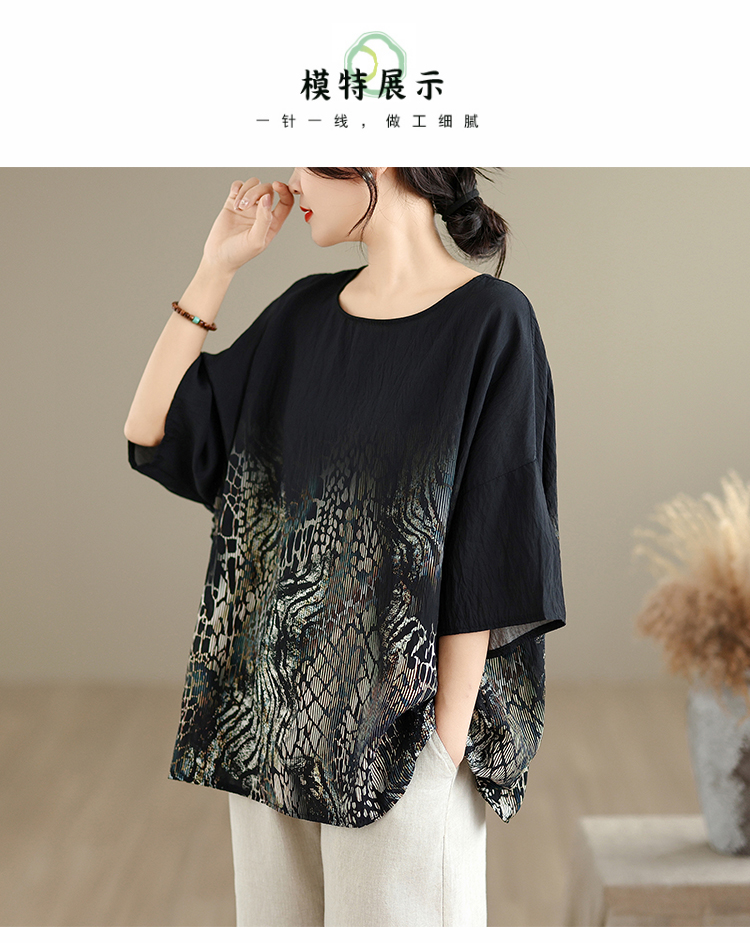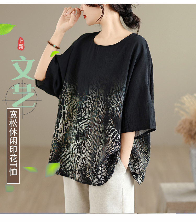 RY3571# 实拍2026夏季新品麻棉民族风蝙蝠袖宽松大码圆领T恤女