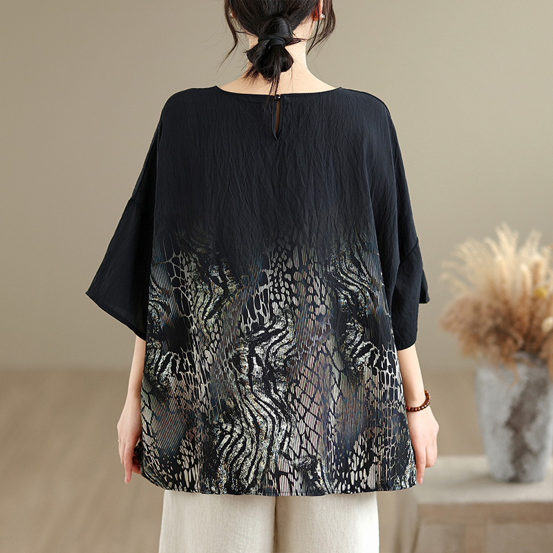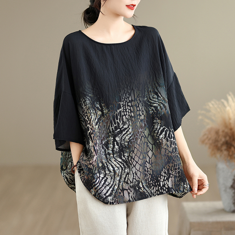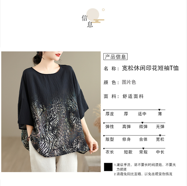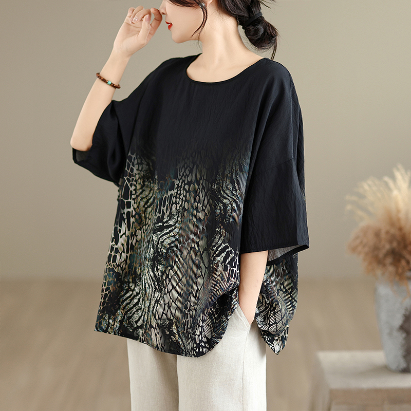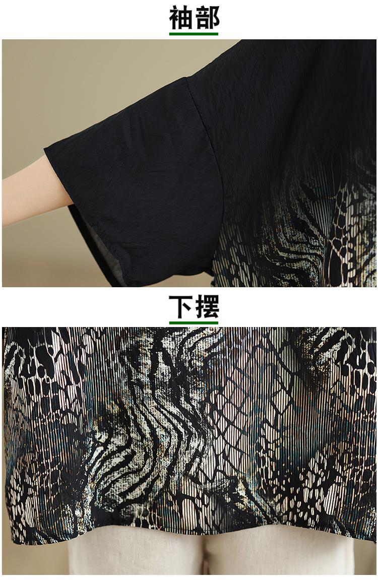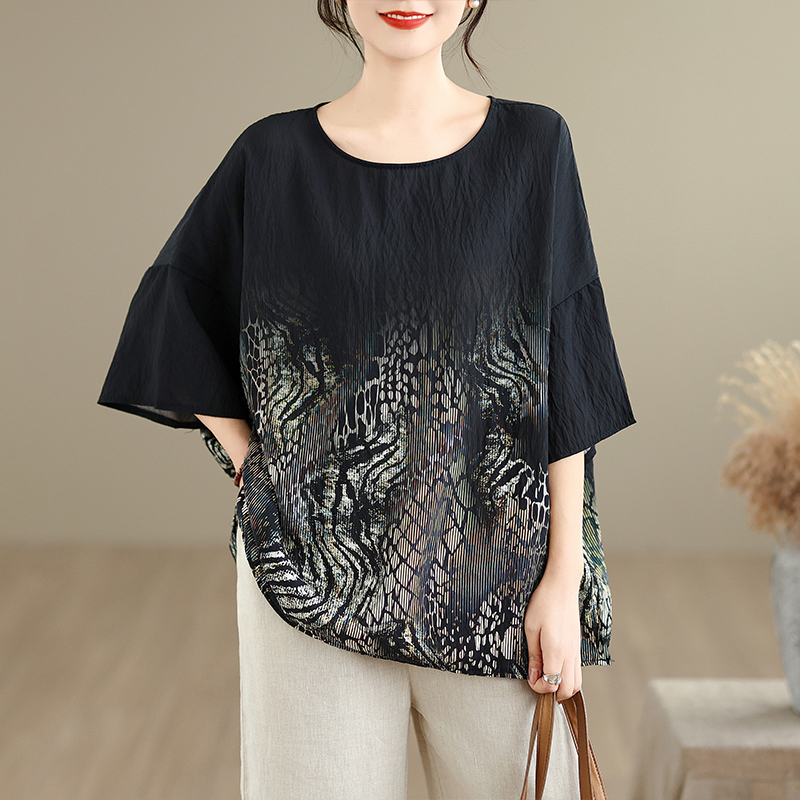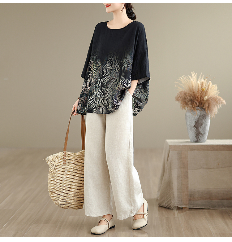 RY3571# 实拍2026夏季新品麻棉民族风蝙蝠袖宽松大码圆领T恤女