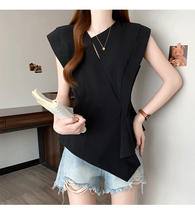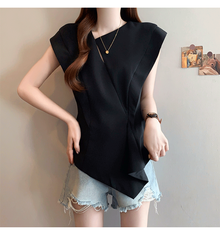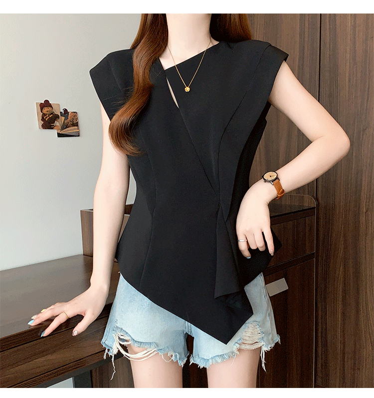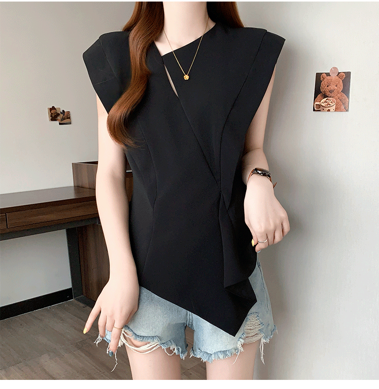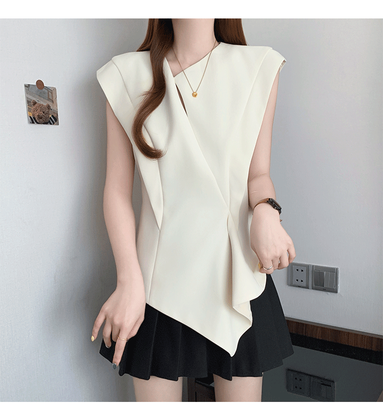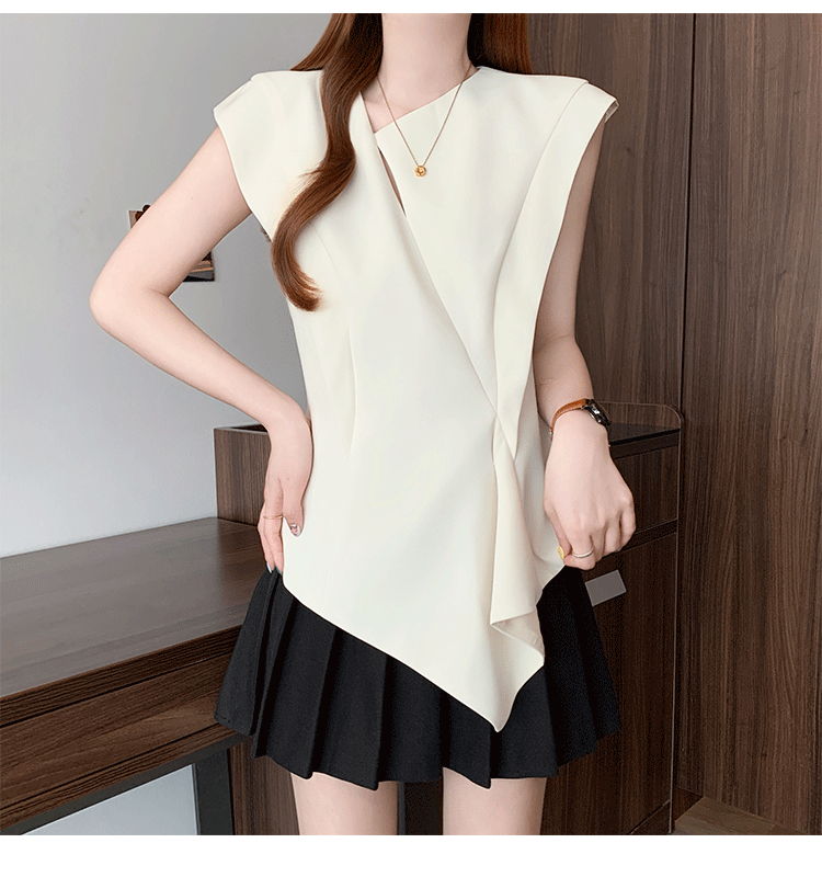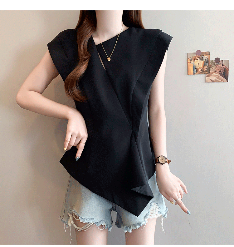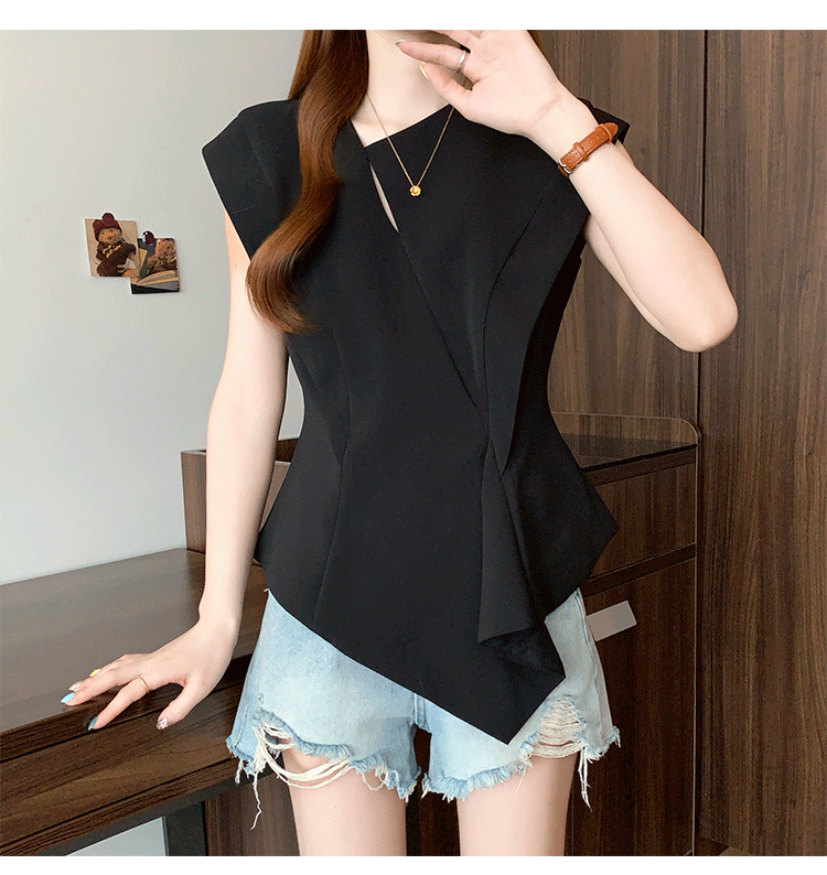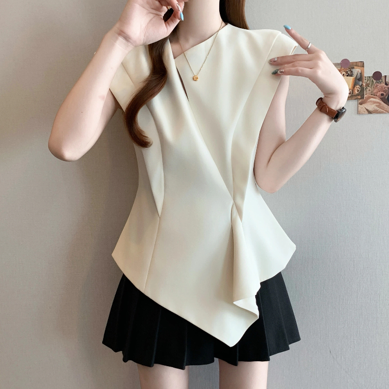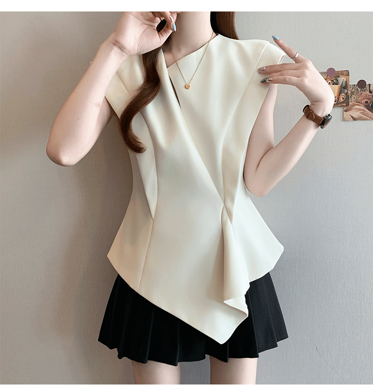 RY3574# 实拍2026夏季新款大码时尚高级感设计不规则轻奢收腰显瘦T恤上衣