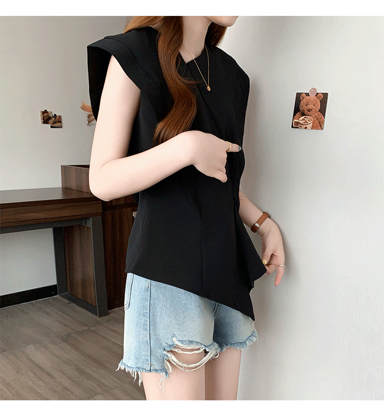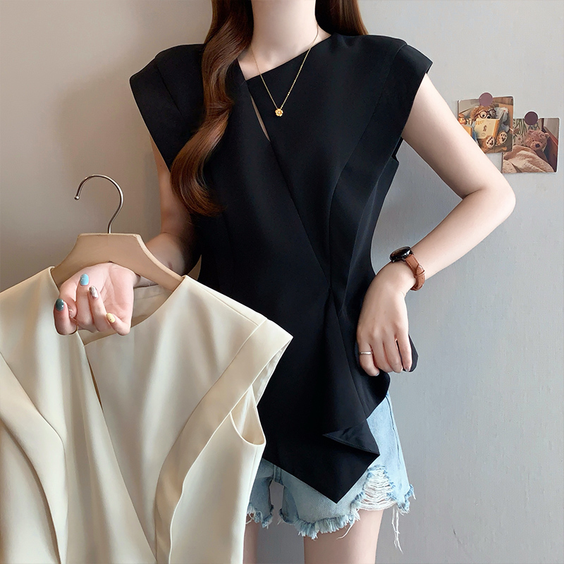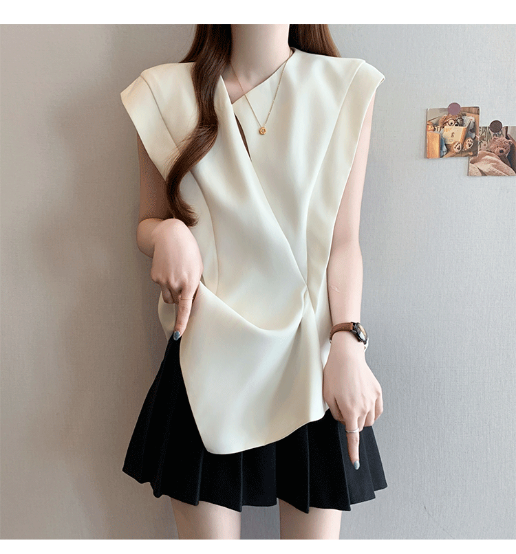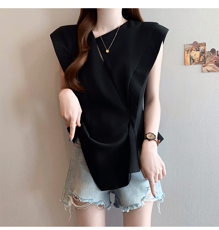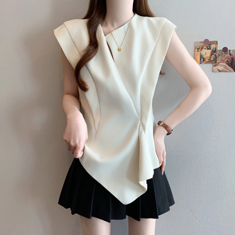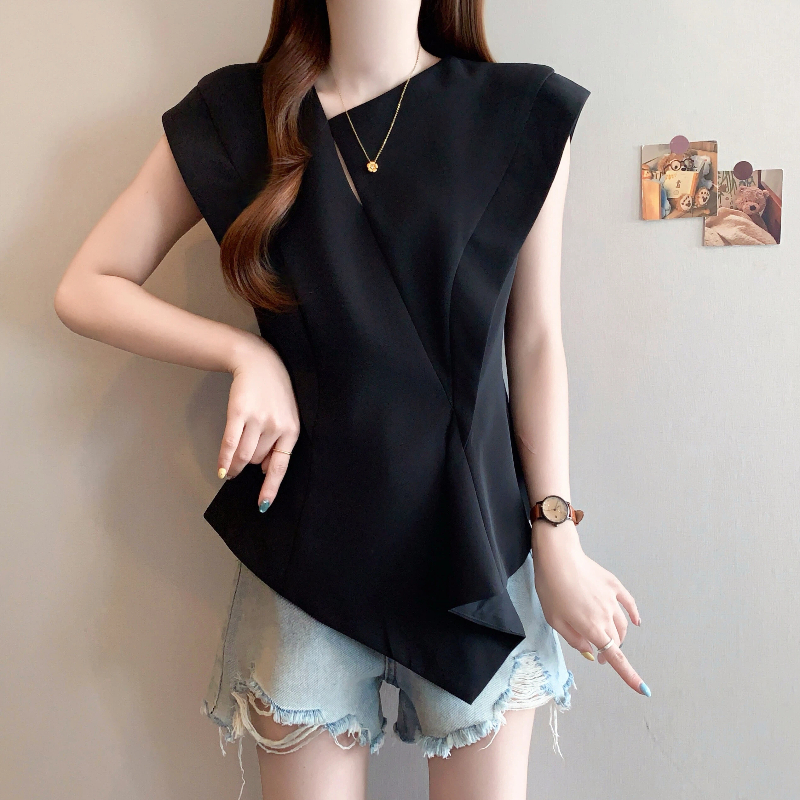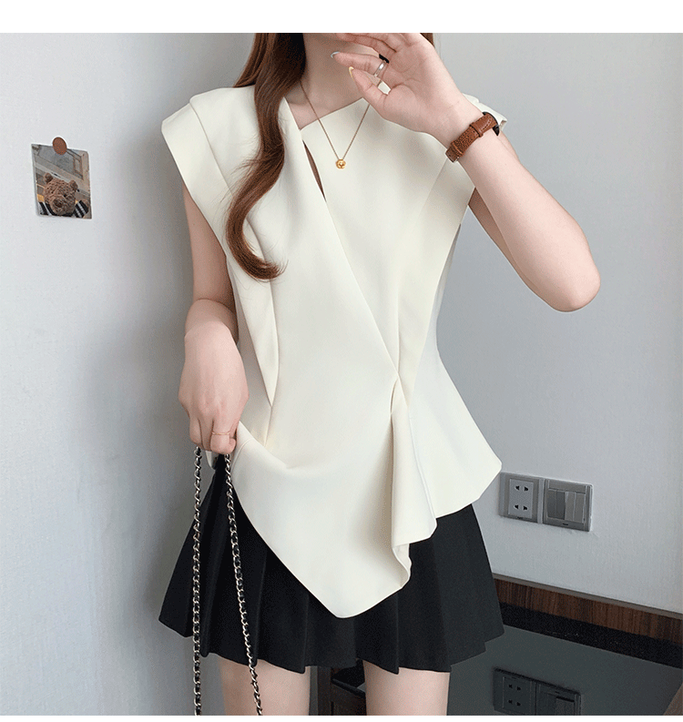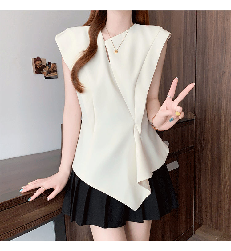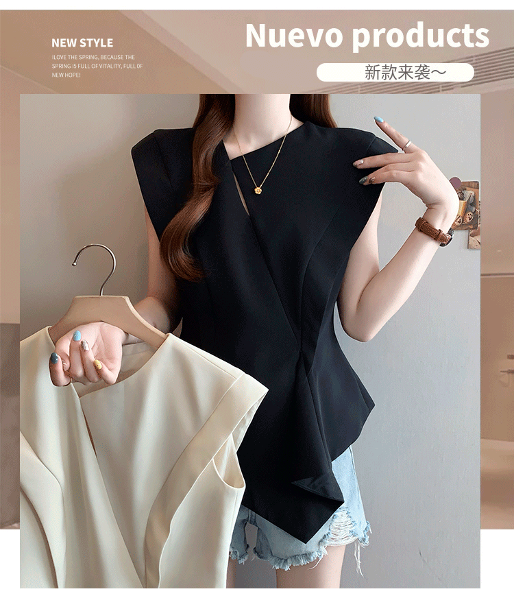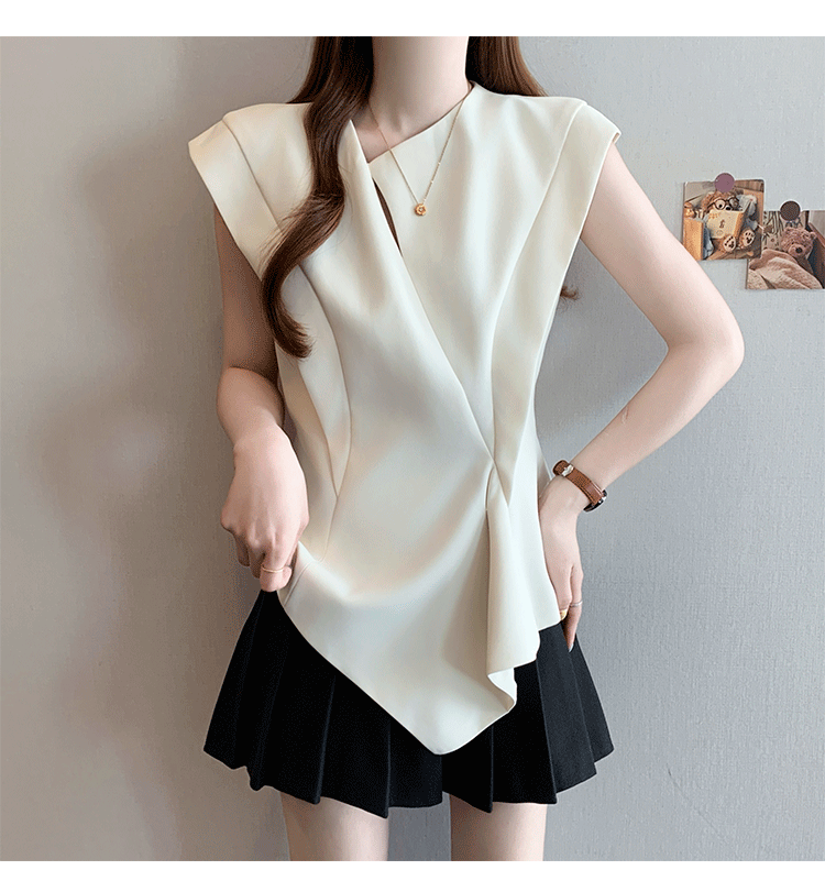 RY3574# 实拍2026夏季新款大码时尚高级感设计不规则轻奢收腰显瘦T恤上衣