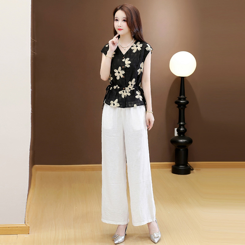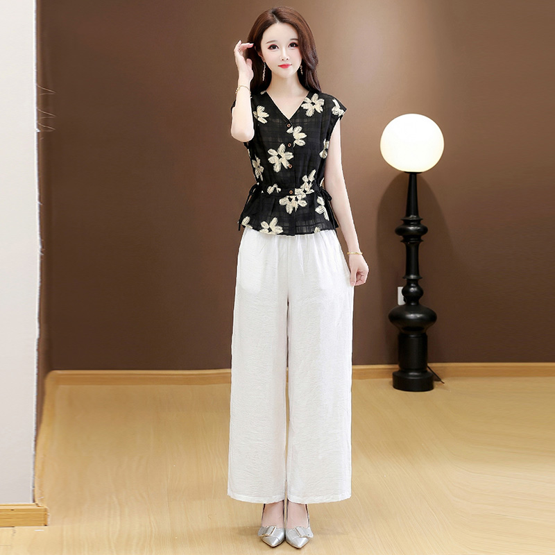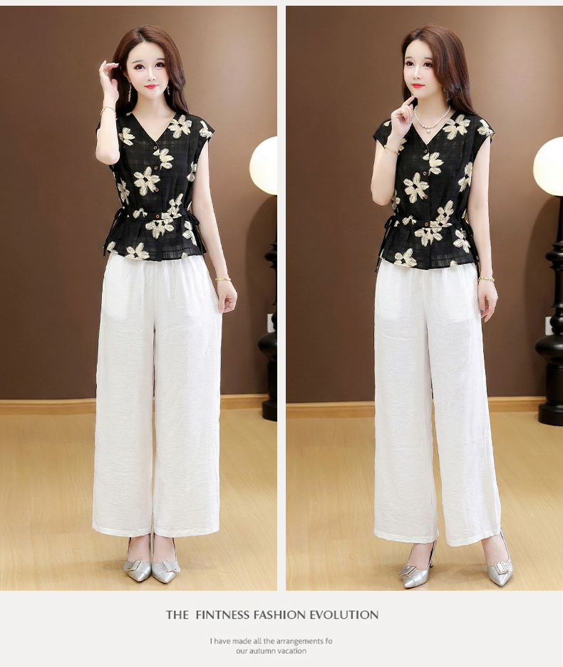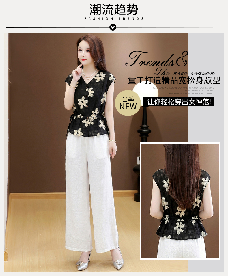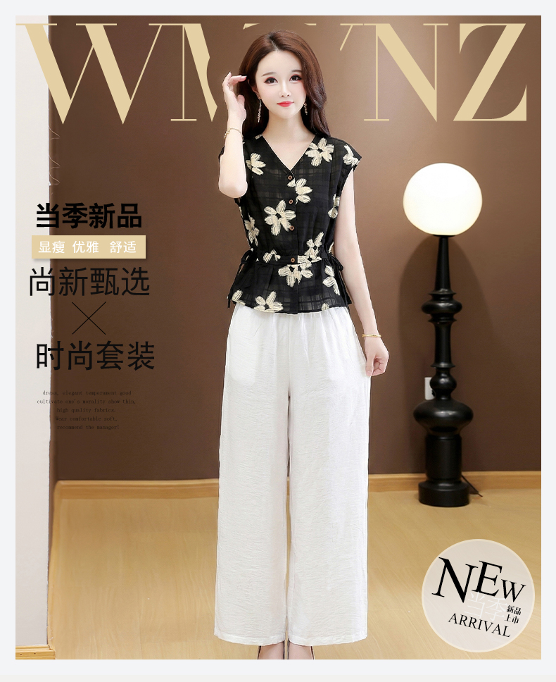 RY3577# 实拍有货 2026夏季新款大码时尚套装无袖套裤阔腿裤洋气减龄