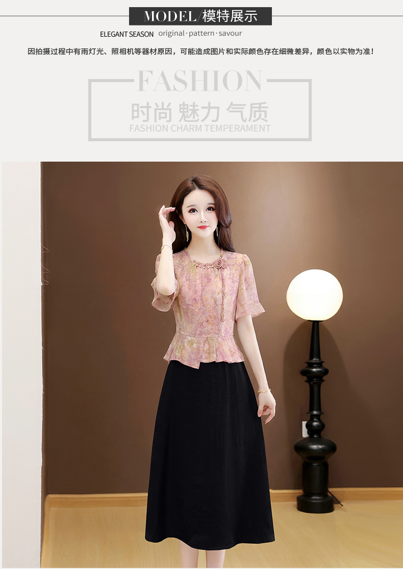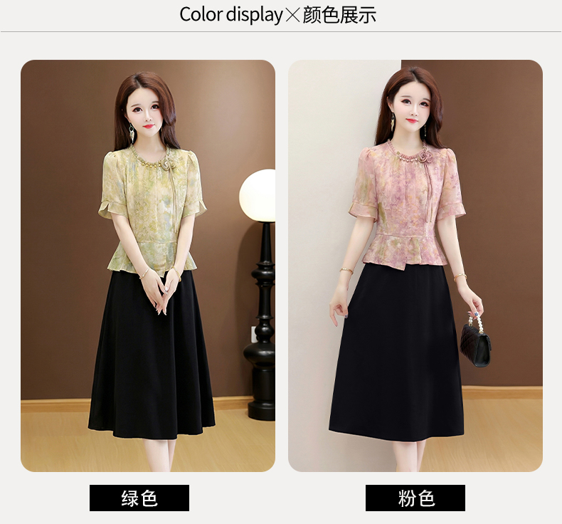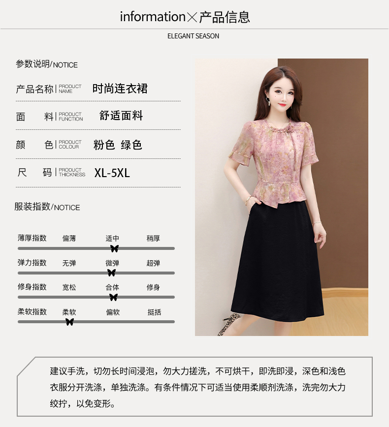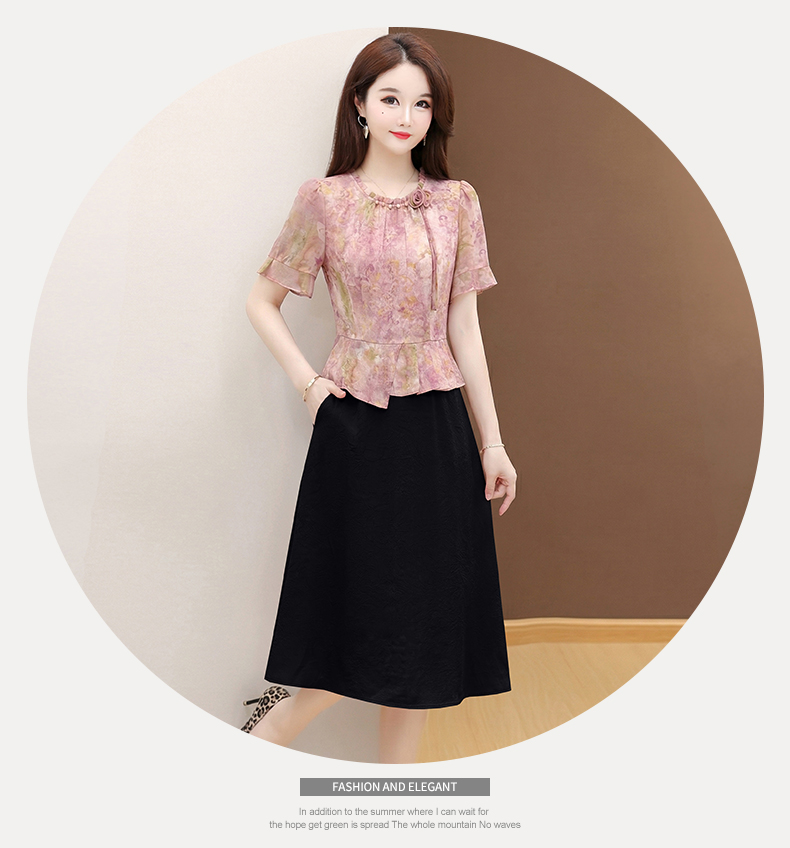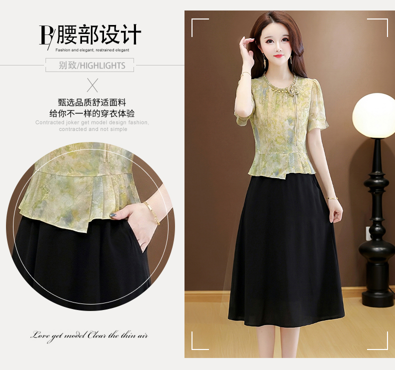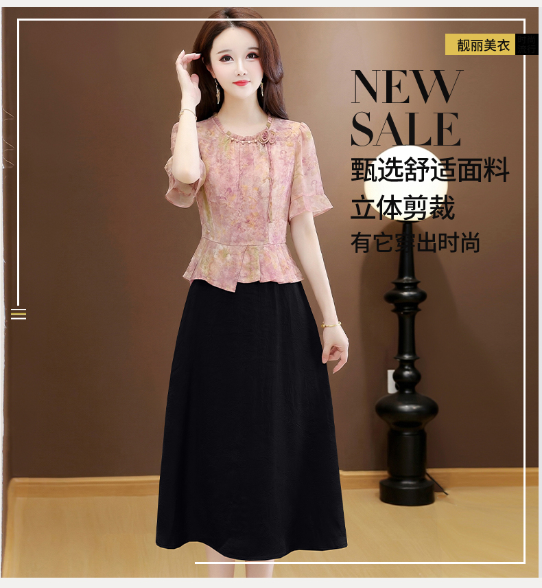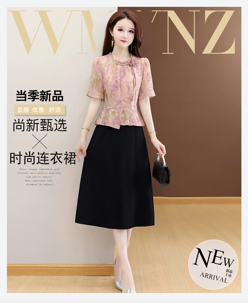 RY3579# 实拍有货 2026夏季新款大码短袖连衣裙妈妈装收腰显瘦口袋洋气