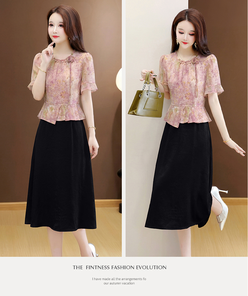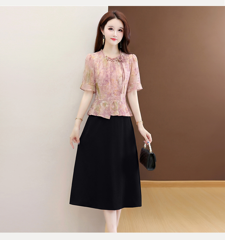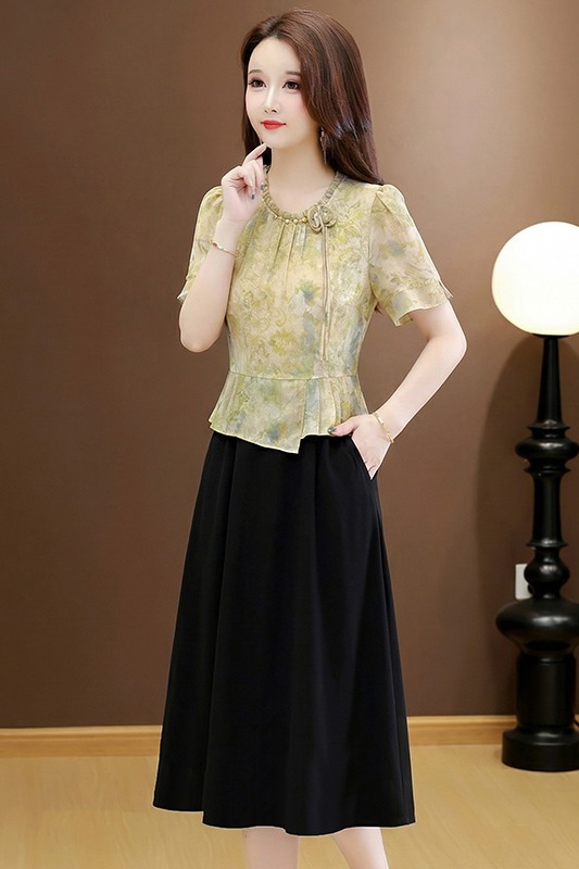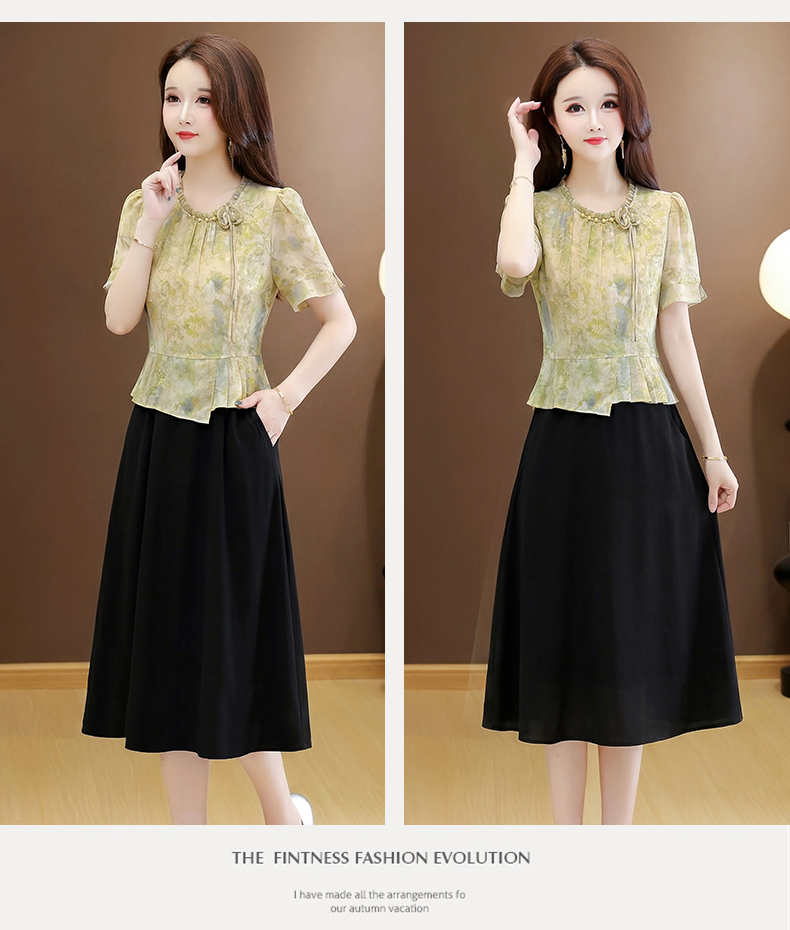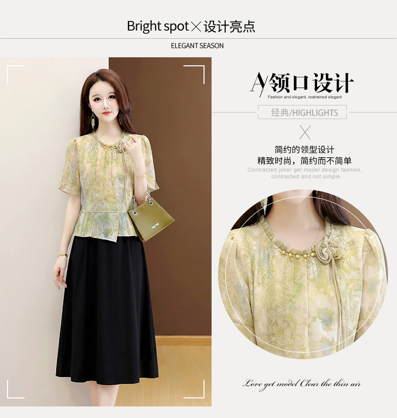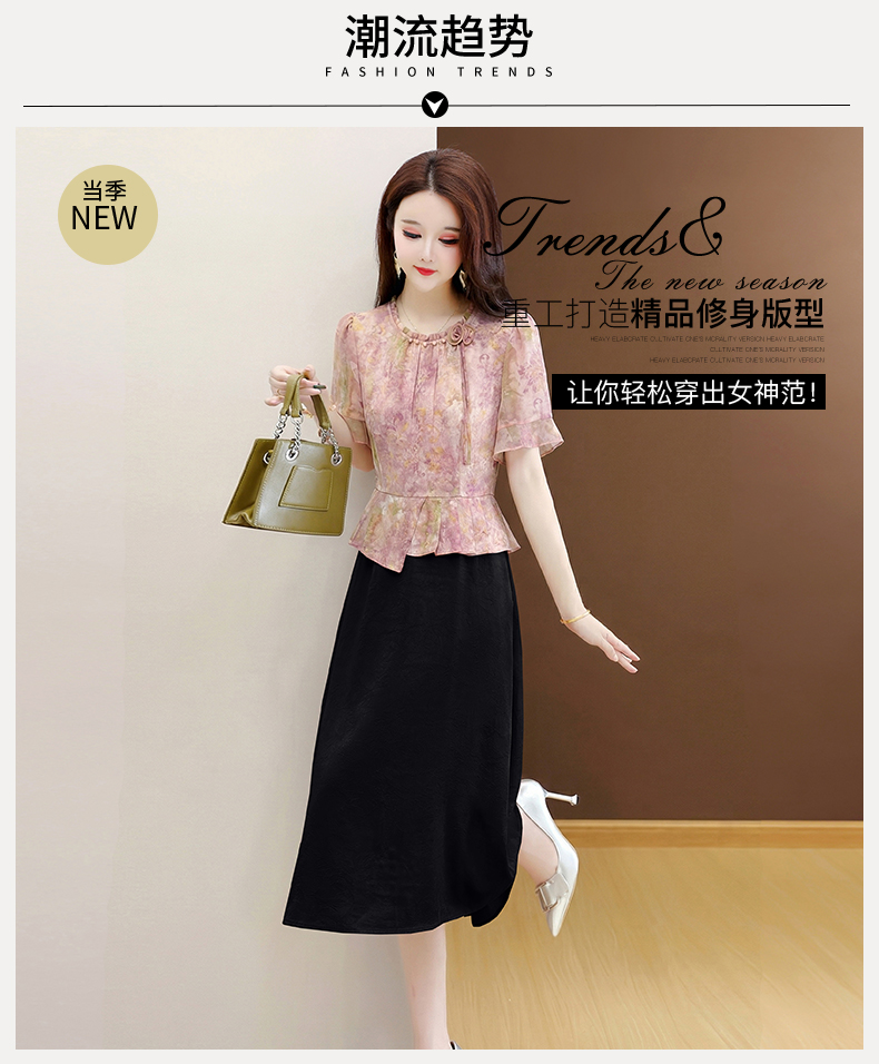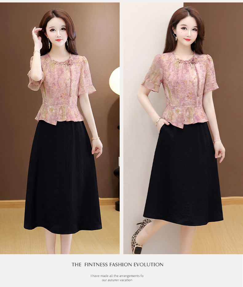 RY3579# 实拍有货 2026夏季新款大码短袖连衣裙妈妈装收腰显瘦口袋洋气
