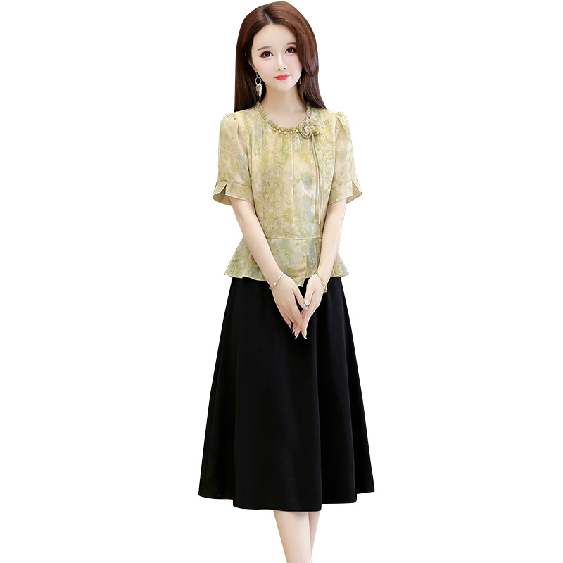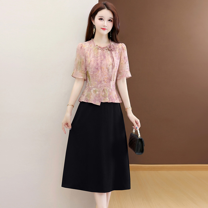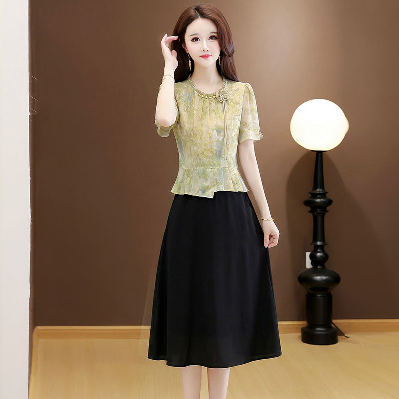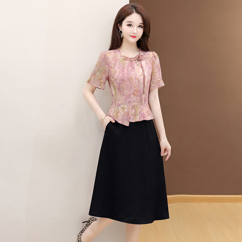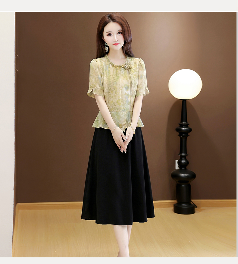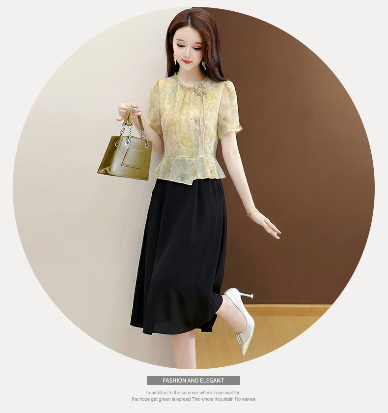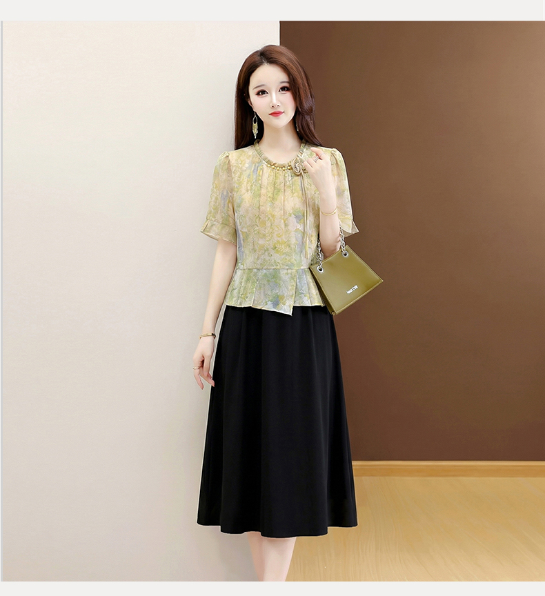 RY3579# 实拍有货 2026夏季新款大码短袖连衣裙妈妈装收腰显瘦口袋洋气