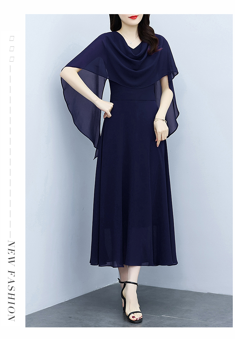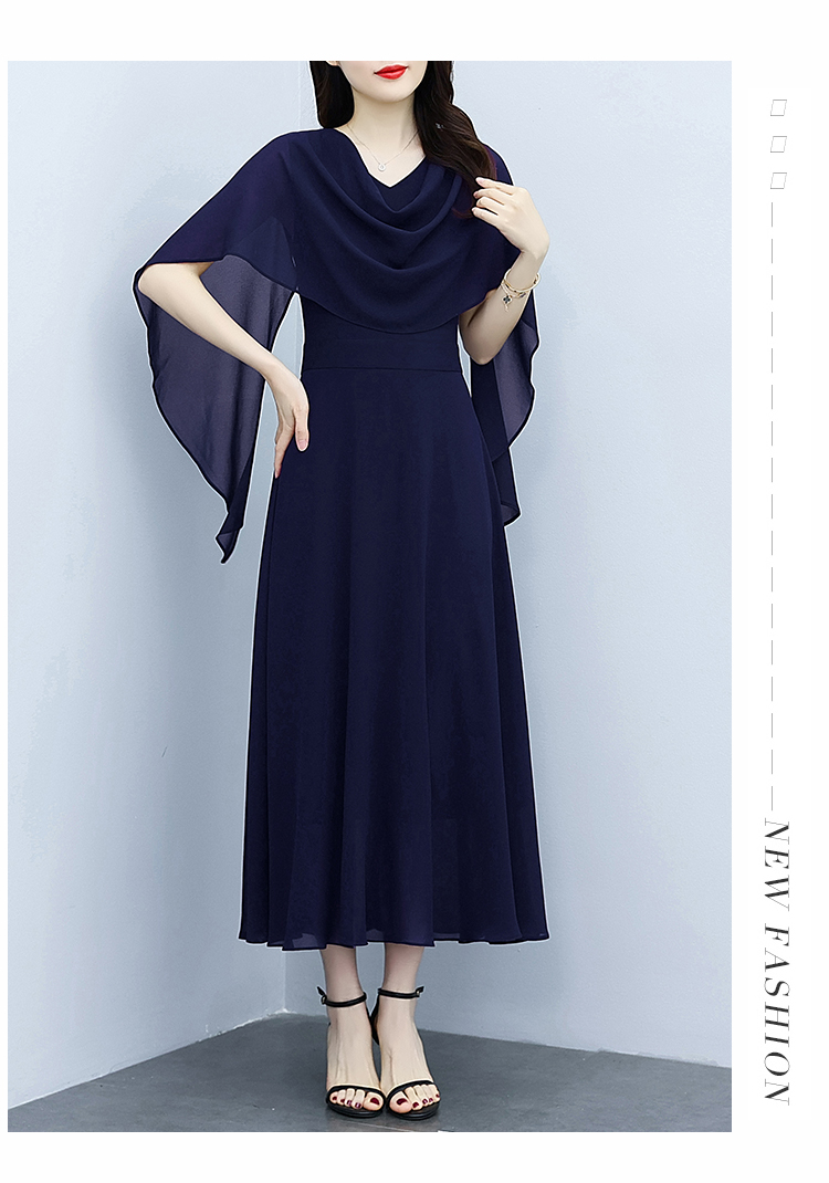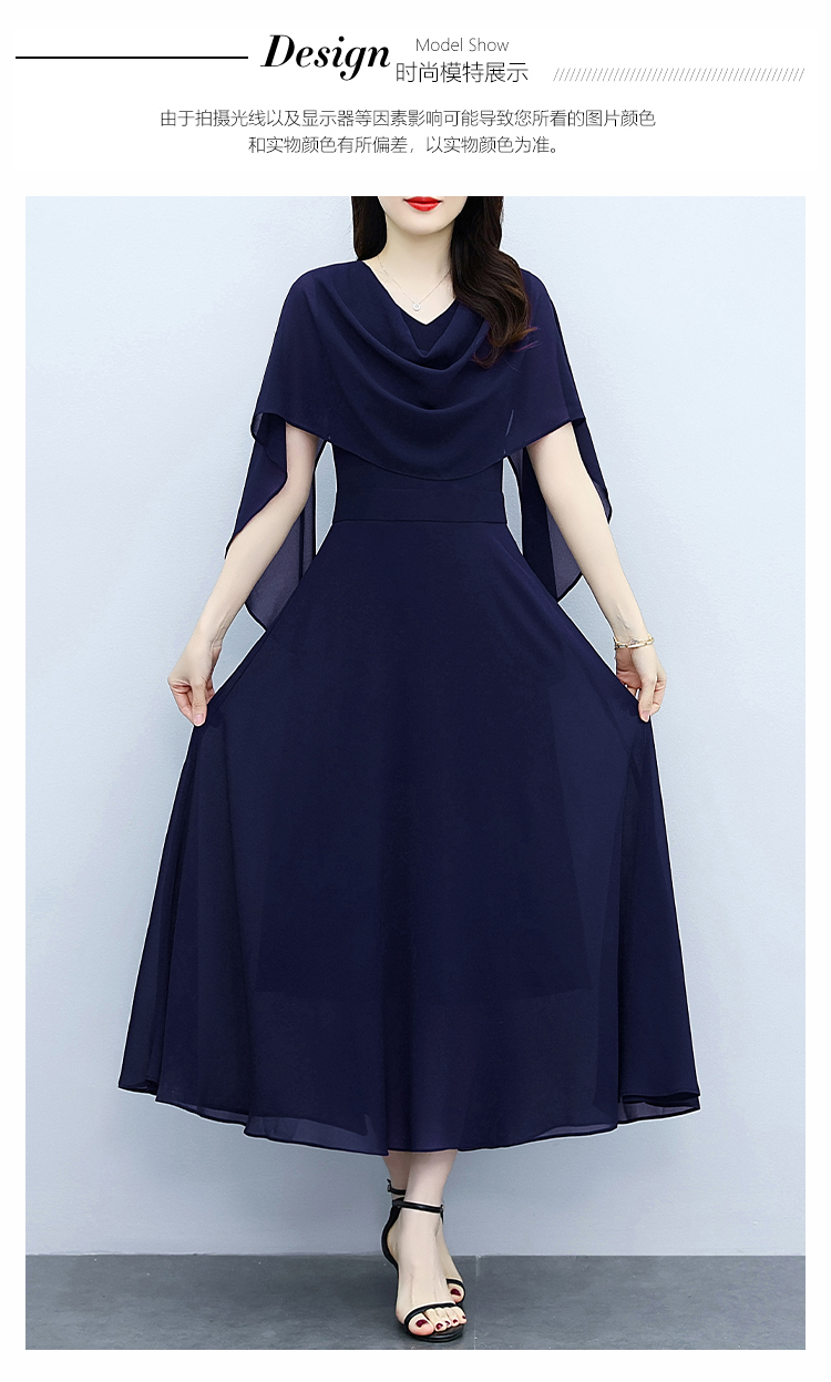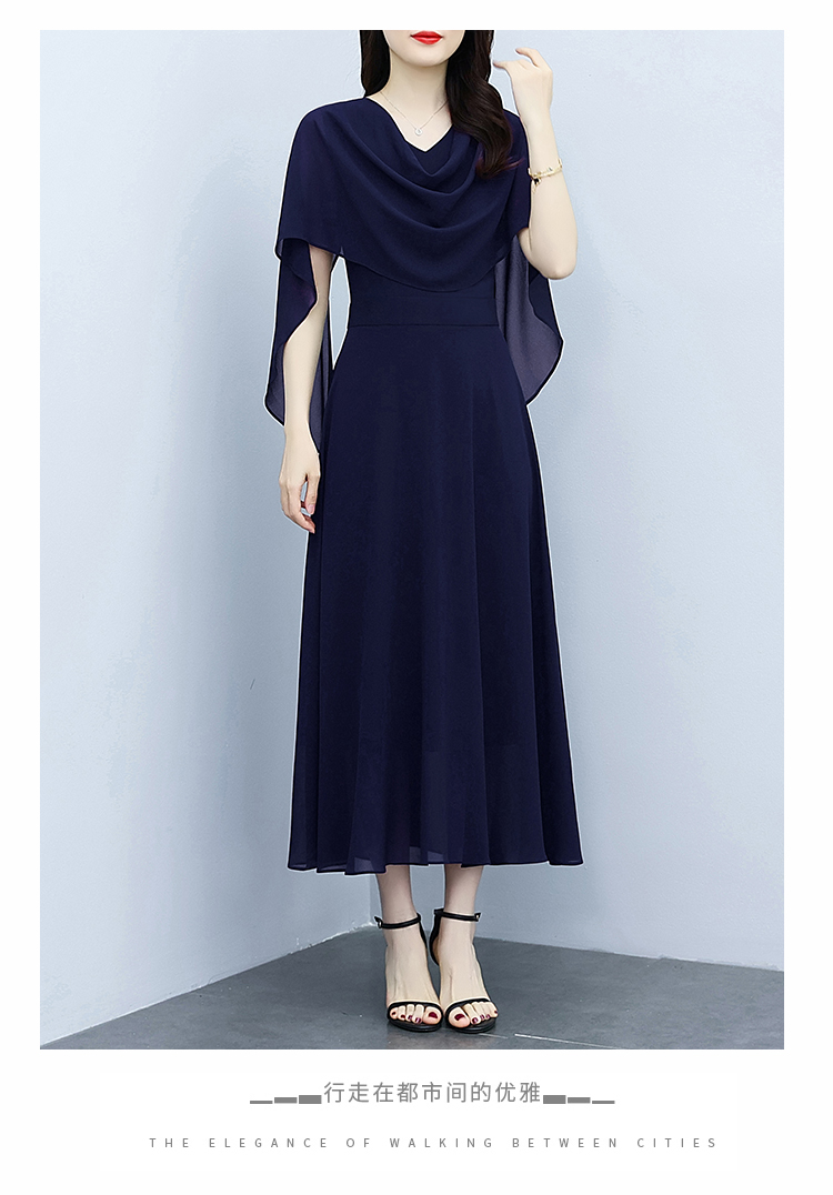 RY3594# 藏蓝色气质显白连衣裙2026年春夏新收腰显瘦设计感假两件长裙