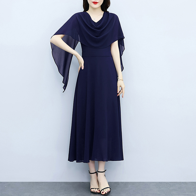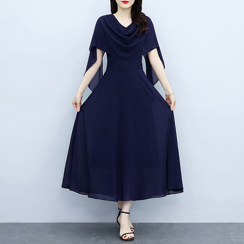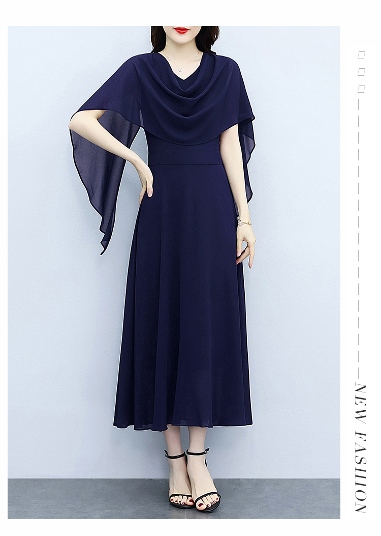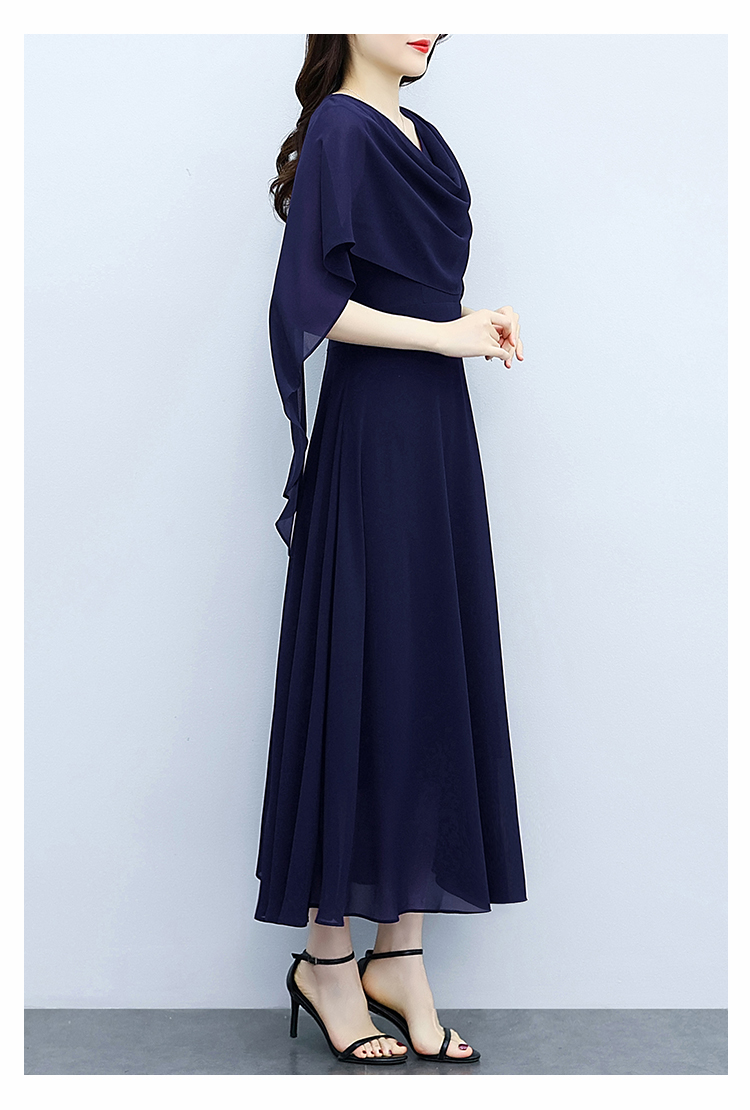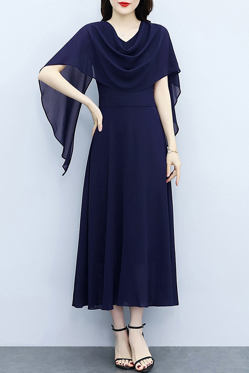 RY3594# 藏蓝色气质显白连衣裙2026年春夏新收腰显瘦设计感假两件长裙