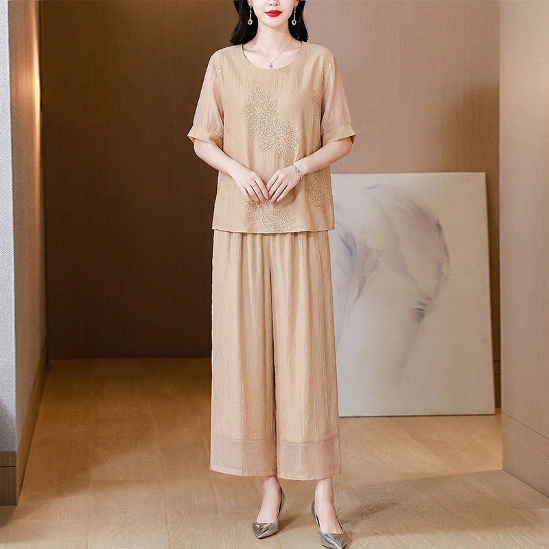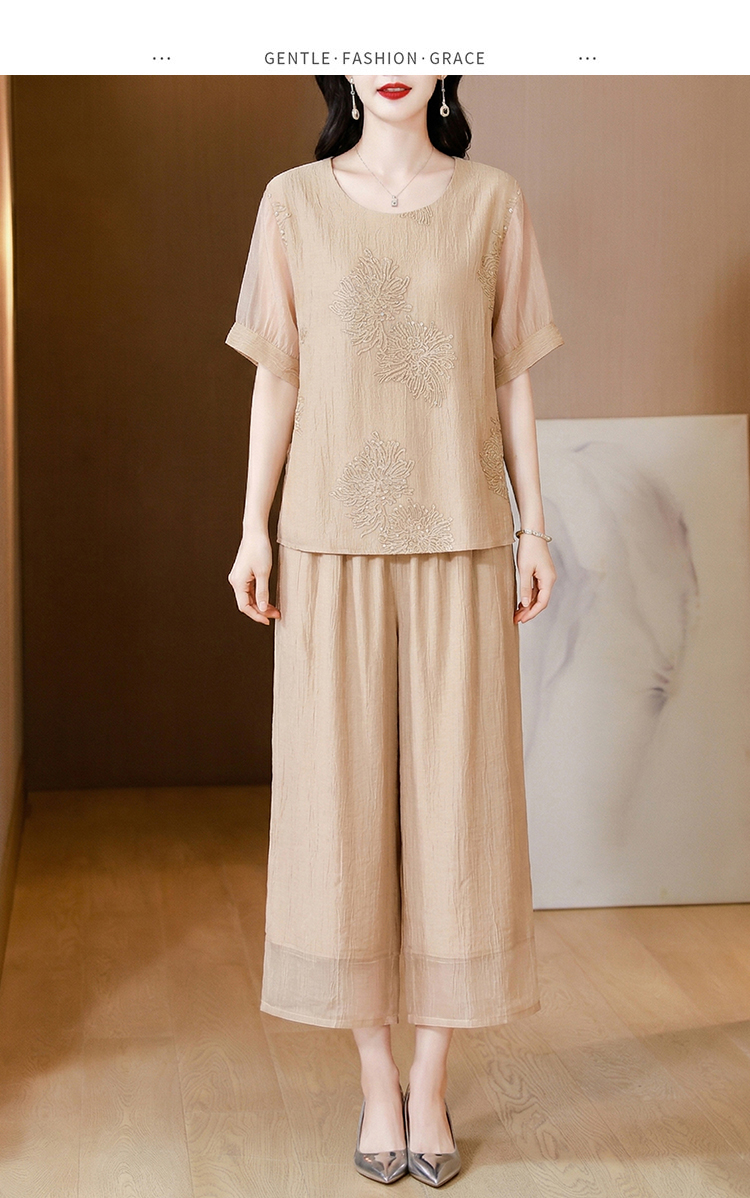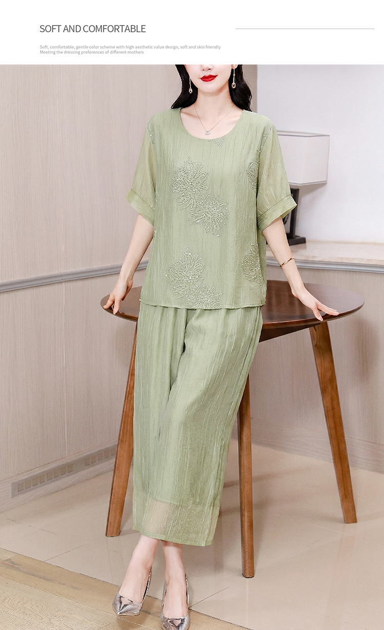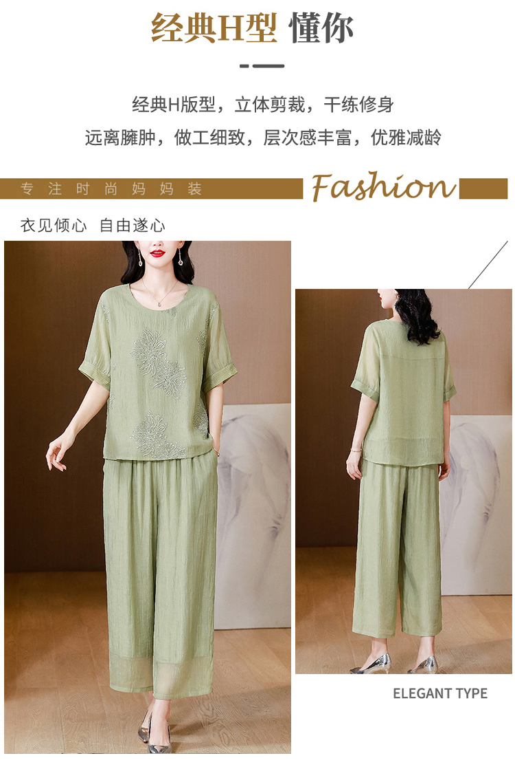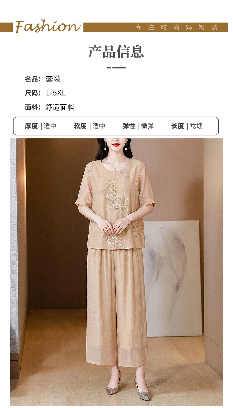 RY3617# 中老年妈妈高端刺绣苎麻套装女夏季2026新款女装轻薄短袖两件套
