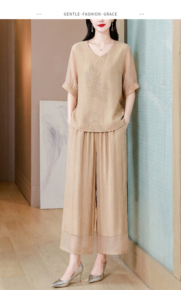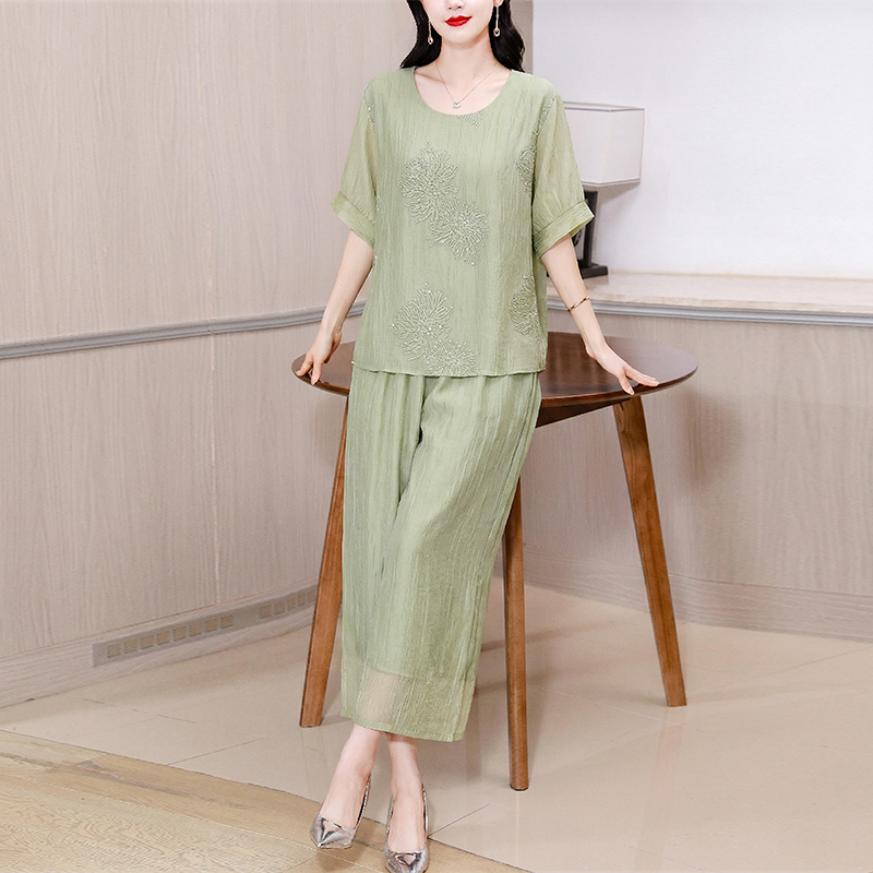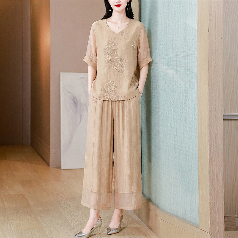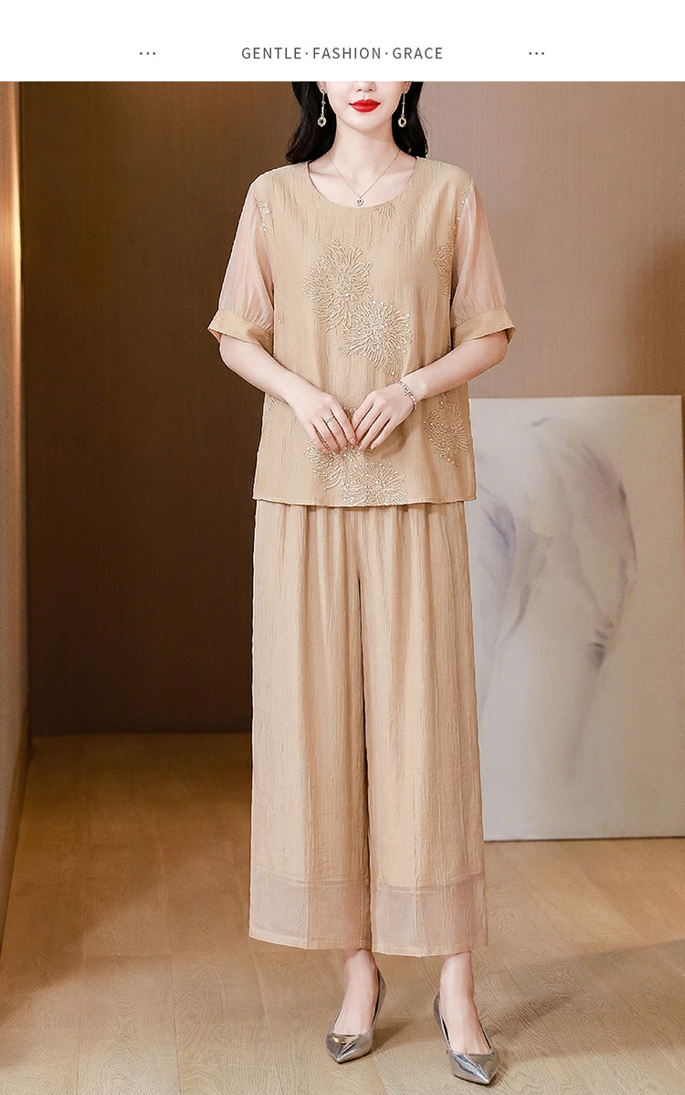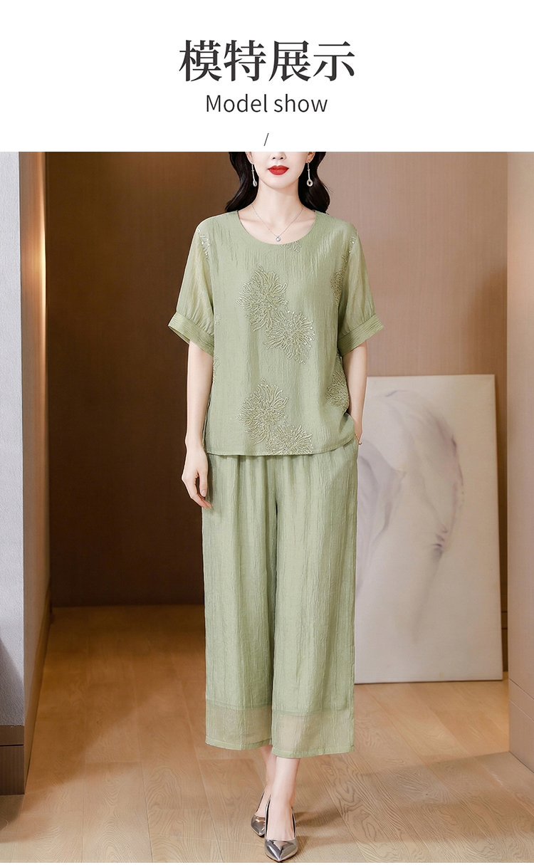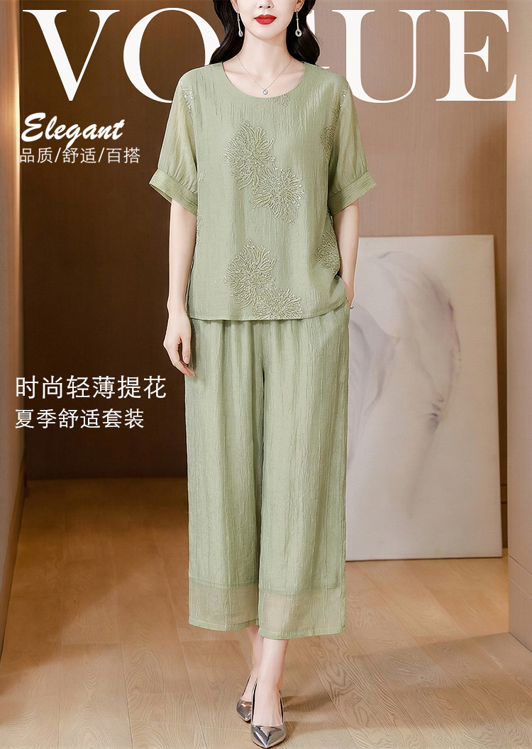 RY3617# 中老年妈妈高端刺绣苎麻套装女夏季2026新款女装轻薄短袖两件套