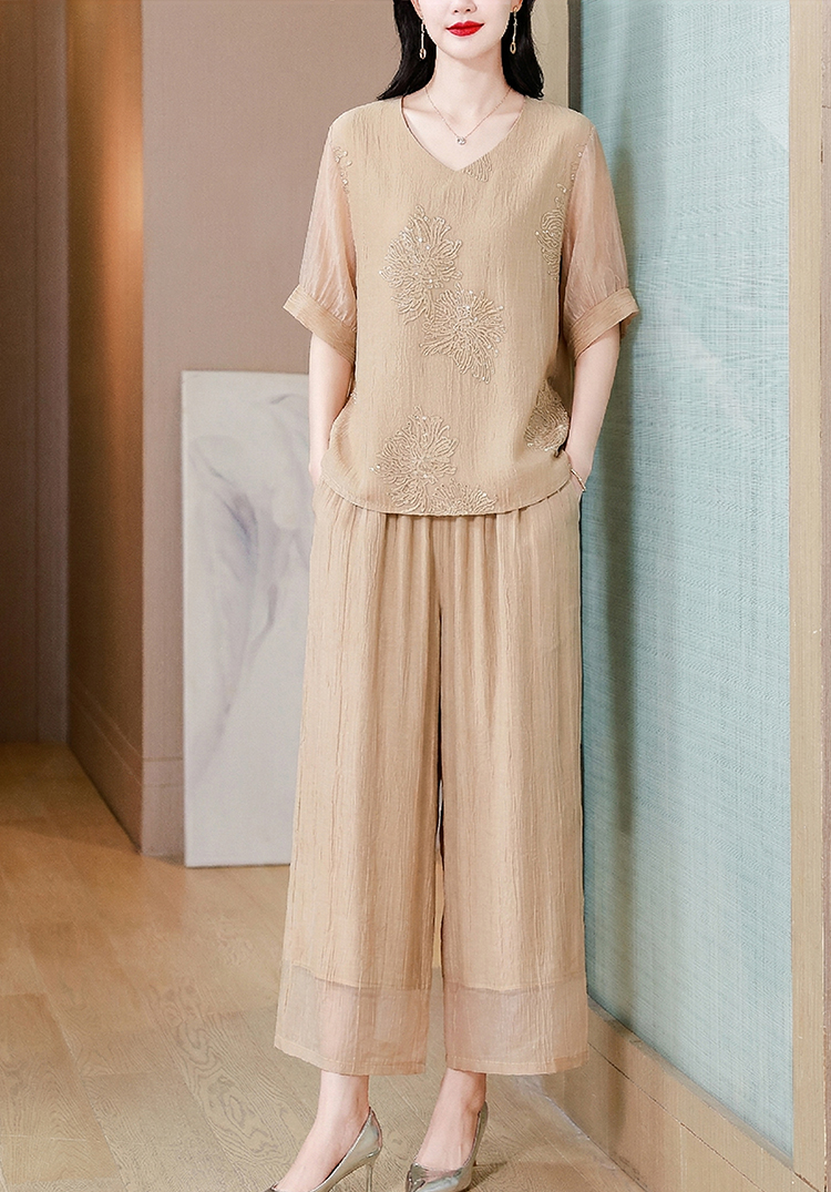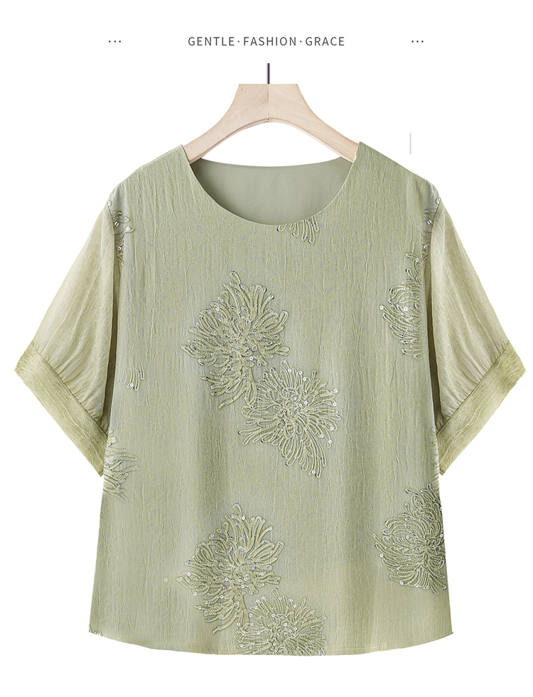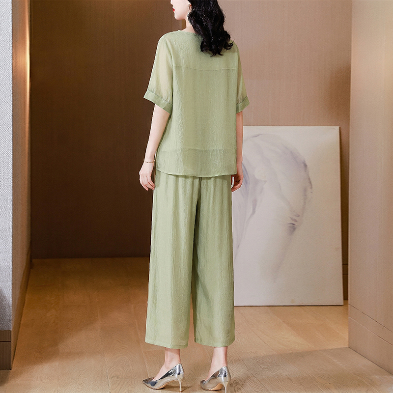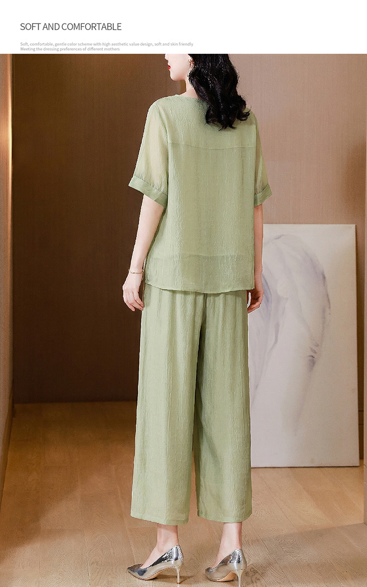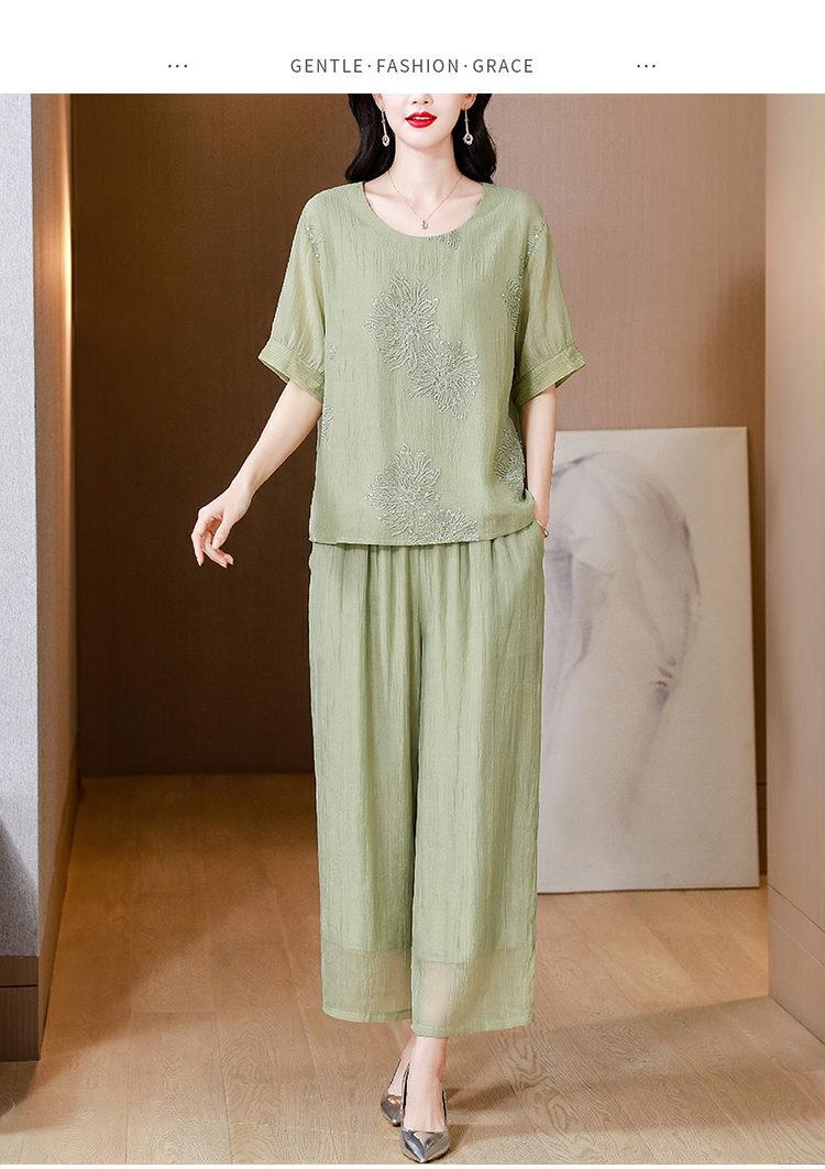 RY3617# 中老年妈妈高端刺绣苎麻套装女夏季2026新款女装轻薄短袖两件套