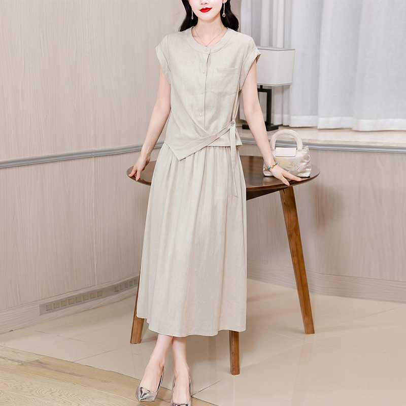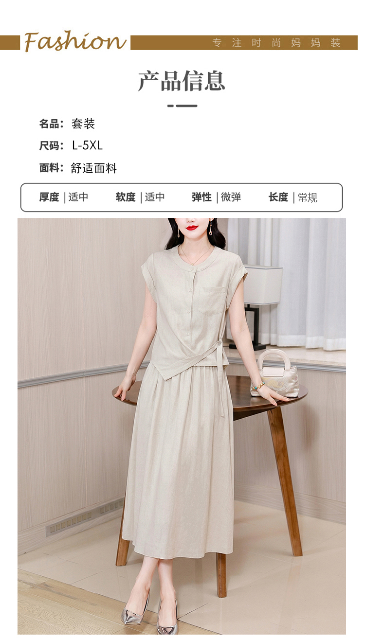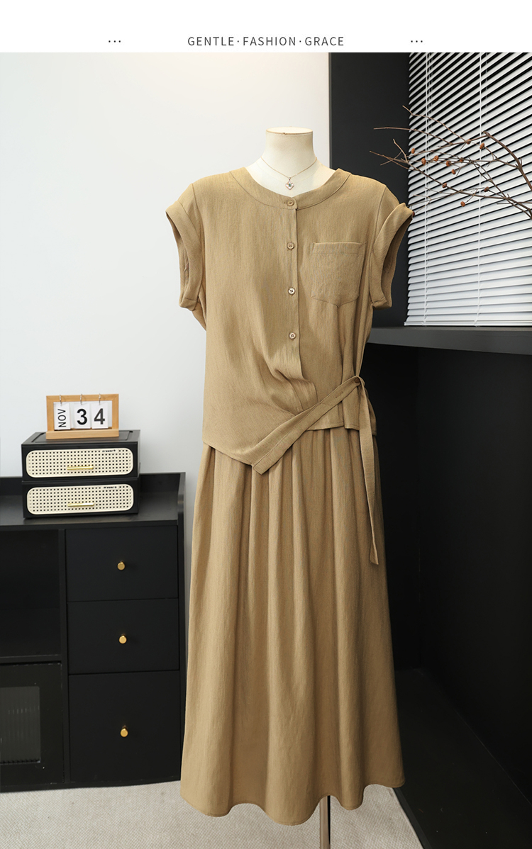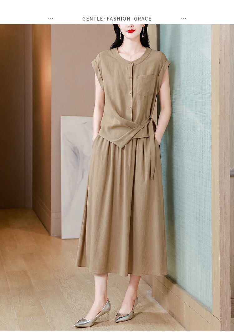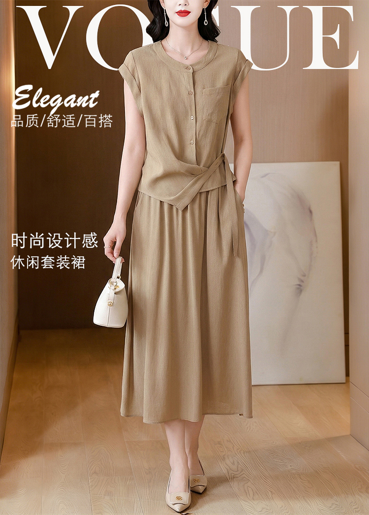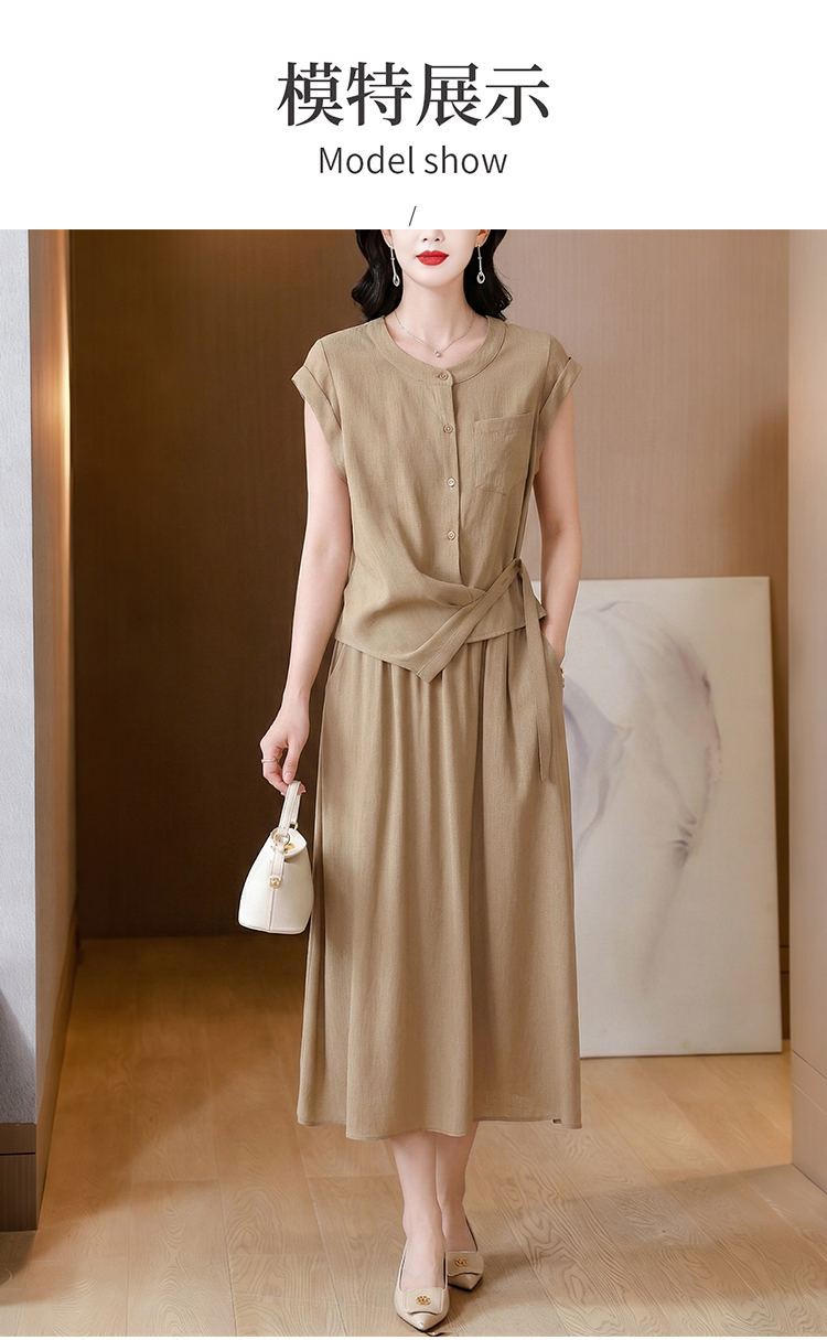 RY3619# 莱赛尔亚麻轻盈衬衫套装裙女2026夏新款半身裙气质休闲两件套