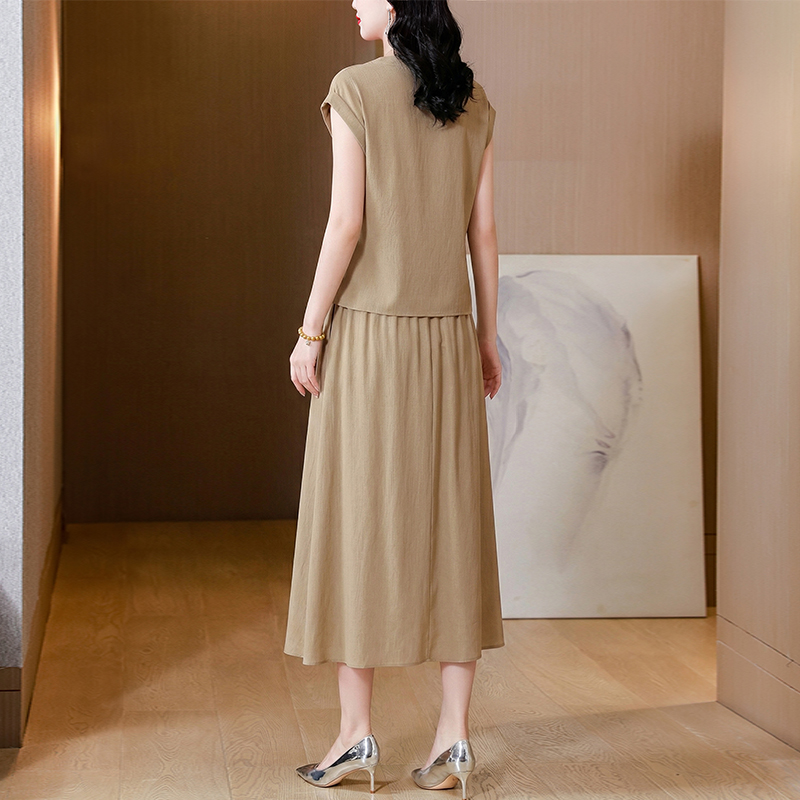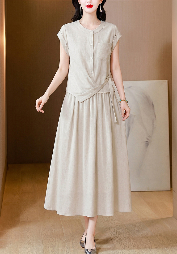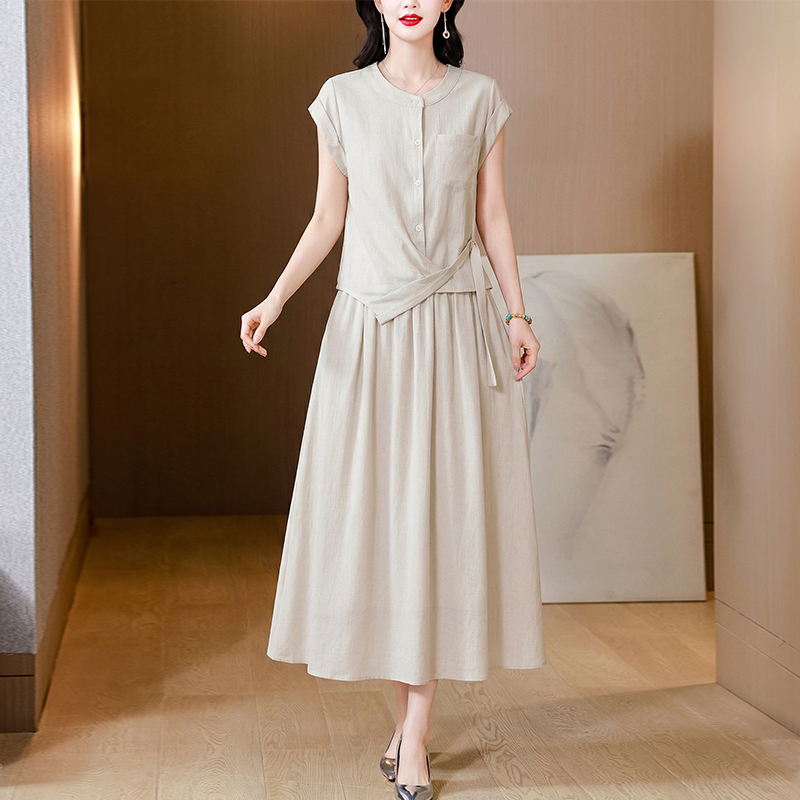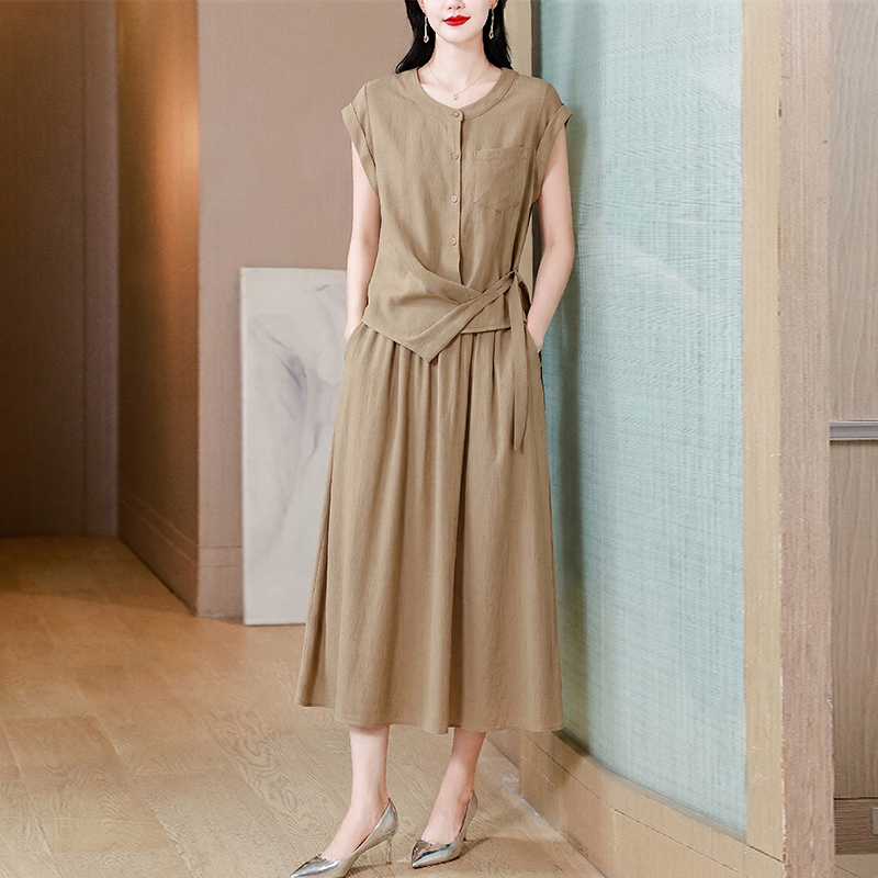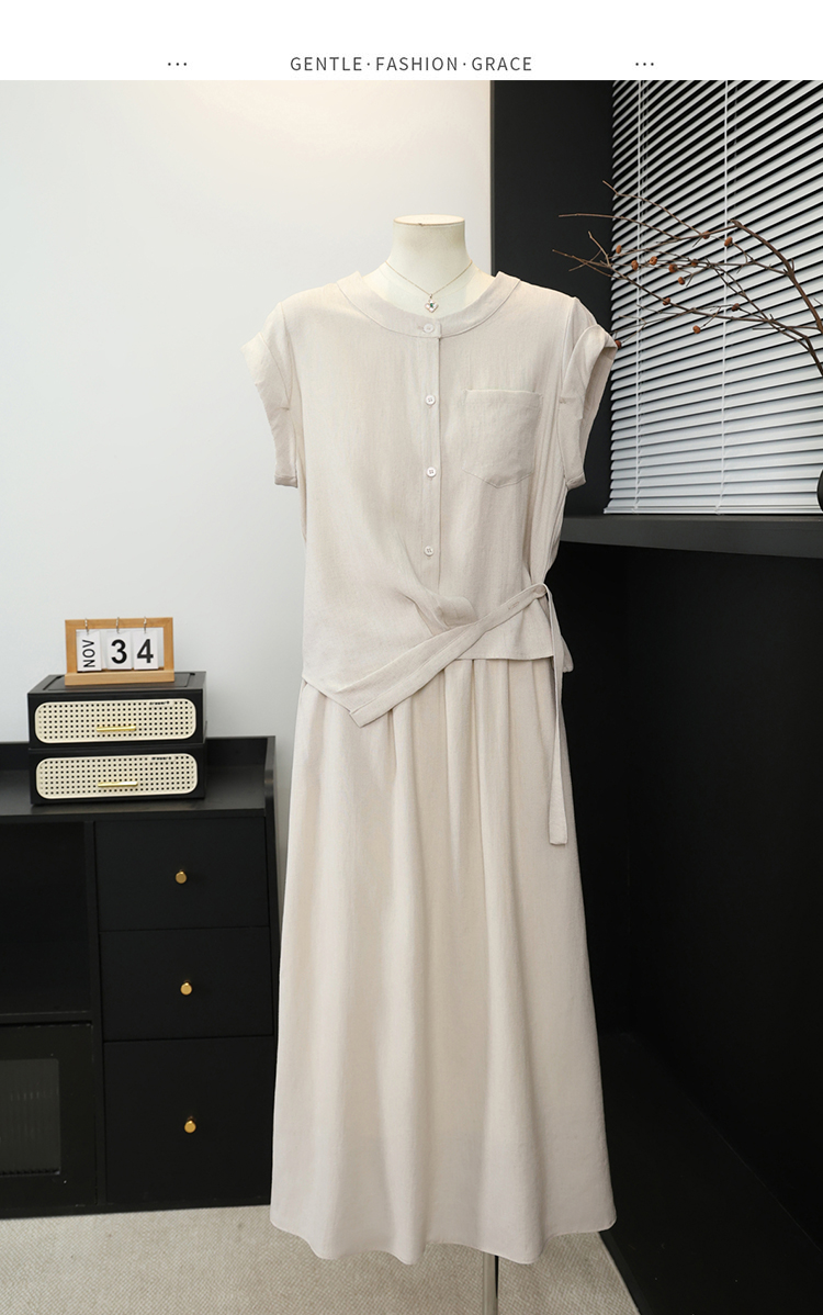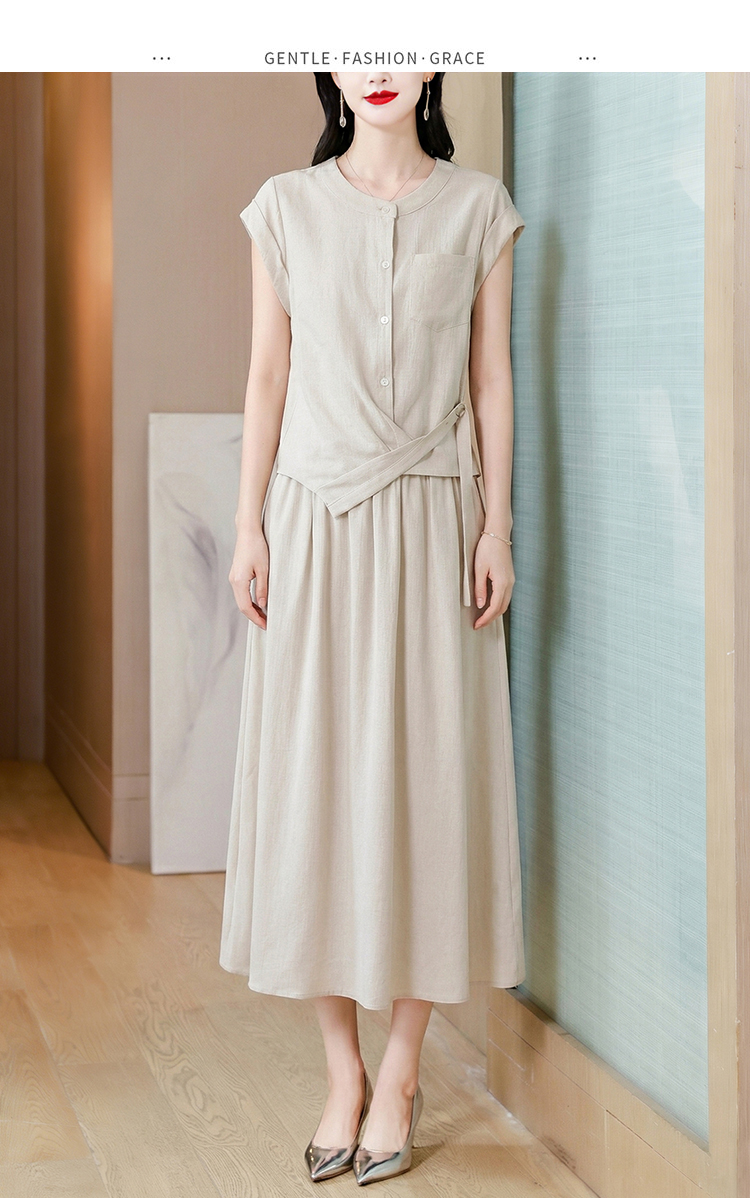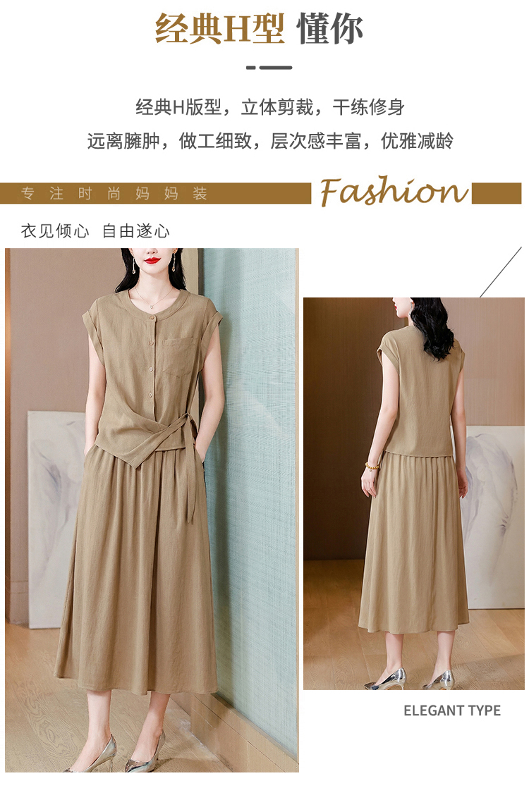 RY3619# 莱赛尔亚麻轻盈衬衫套装裙女2026夏新款半身裙气质休闲两件套