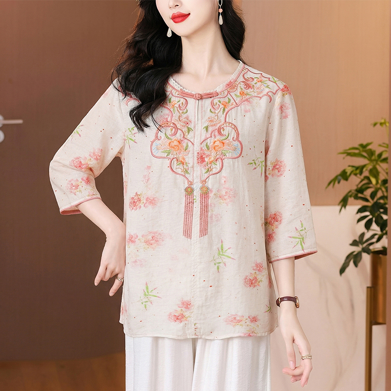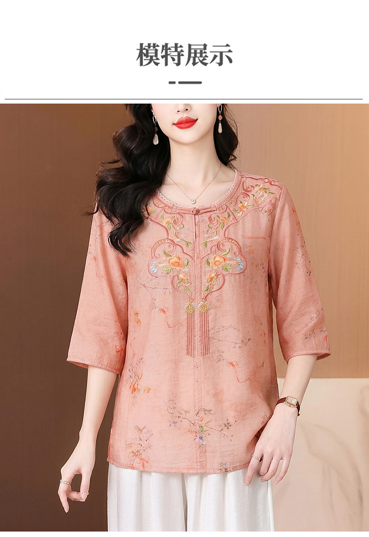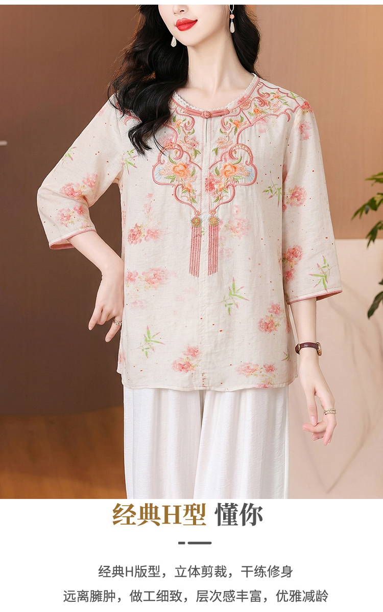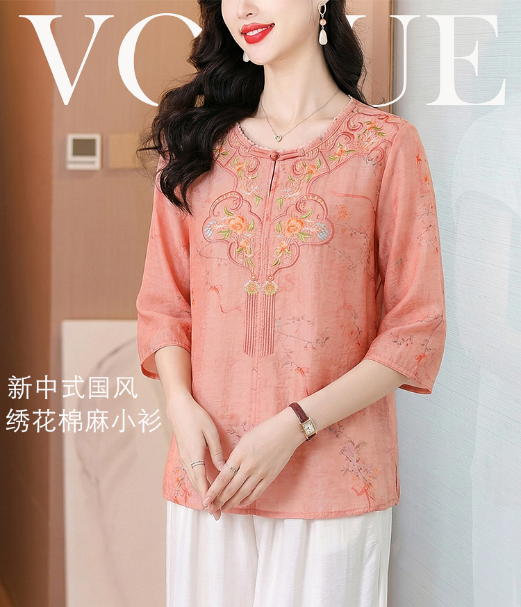 RY3626# 有货 2026夏季新中式国风绣花上衣休闲棉麻民族风刺绣短袖...