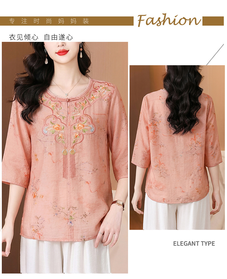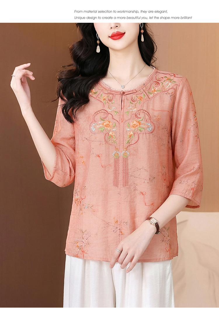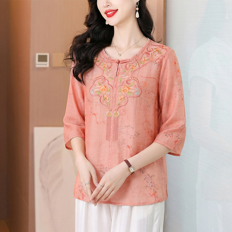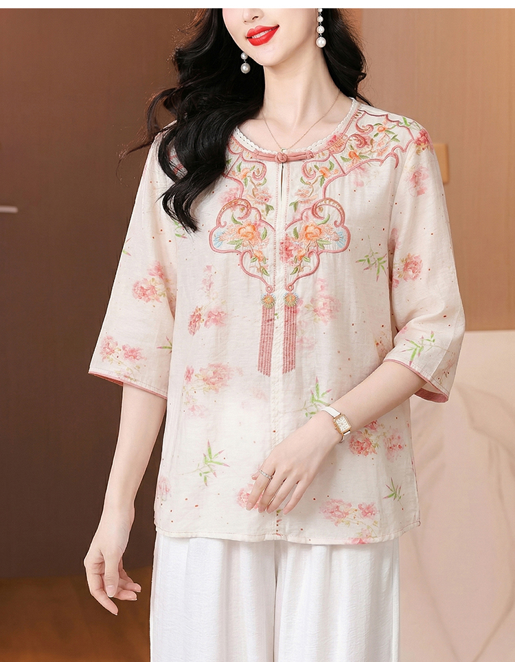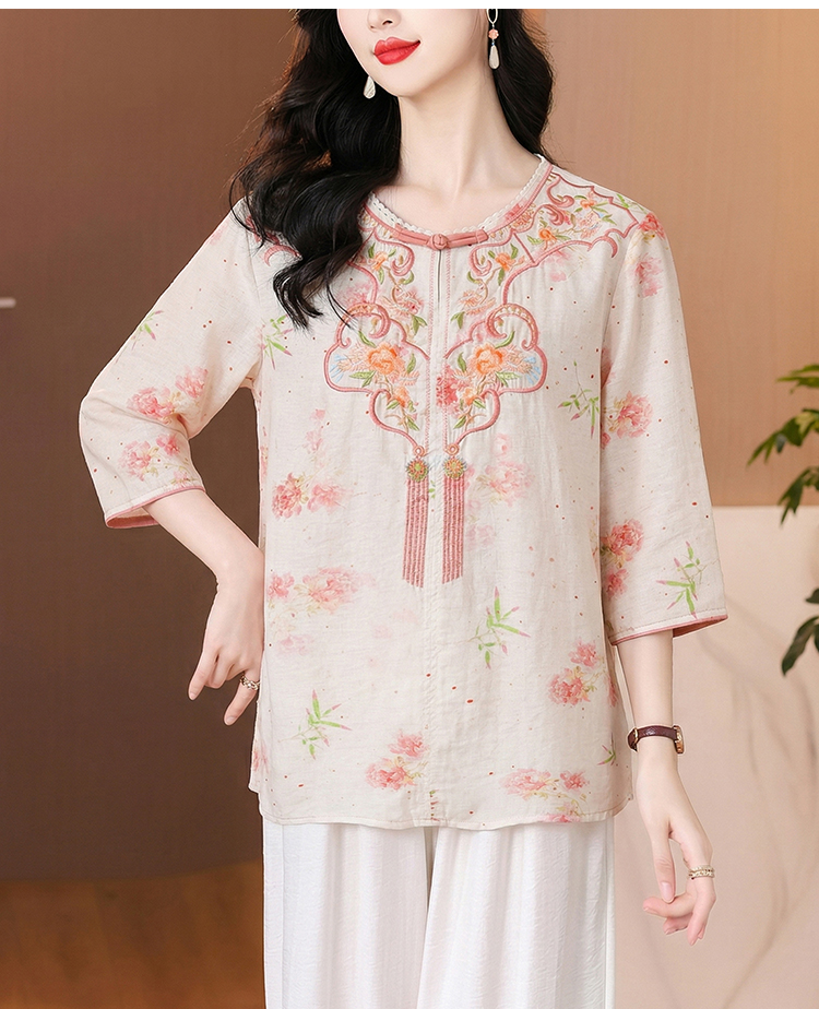 RY3626# 有货 2026夏季新中式国风绣花上衣休闲棉麻民族风刺绣短袖...