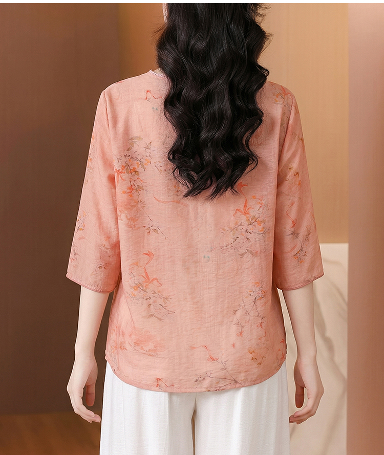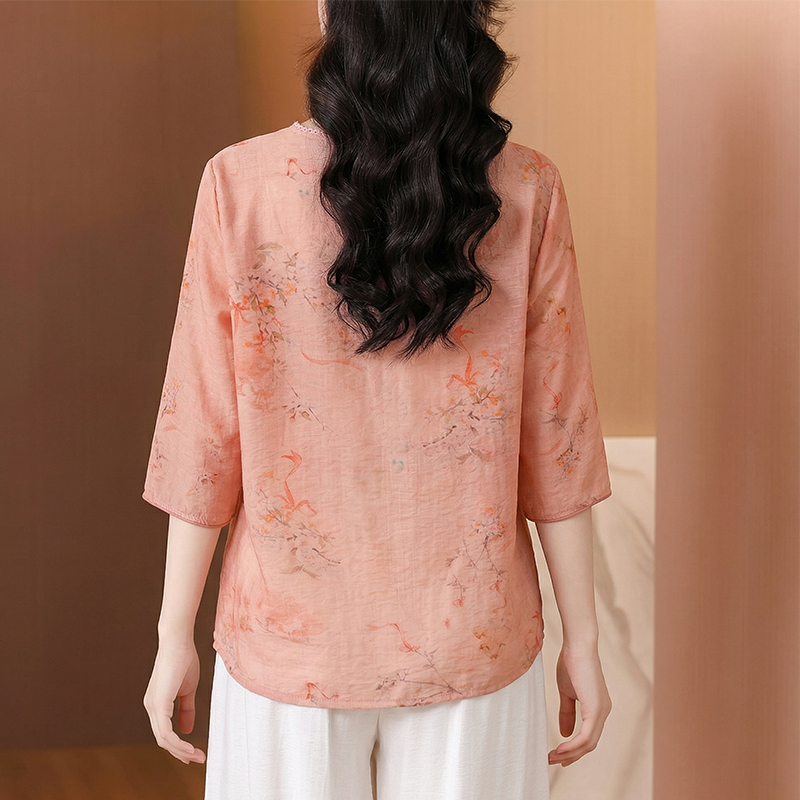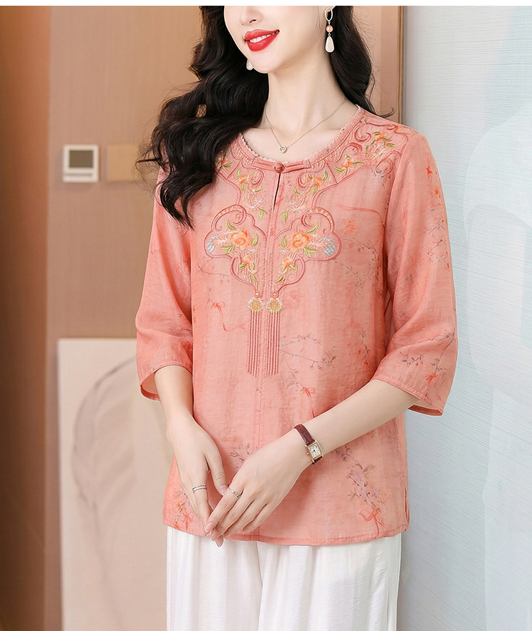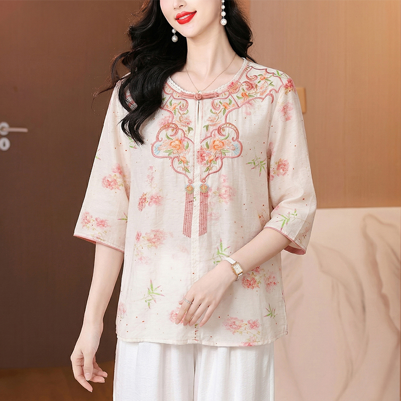 RY3623# 2026夏季新款新中式国风绣花上衣复古盘扣棉麻花色刺绣短袖小衫女