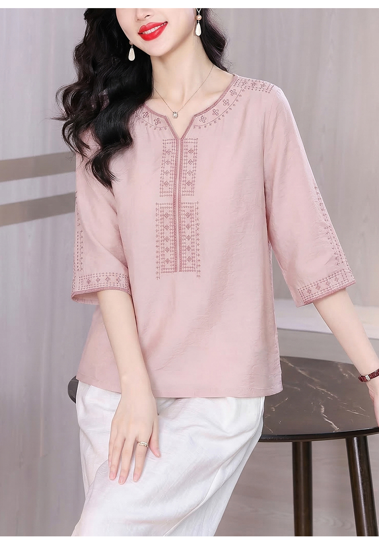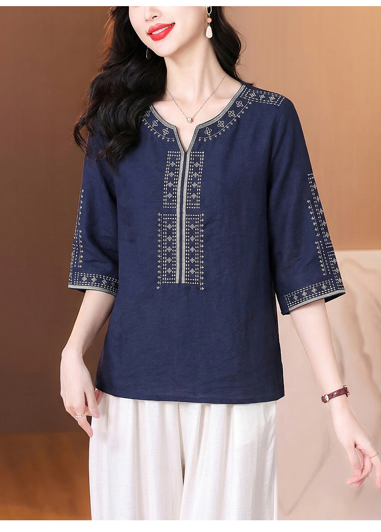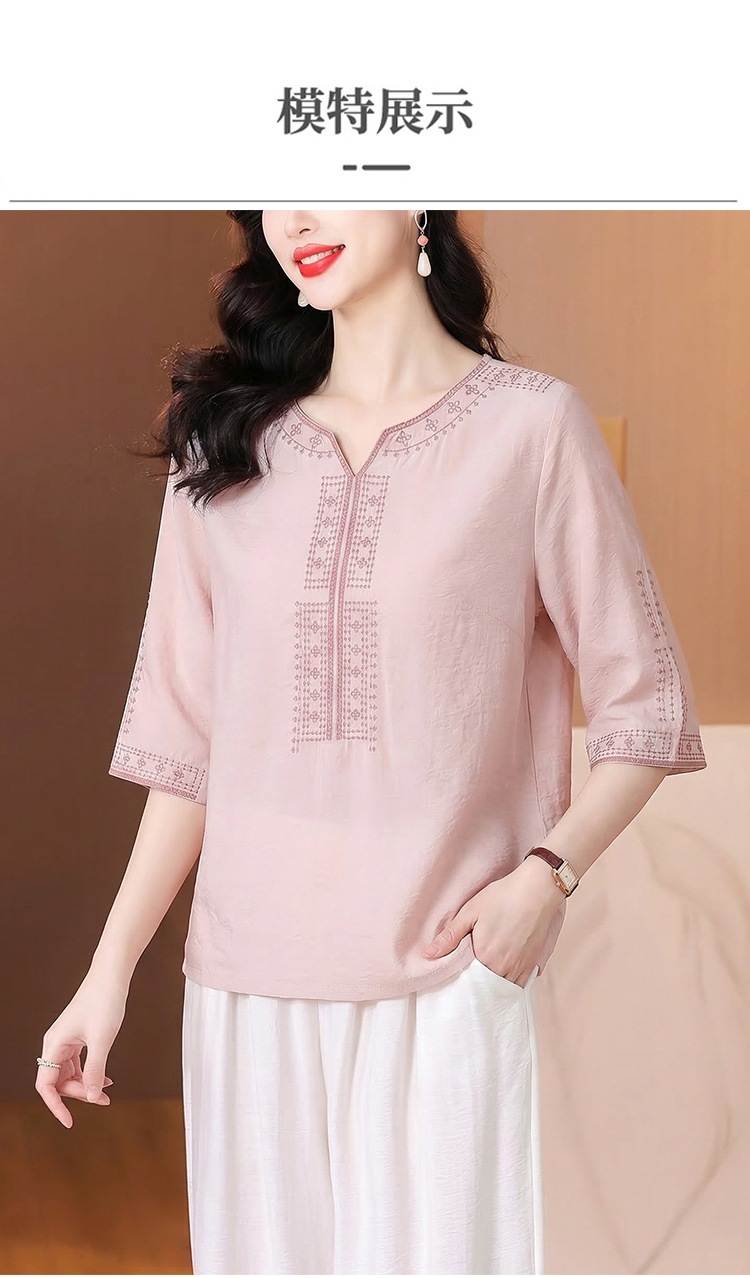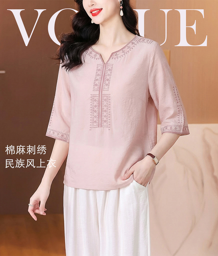 RY3626# 有货 2026夏季新中式国风绣花上衣休闲棉麻民族风刺绣短袖T恤小衫