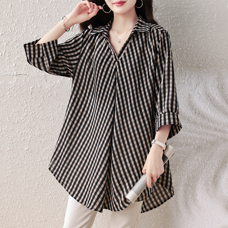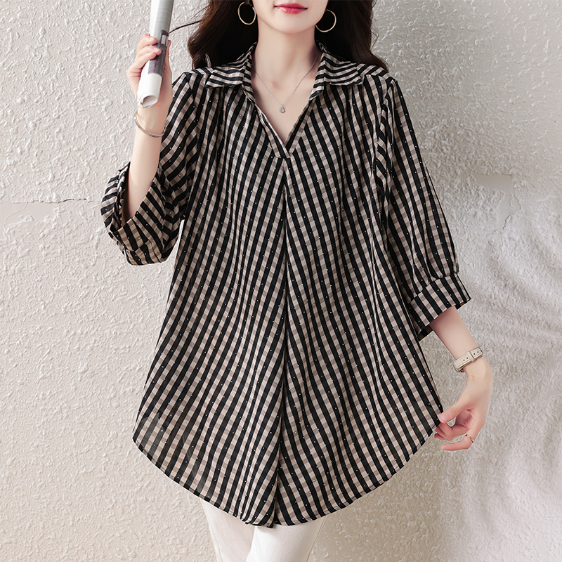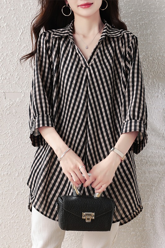 RY3633# 实拍2026夏装新款时尚气质洋气百搭显瘦大码衬衣胖妹妹减龄上衣