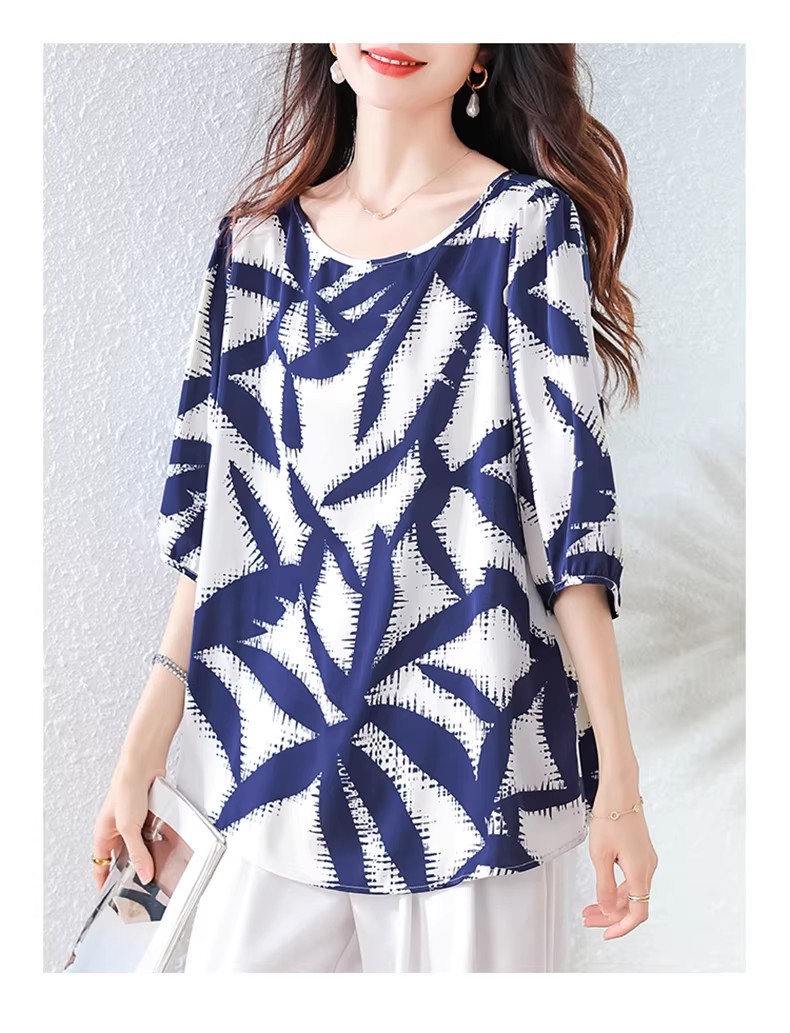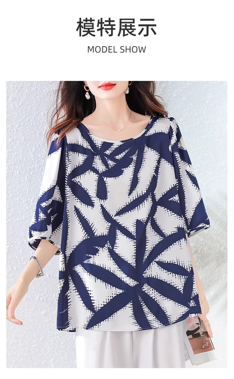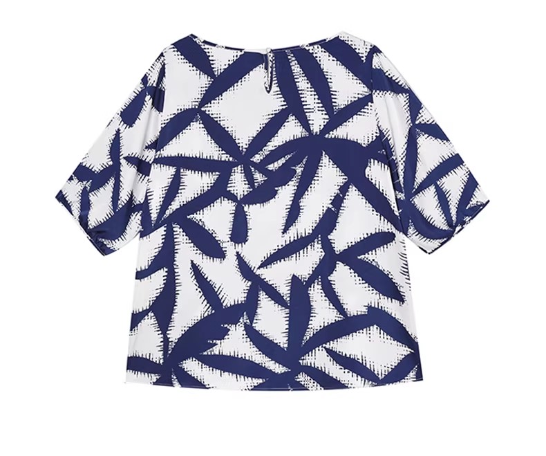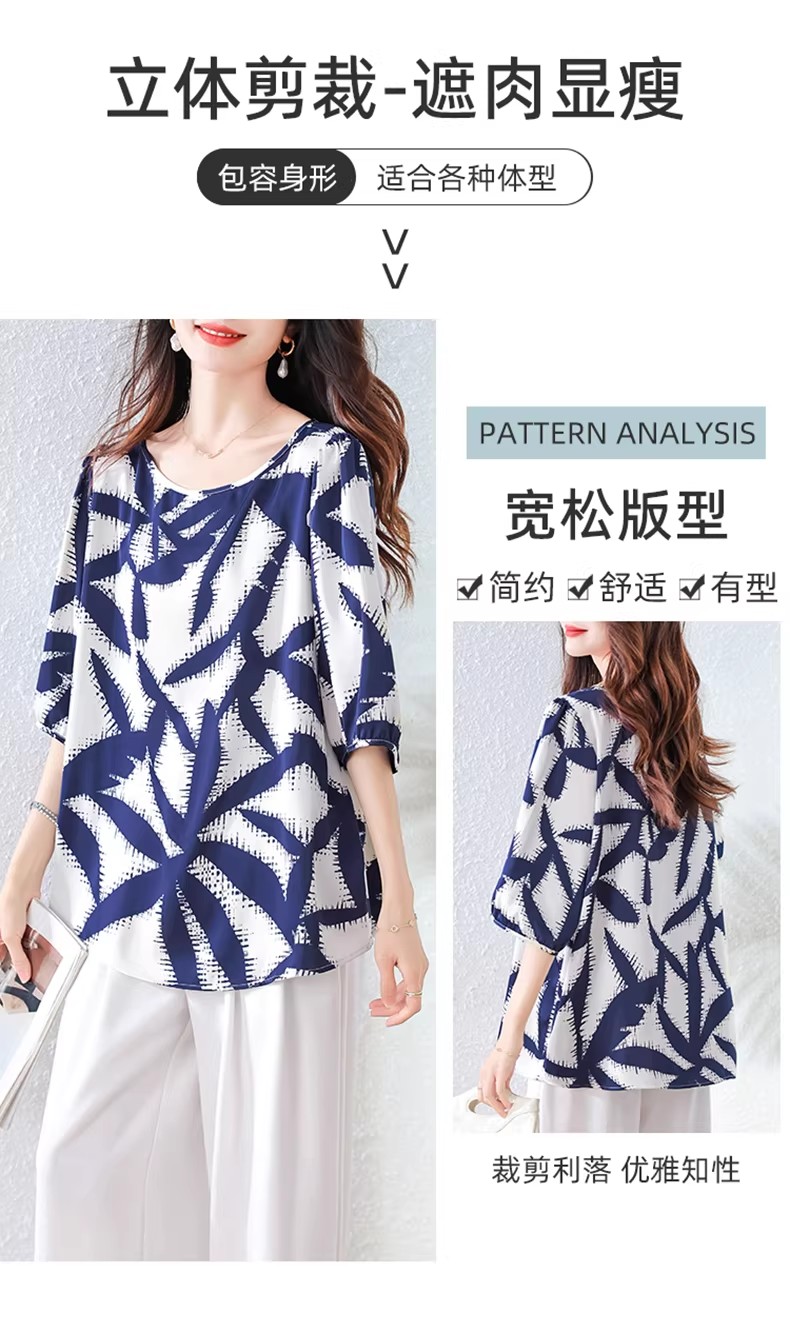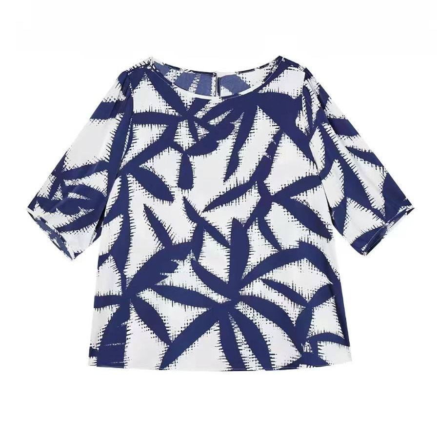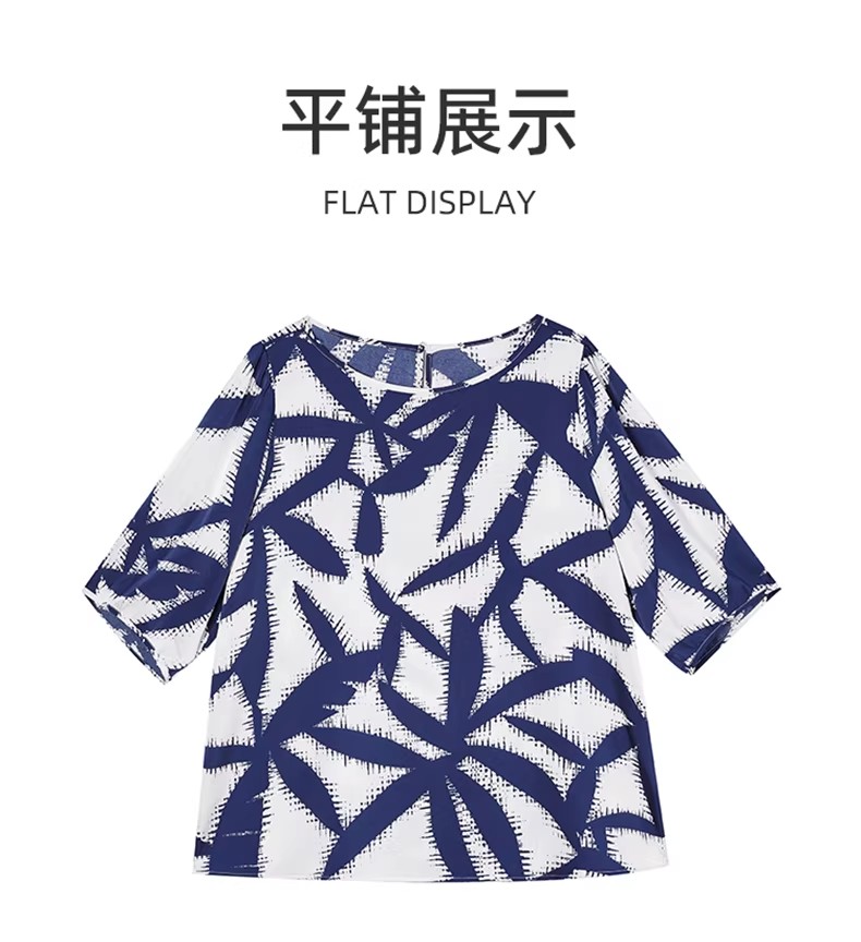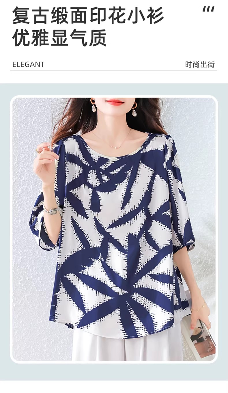 RY3652# 夏装复古印花衬衫高级感轻奢减龄洋气小衫独特短袖上衣