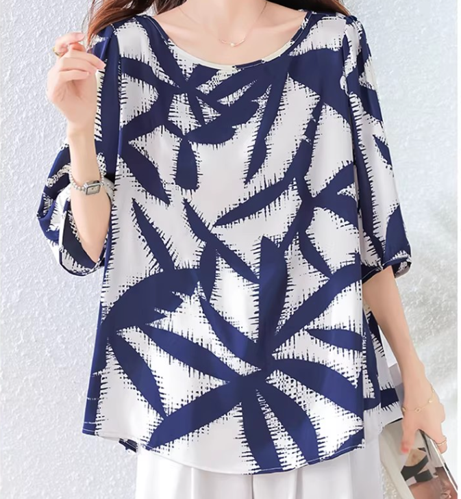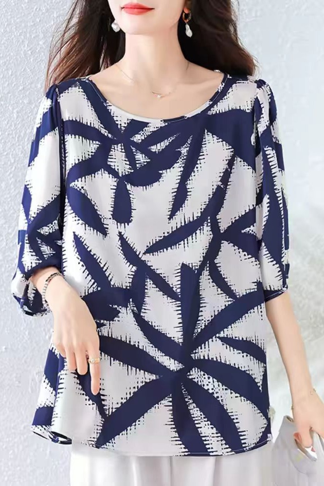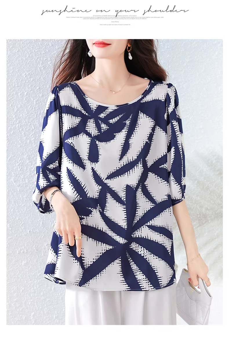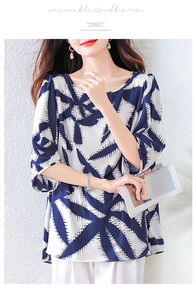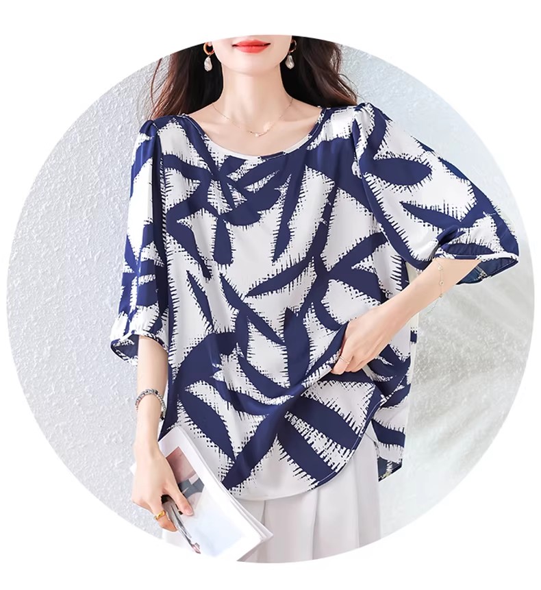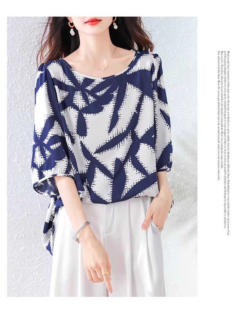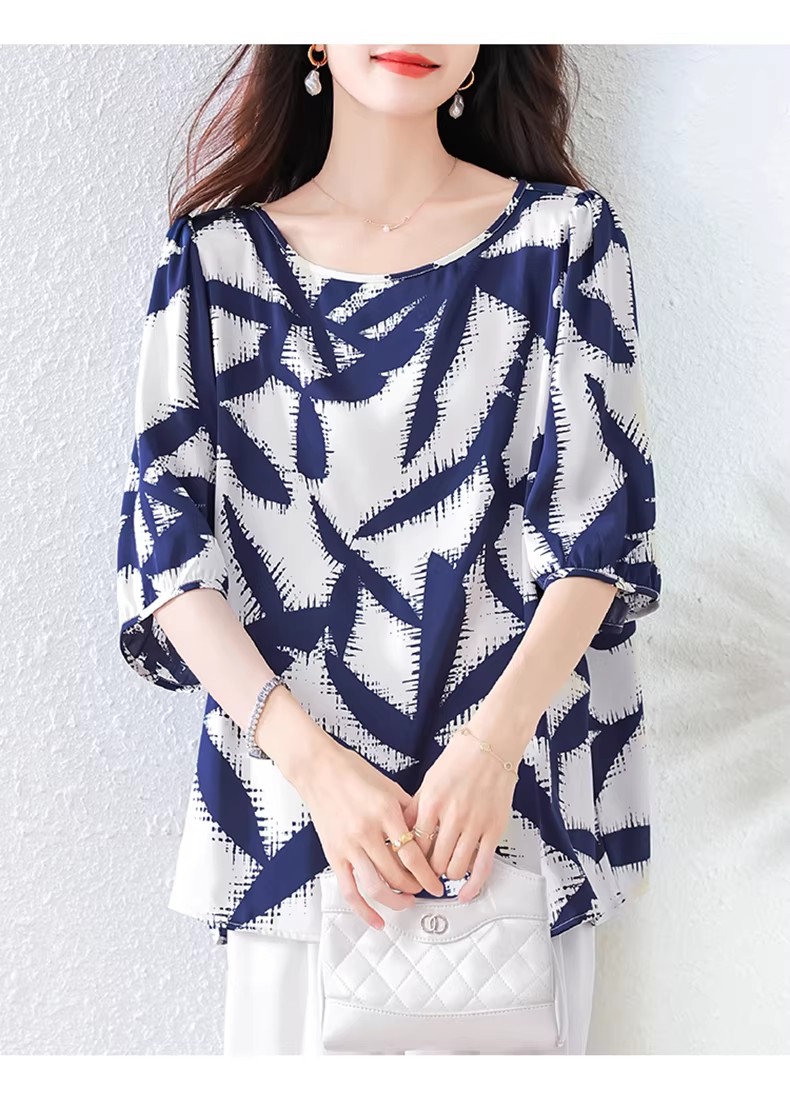 RY3652# 夏装复古印花衬衫高级感轻奢减龄洋气小衫独特短袖上衣