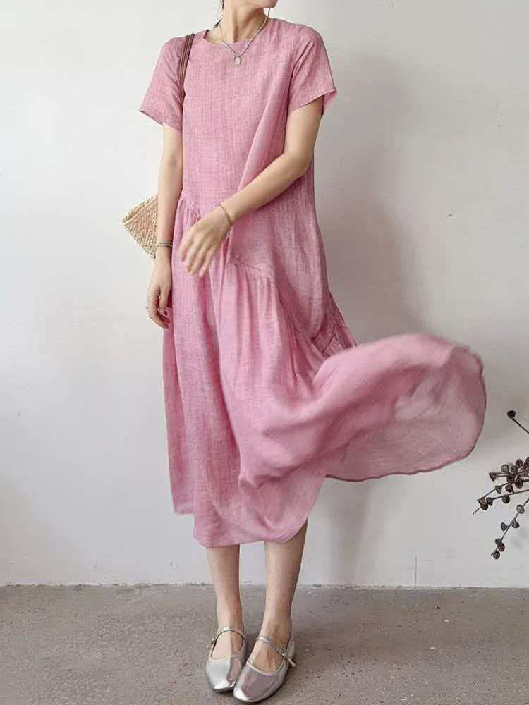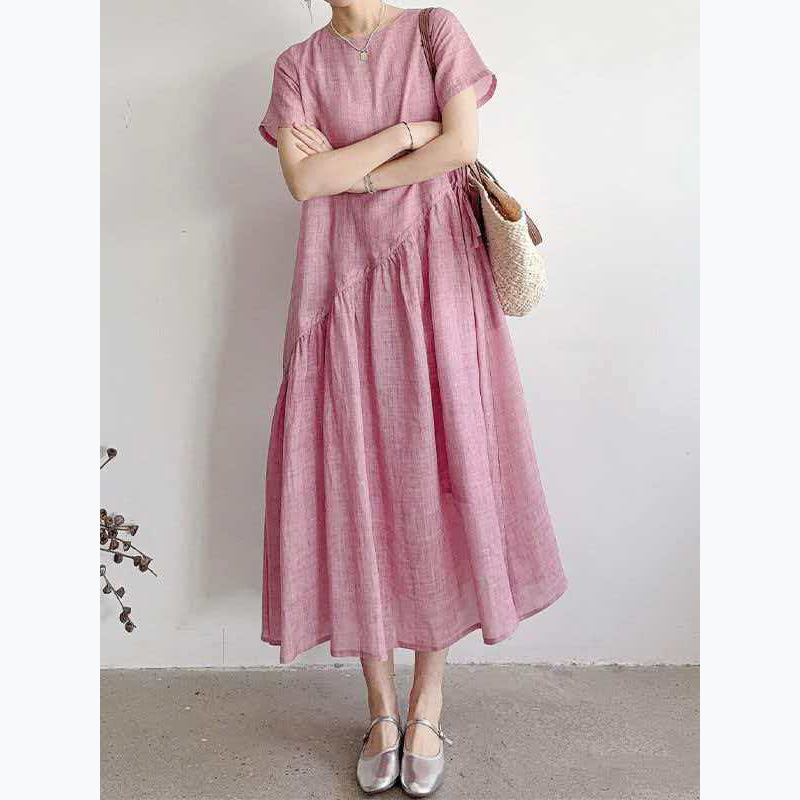 RY3655# 夏季新款棉麻连衣裙女文艺范大码宽松透气无袖纯色亚麻裙