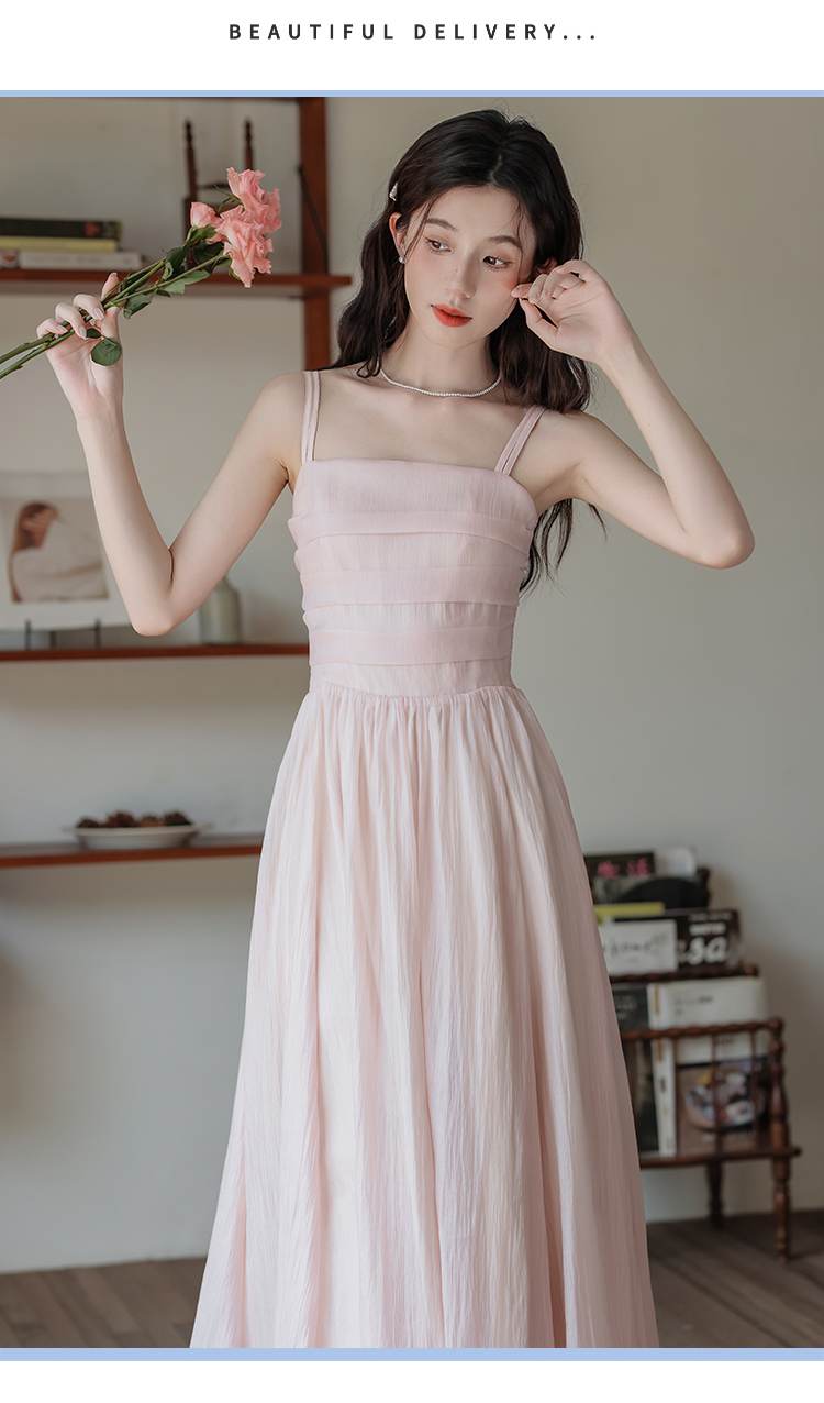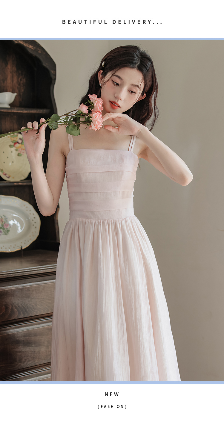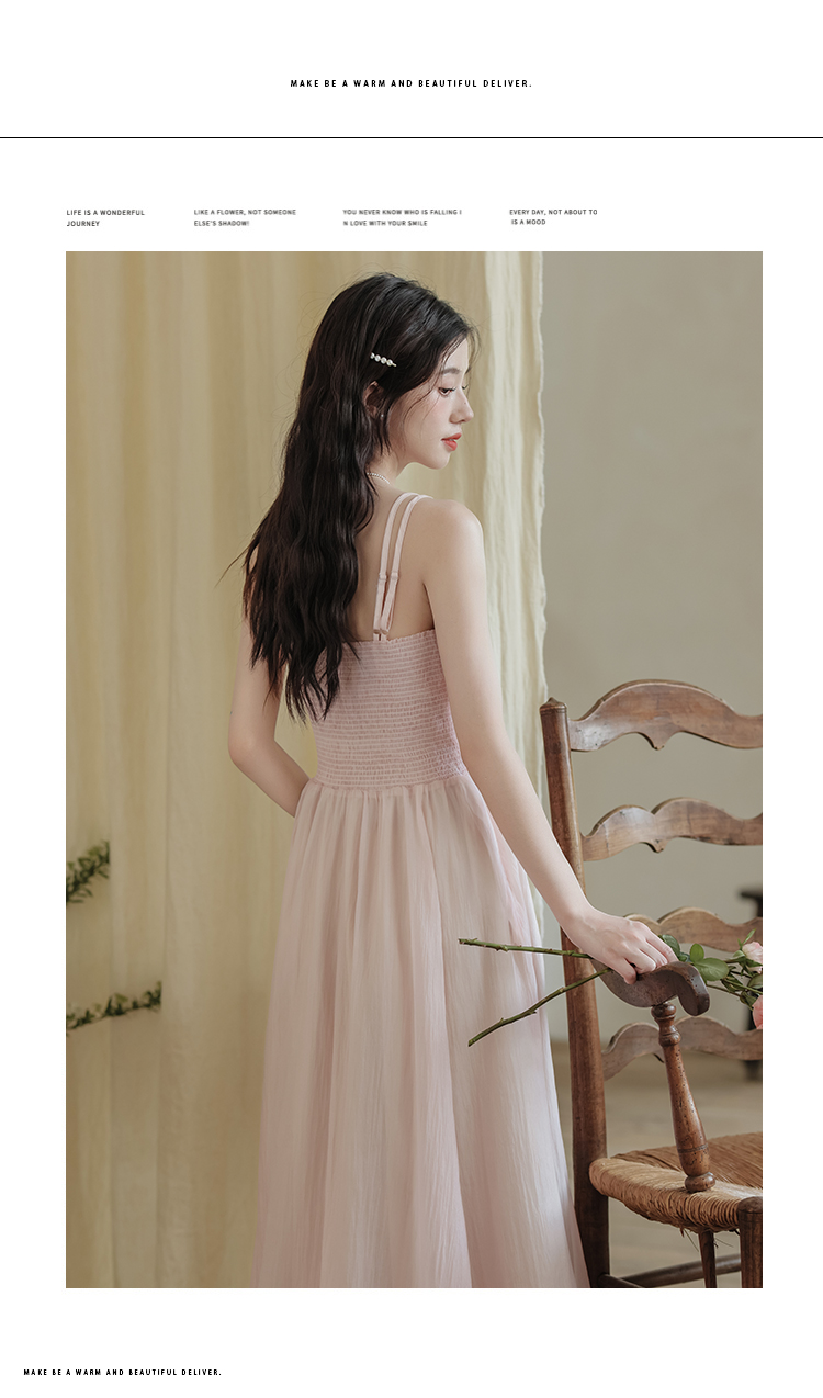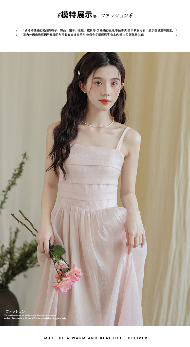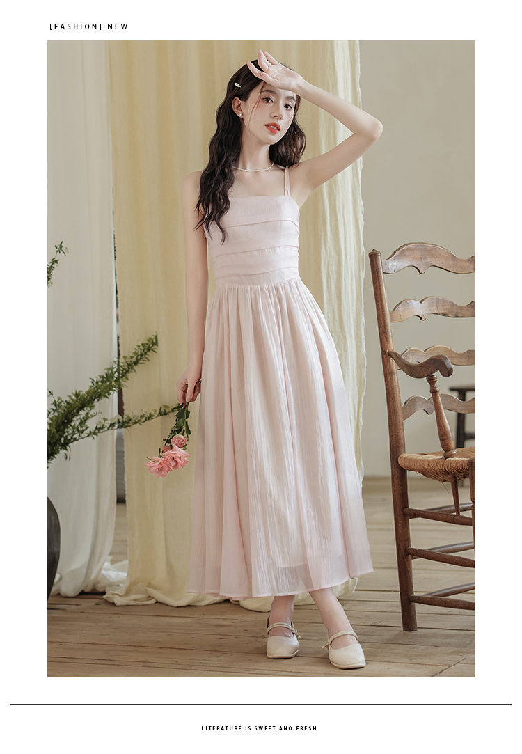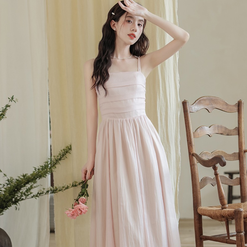 RY3669# 粉色吊带连衣裙子女夏季仙女超仙森系无袖长裙海边度假沙滩小个子