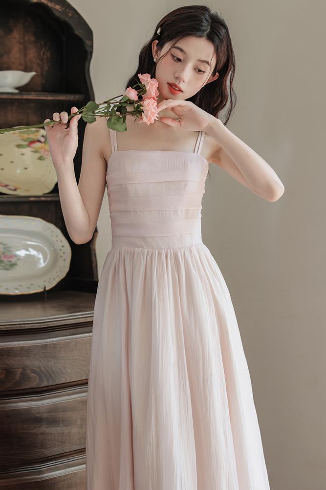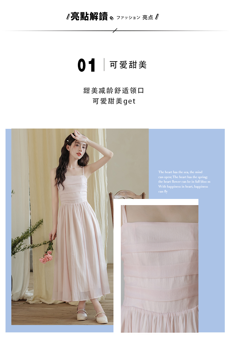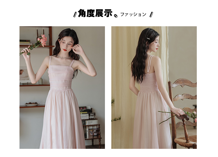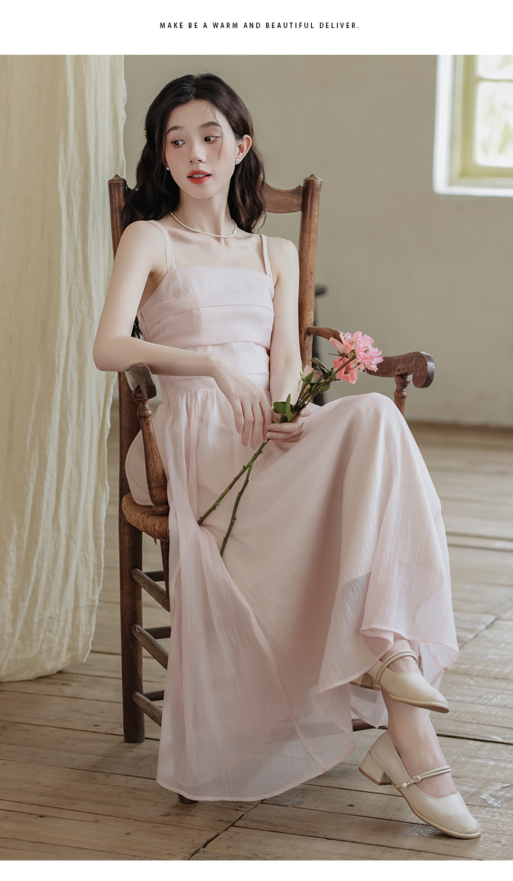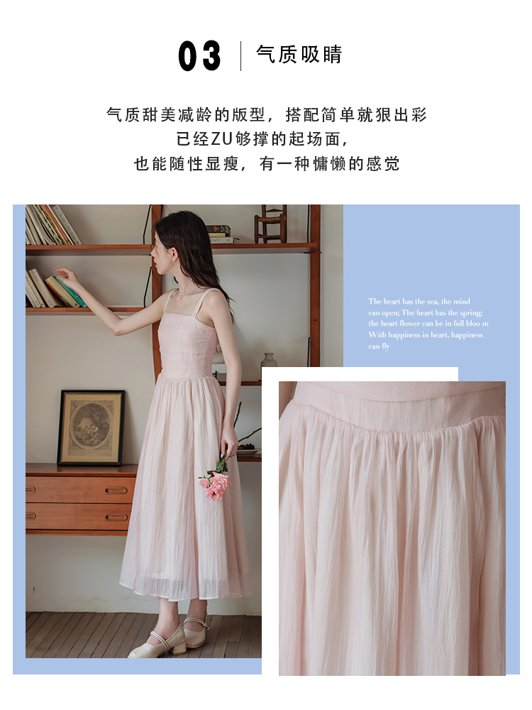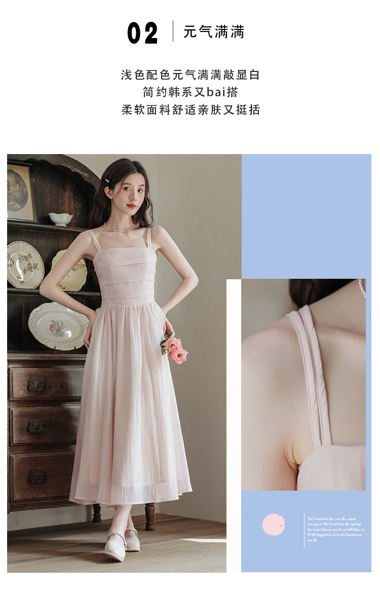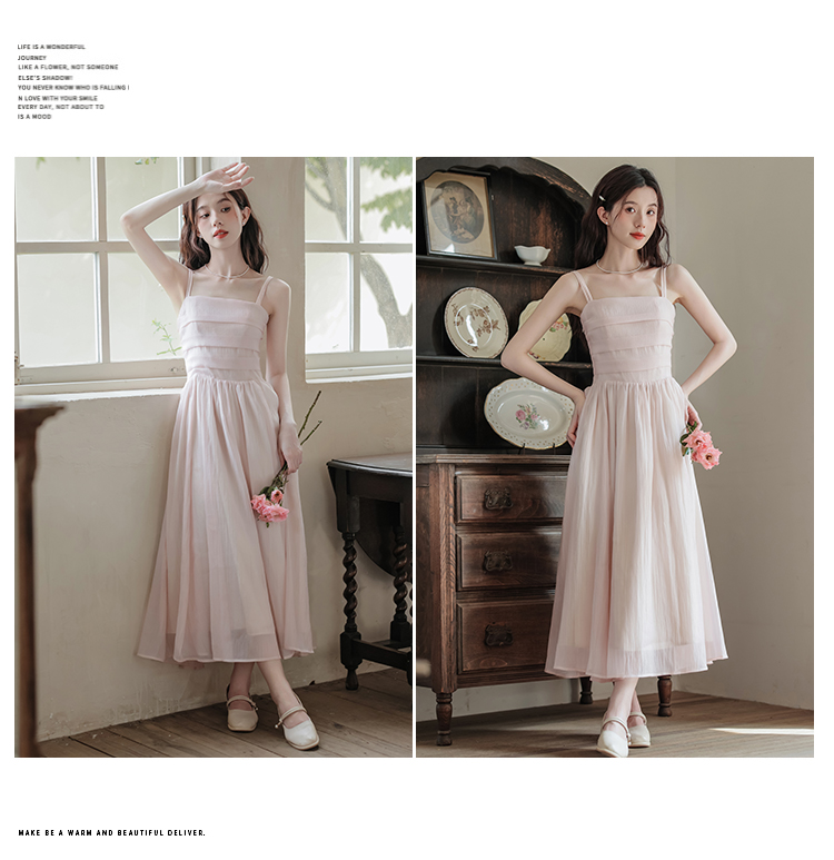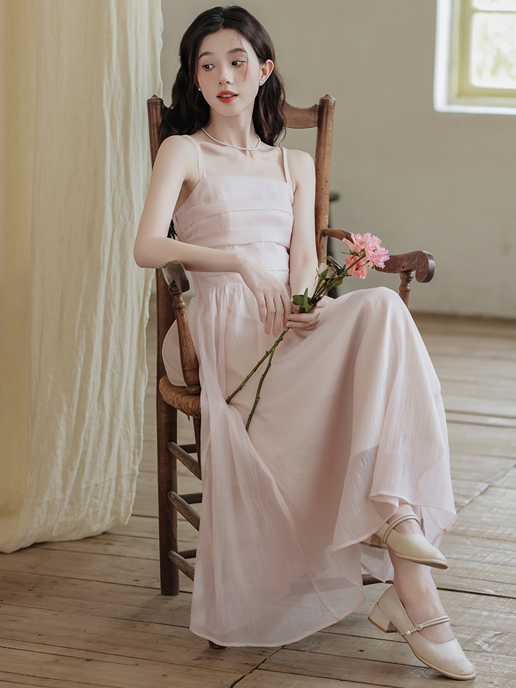 RY3669# 粉色吊带连衣裙子女夏季仙女超仙森系无袖长裙海边度假沙滩小个子