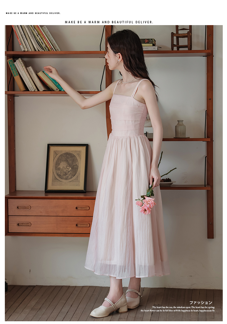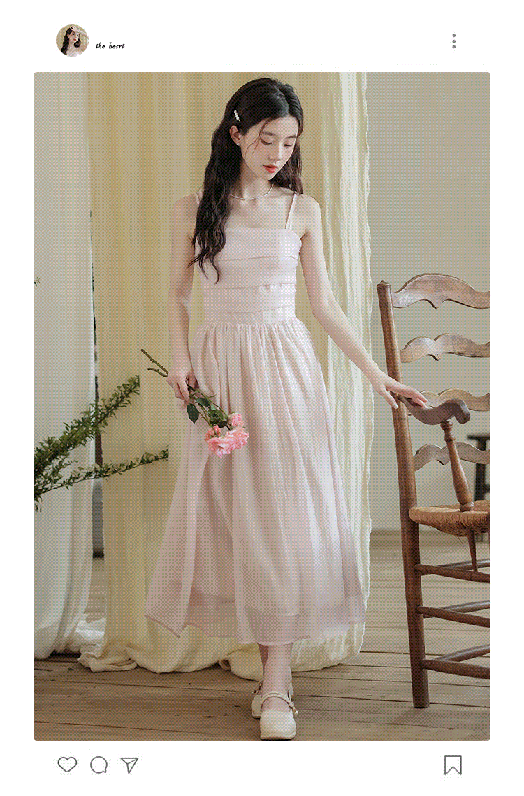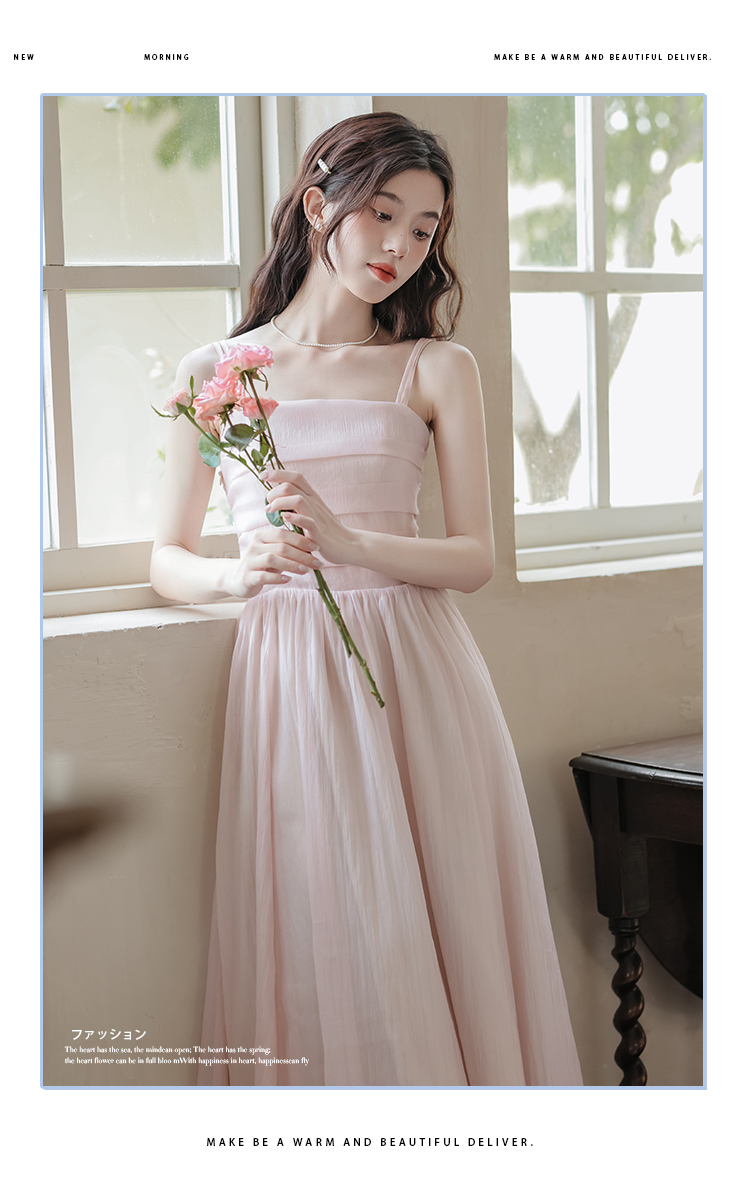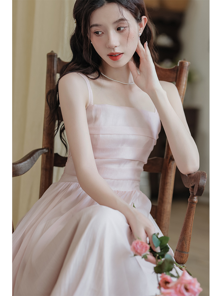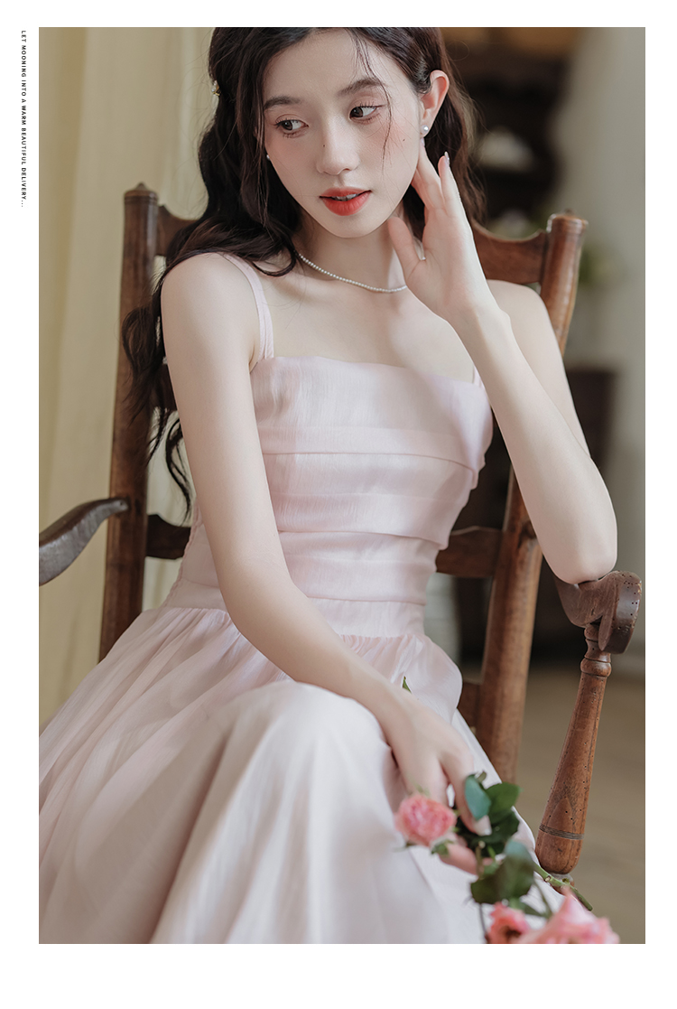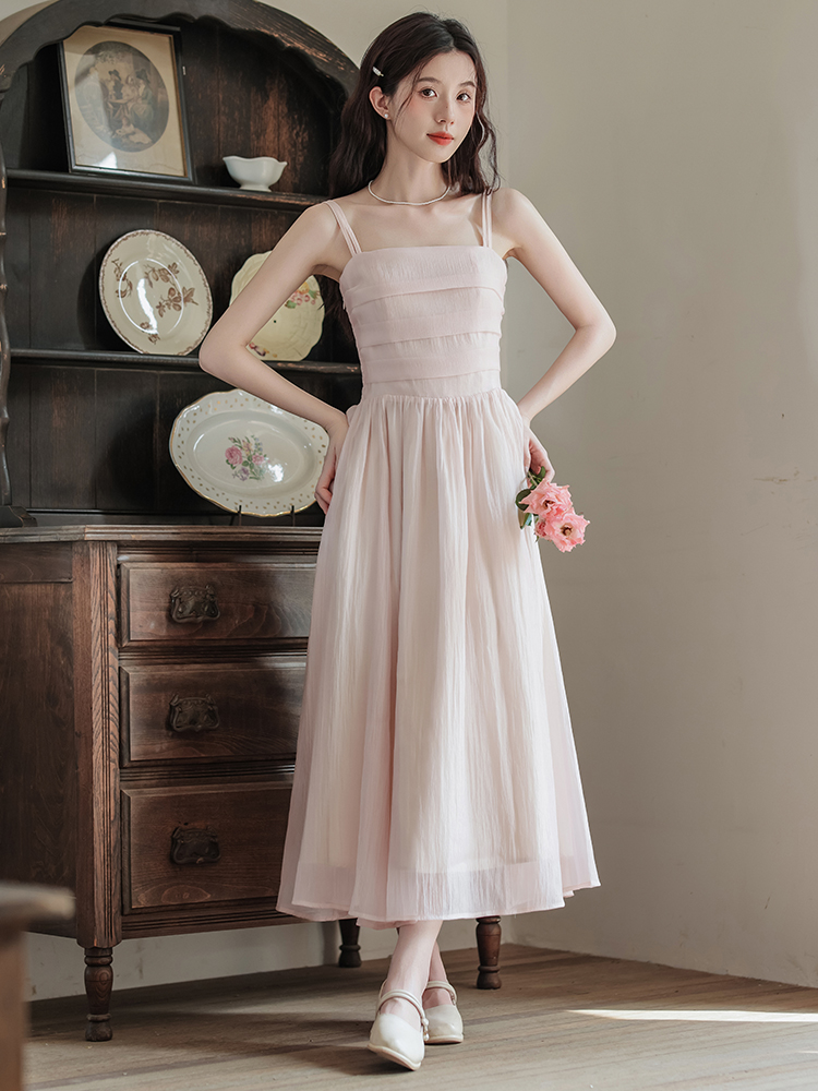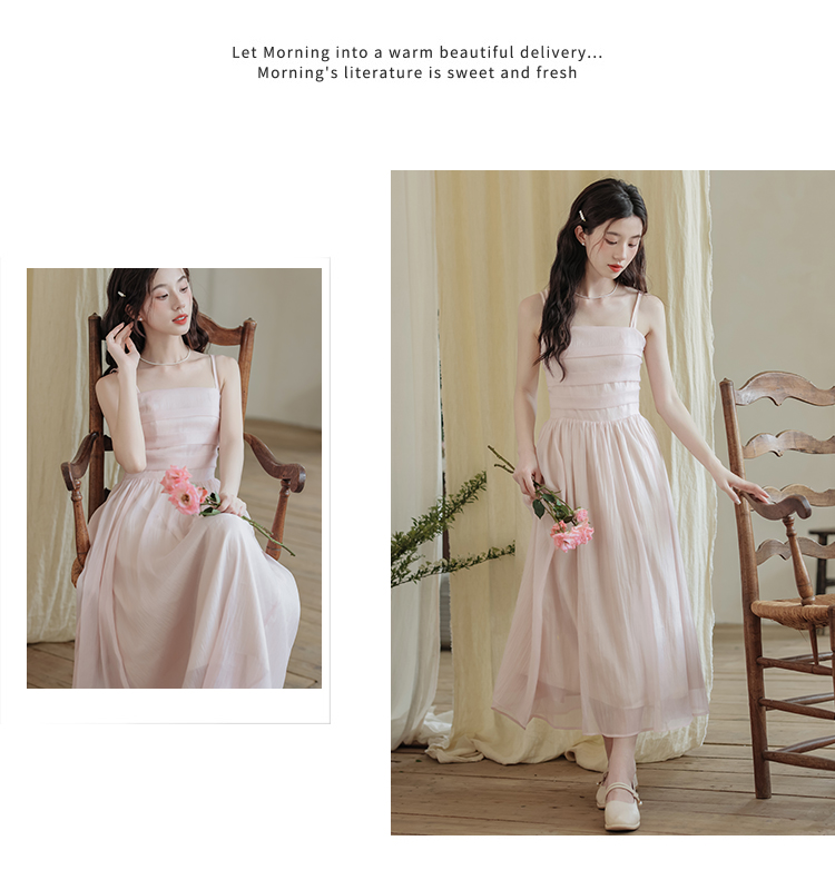 RY3669# 粉色吊带连衣裙子女夏季仙女超仙森系无袖长裙海边度假沙滩小个子