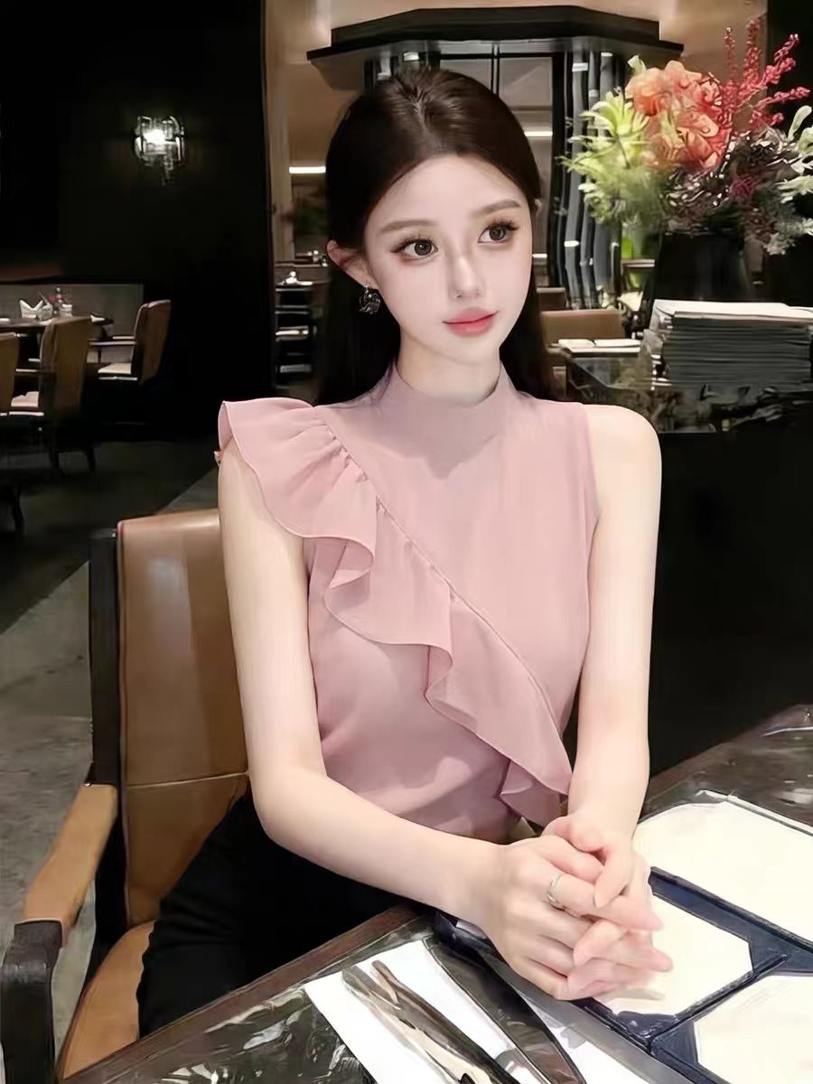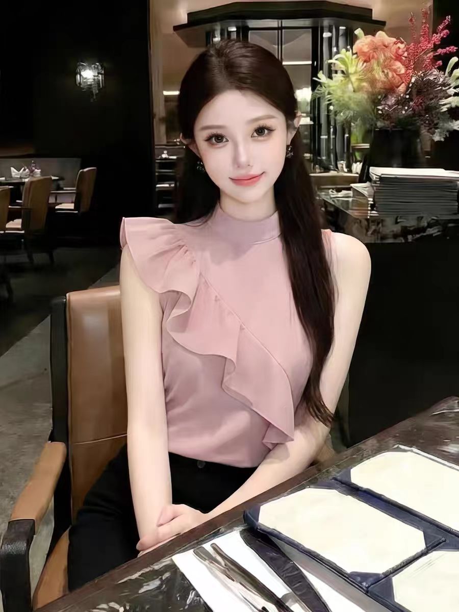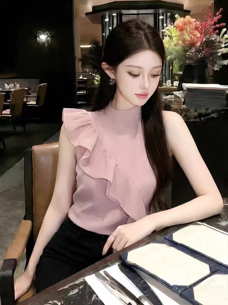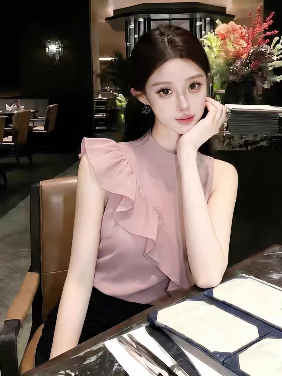 RY3674# 2026夏季新款法式小资别致高级感减龄无袖衬衫