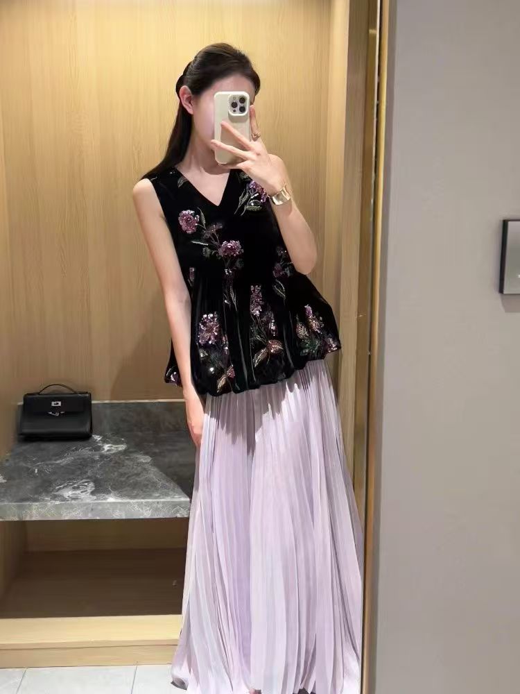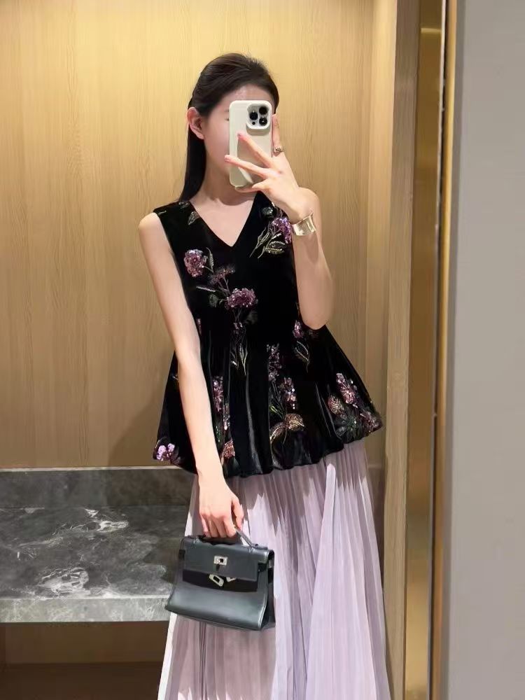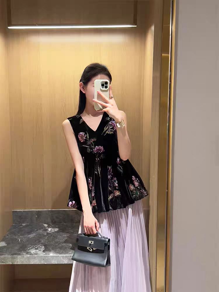 RY3675# 2026夏季新款新中式v领重工刺绣设计收腰无袖马甲背心