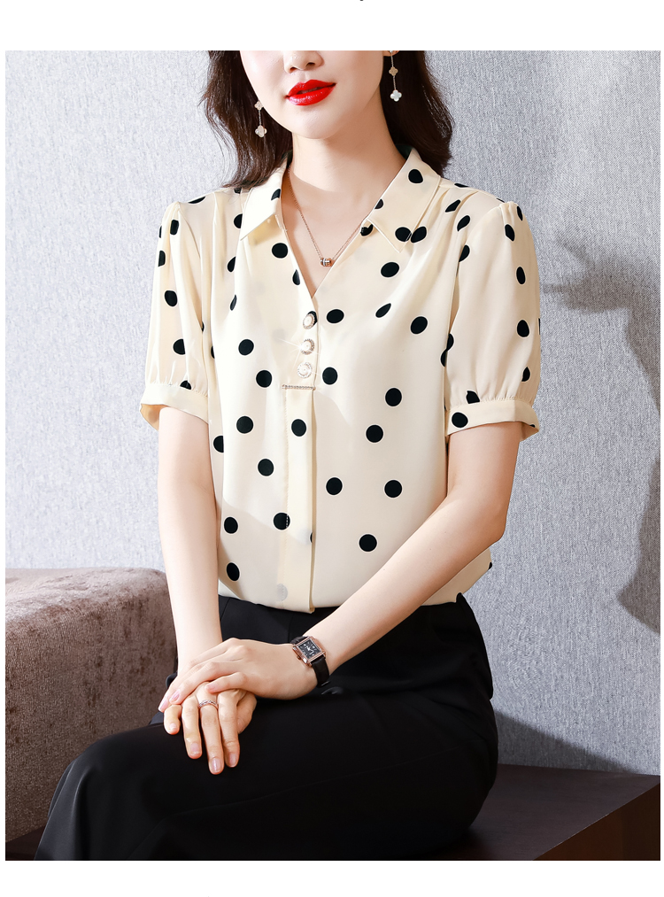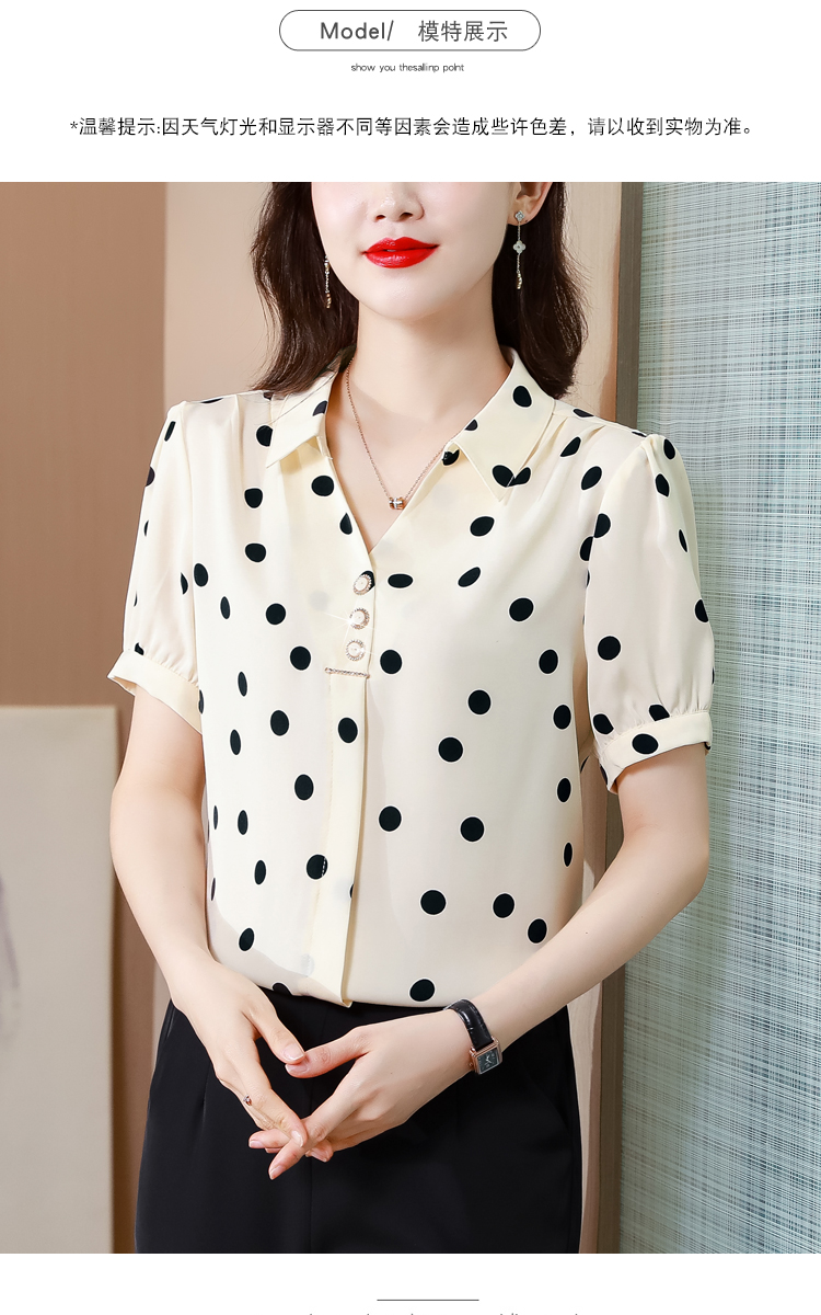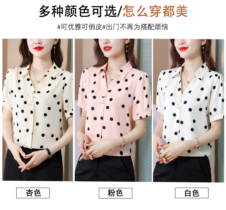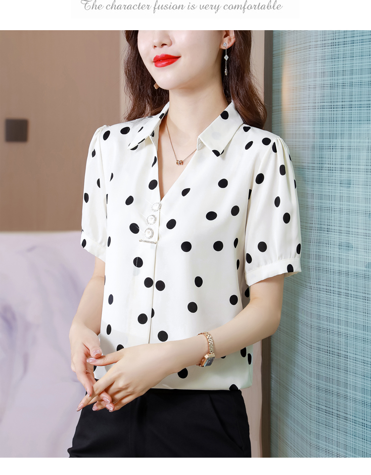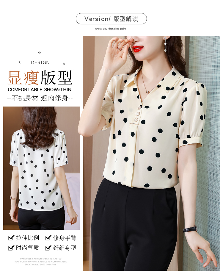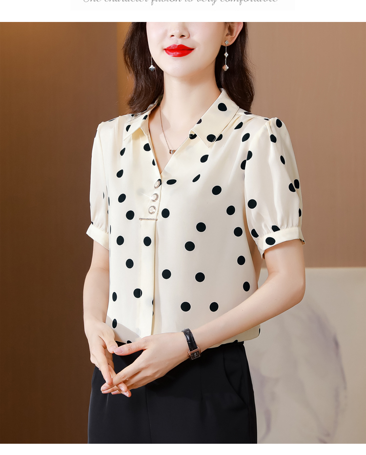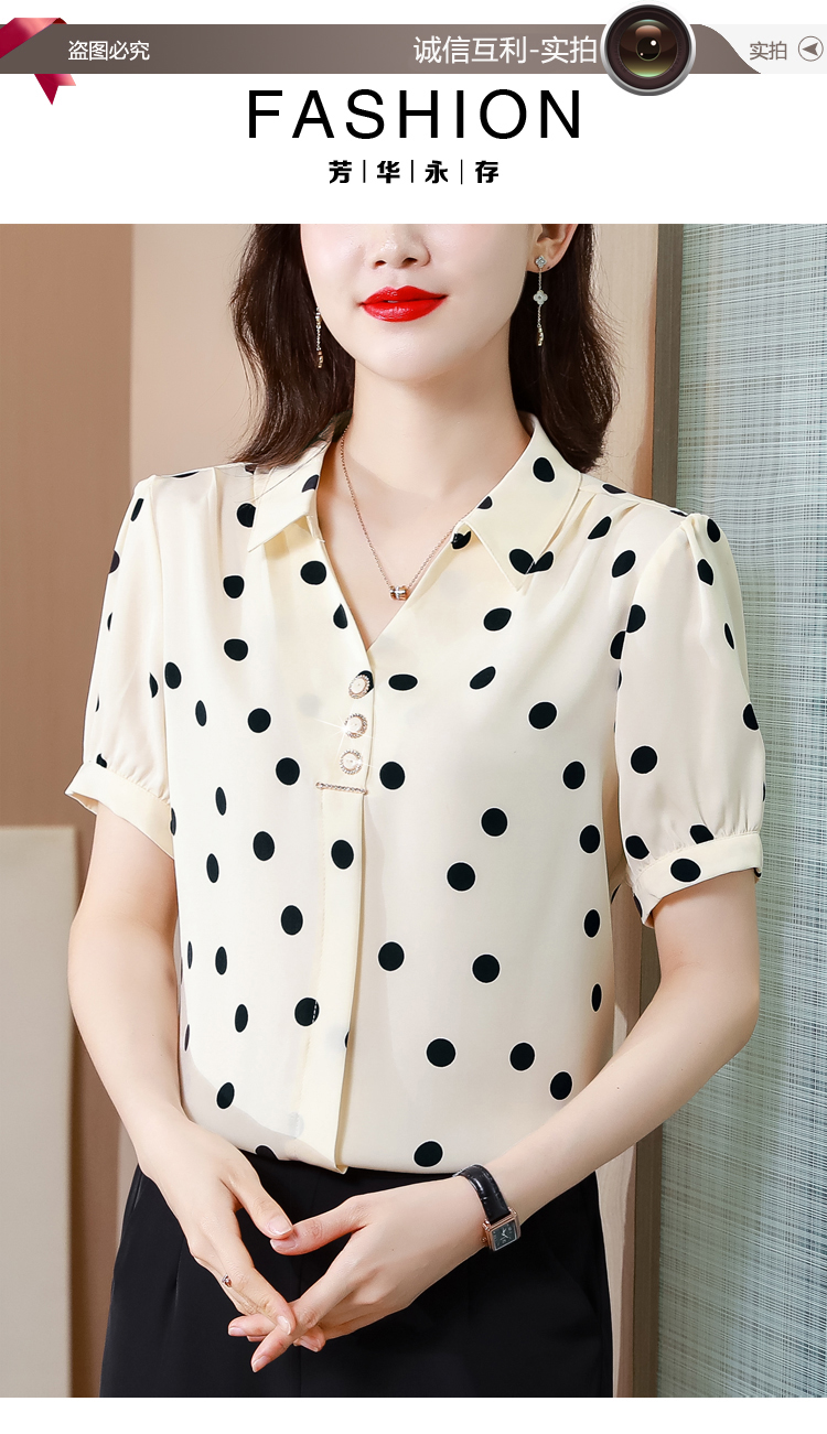 RY3682# 实拍2026春夏季新款衬衫短袖波点印花百搭气质上衣女